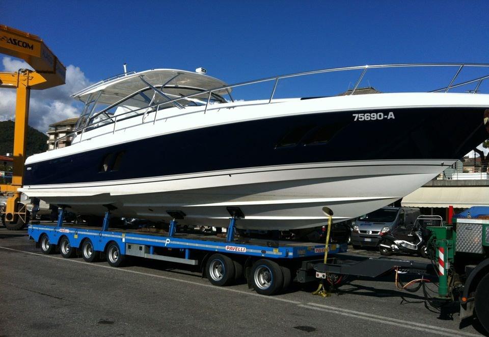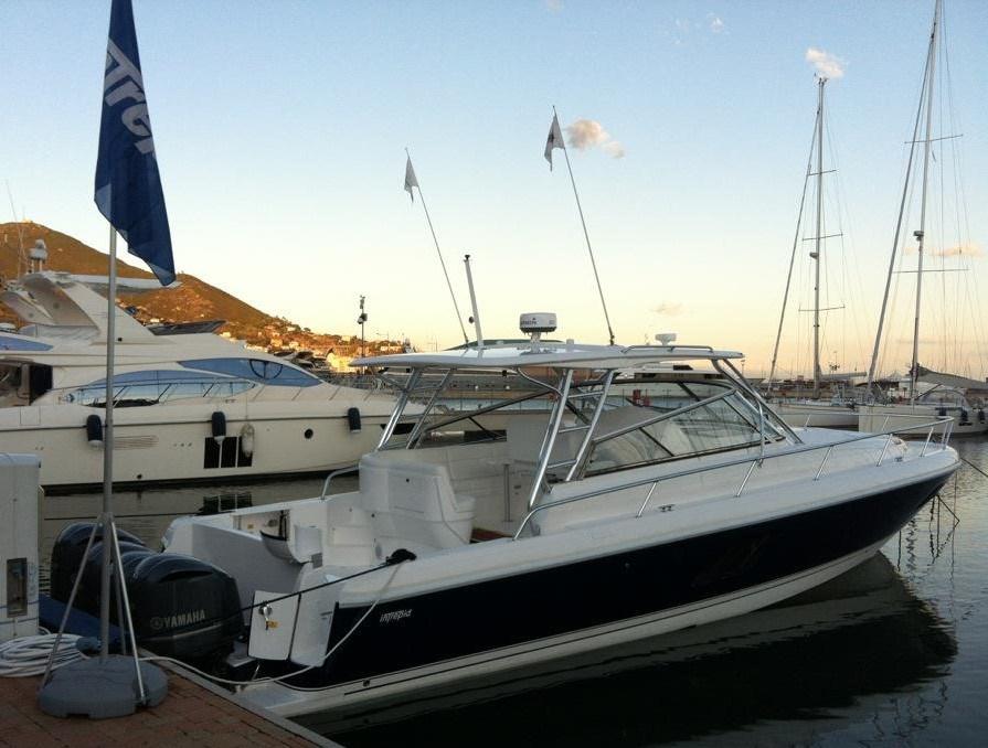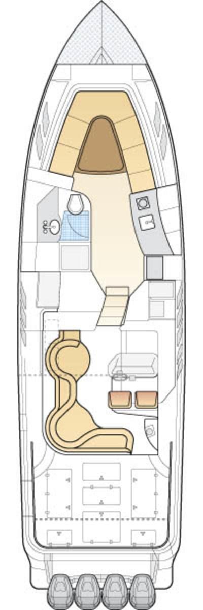 Fume/Gas Detector, 4 Engine Alarm, Bilge Alarm, Anchor (Bruce), Water pressure pump, Special Colour (Blue Navy), Deck Shower (con miscelatore), Bow Thruster (con batteria dedicata), Headlights fixed on the stem, Directional Spotlight (di profondità), Electric Flaps (Keikafer), Hard top (con laterali trasparenti), Fire Extinguishing System, Courtesy Lights, Underwater lights, Platform, 3 Automatic Bilge Pump, Entry door, Shorepower connector, Water harbor connector system, Voltage Rectifier, Electric Windlass, swimming ladder (a scomparsa), cockpit table, guard rails with gates, Horn, Bow Winches.