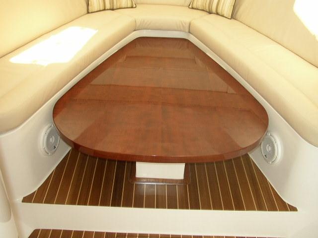 Side door on the side - Salt water pump for cockpit washing - Stainless steel bow nose - Electric table.