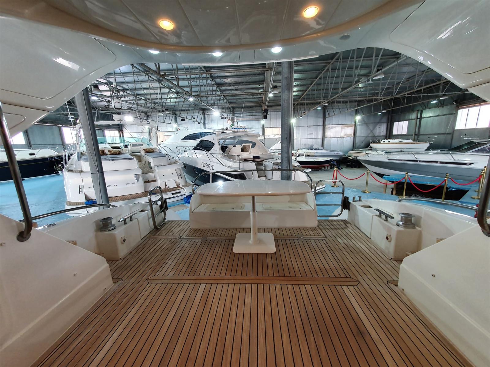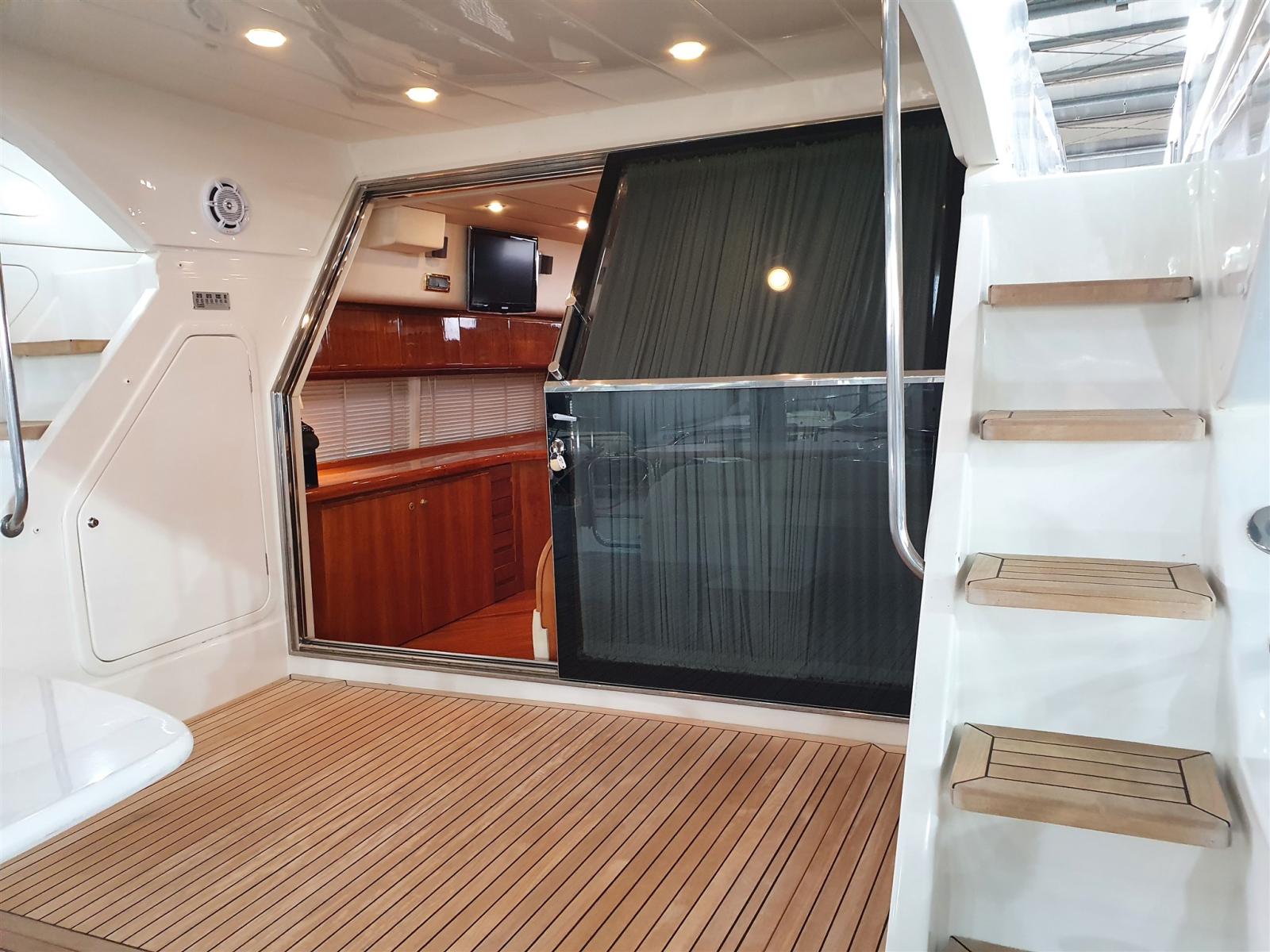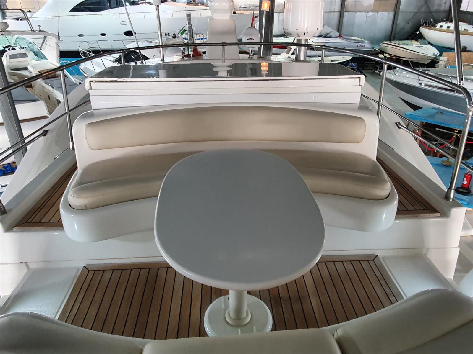 The double access staircase to the upper area leads us to discover a "different" Fly Bridge, interpreted with a lot of space, without a solution of continuity with the bow sundeck, to the benefit of conviviality. A real terrace overlooking the sea!