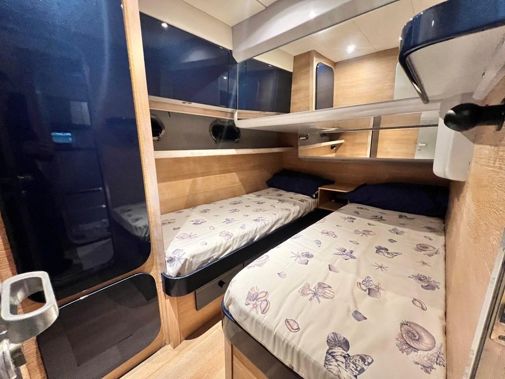 Hardtop, bow external handrail, hydraulic dinghy hangar with bigo, tender with FB, electric height-adjustable driver's seats.