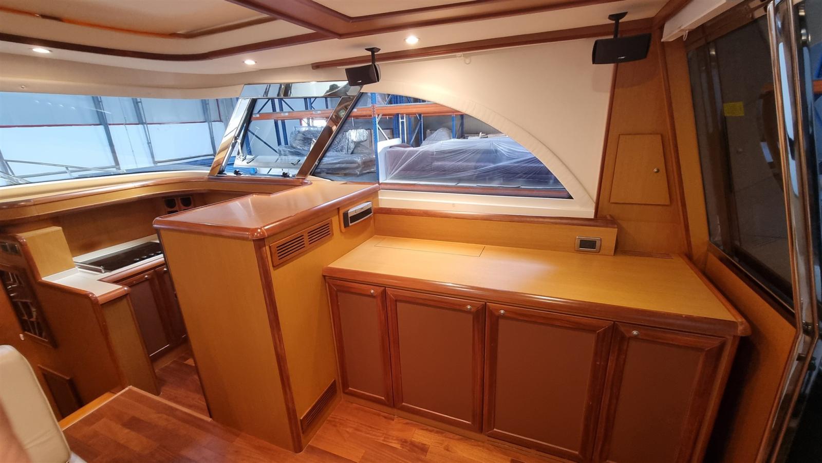 Engine Alarm, Bilge Alarm, Water pressure pump, 2 Life Raft, Teak Side Decks, Deck Shower, Twin Steering, Directional Spotlight, Hydraulic Flaps (N°2), Fire Extinguishing System, Anchor Chain Washdown, Washbasin in the cockpit, Courtesy Lights, Gangway (IDRAULICA), Platform, Automatic Bilge Pump, Manual Bilge Pump, Entry door, Teak Cockpit, Shorepower connector, Water harbor connector system, Voltage Rectifier, Electric Windlass, swimming ladder, Tender, Horn, Stern Winches.