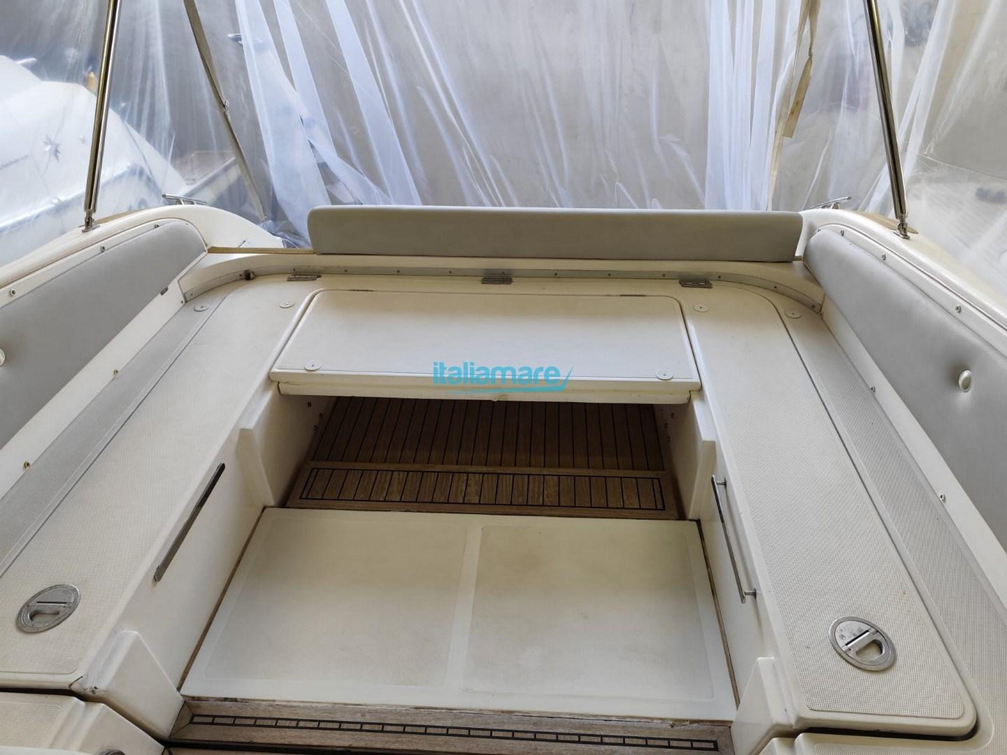 Engine Alarm, 2 Batteries, Teak Side Decks, Special Colour (grigio metallizzato), Deck Shower, Electric Flaps, Courtesy Lights, Platform, Automatic Bilge Pump, Teak Cockpit, Shorepower connector, Rollbar, Electric Windlass, swimming ladder, cockpit table.