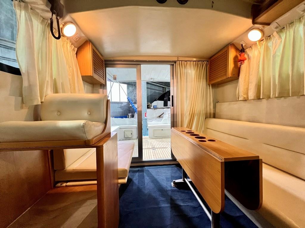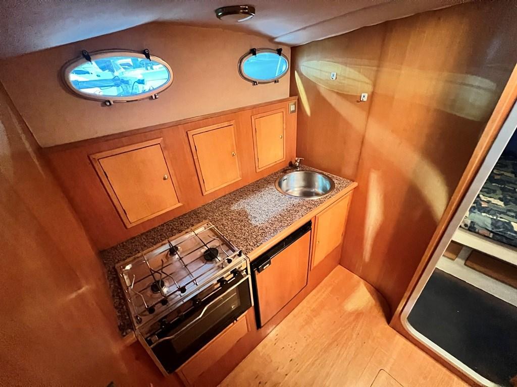 Full instrumentation, large kitchen. Wide speed: cruising 25, maximum about 30.