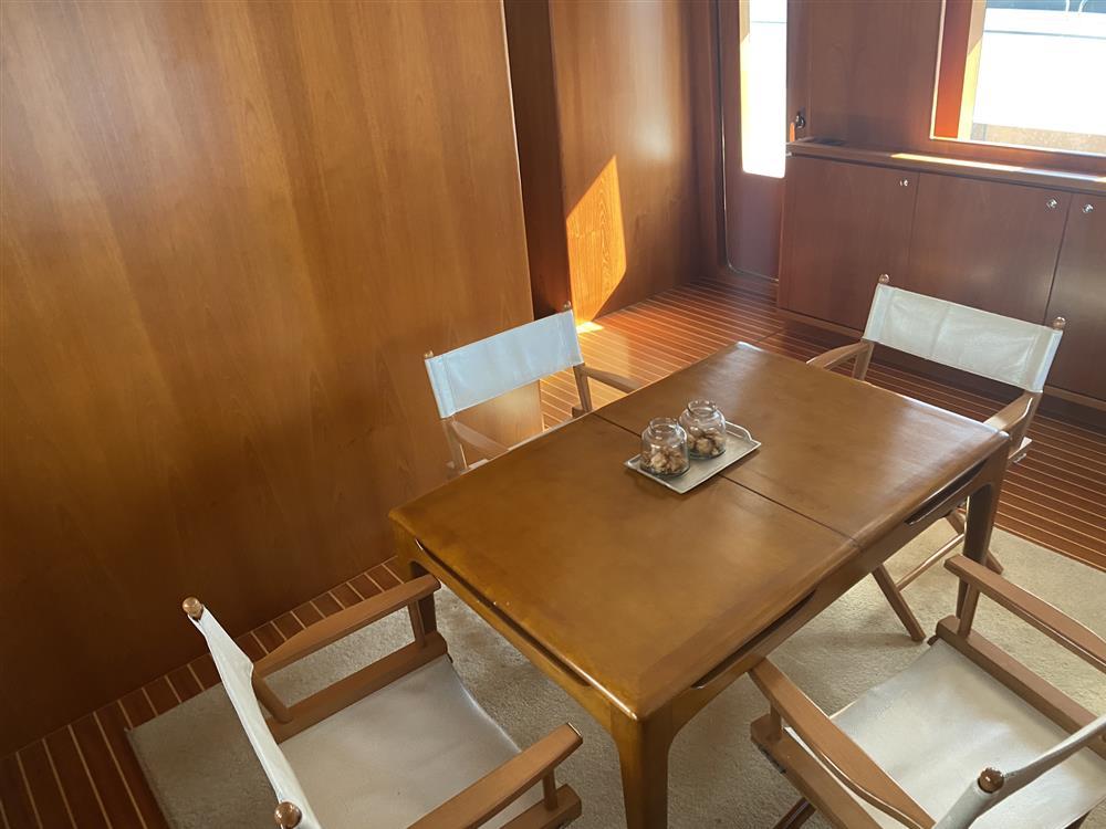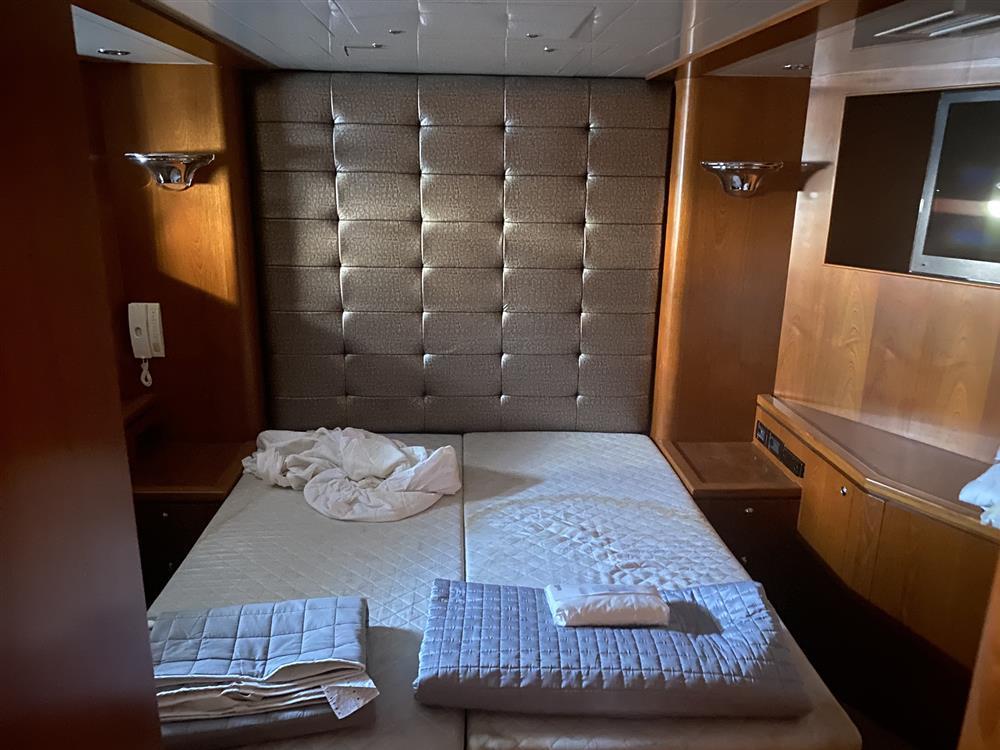 This trawler type yacht accommodates up to 8 guests in 4 suites comprising one owner full beam Cabin with its ensuite bathroom located central lower deck, 1 double VIP cabin forward with its bathroom, another Double cabin porboard and a twin cabin at starboard both sharing a third bathroom with the support of 1 crew onboard to ensure a relaxed luxury yacht experience. In addition the yacht receive all modern amenities onboard including cockpit pilot station/ stabilizers / hydraulic platform / garage for the tender / lazarette etc...