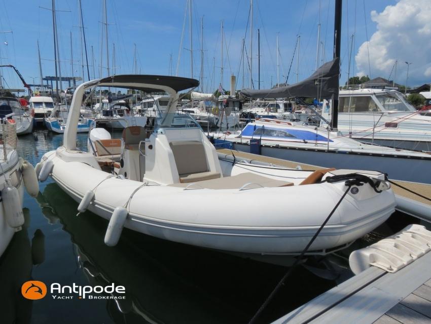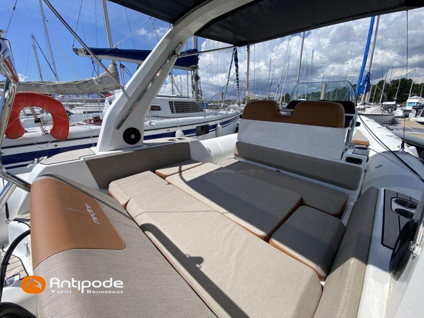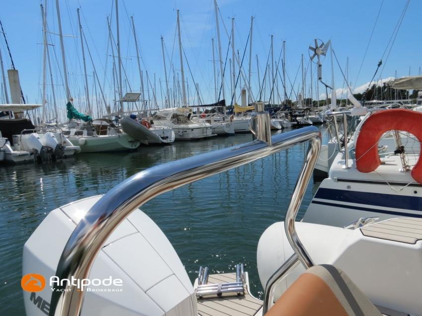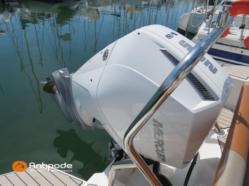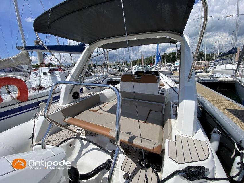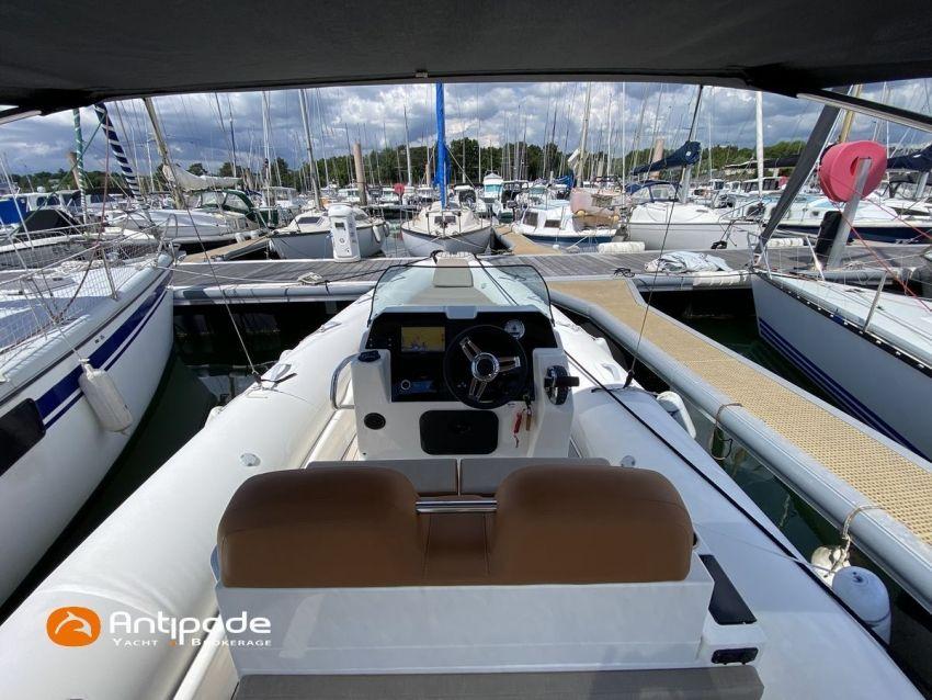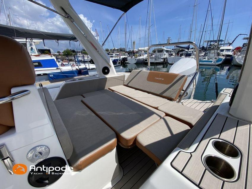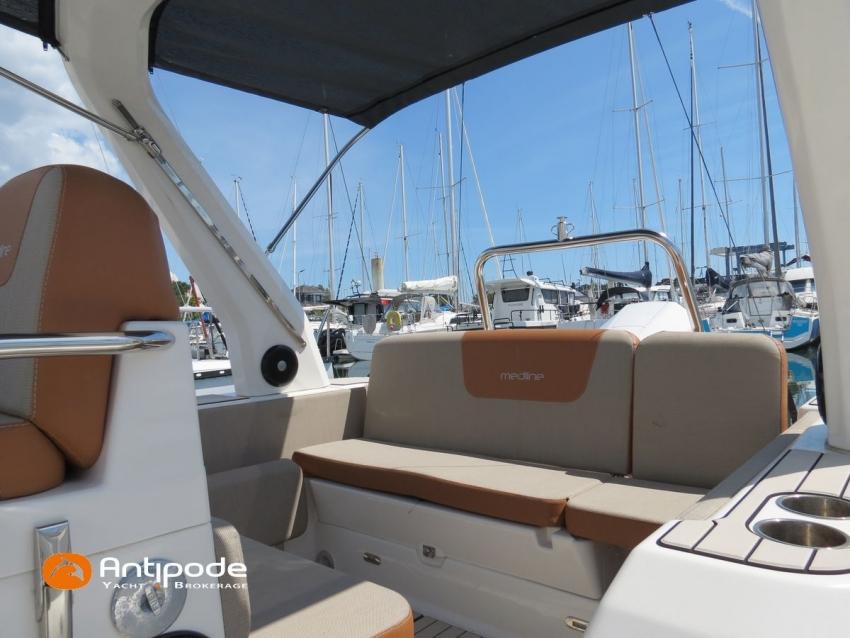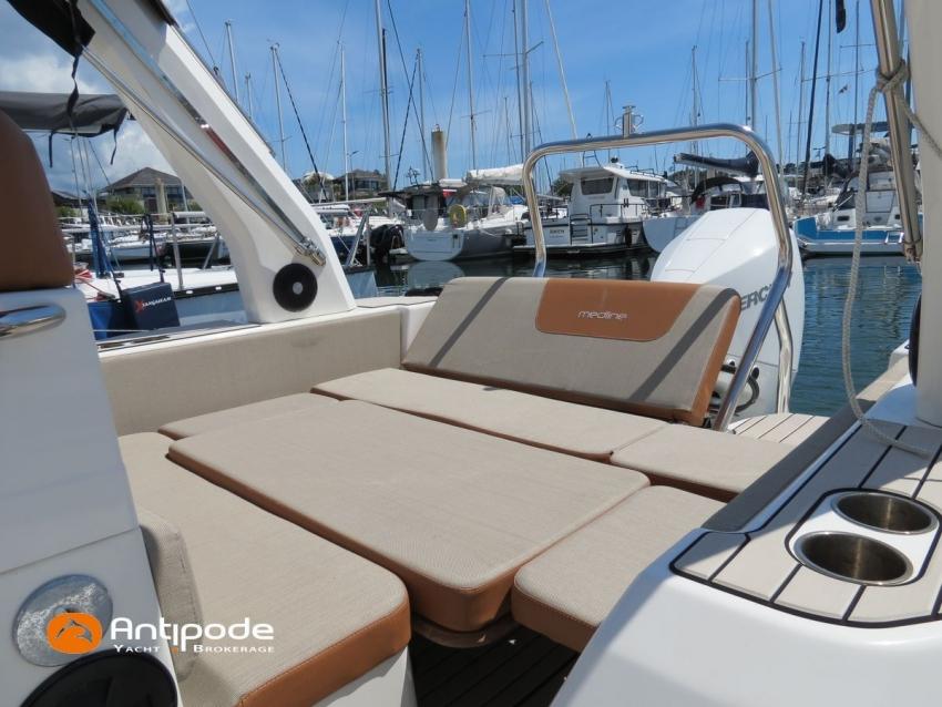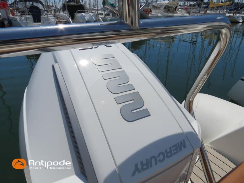 MEDLINE 7.5, 2023, first hand, never chartered, MERCURY 4T V6, 225 hp (26 hrs), EVA slatted cockpit floor, Teak cockpit table , 2x Cockpit bimini top, Winter covering, Sun bathing deck mastresses, Electric windlass, Cockpit electric windlass remote control, ski pool, GPR arch , GPS and chartplotter (cockpit) - GARMIN 9', Radio + speakers - FUSION, Fridge unit 12 V (front opening door), cold pressurized water, chimical toilets, Cockpit shower, Located Brittany. For more information or to make an appointment for a visit, contact : François Mouchel 06 62 30 97 30 - francois@antipode-yachts.com