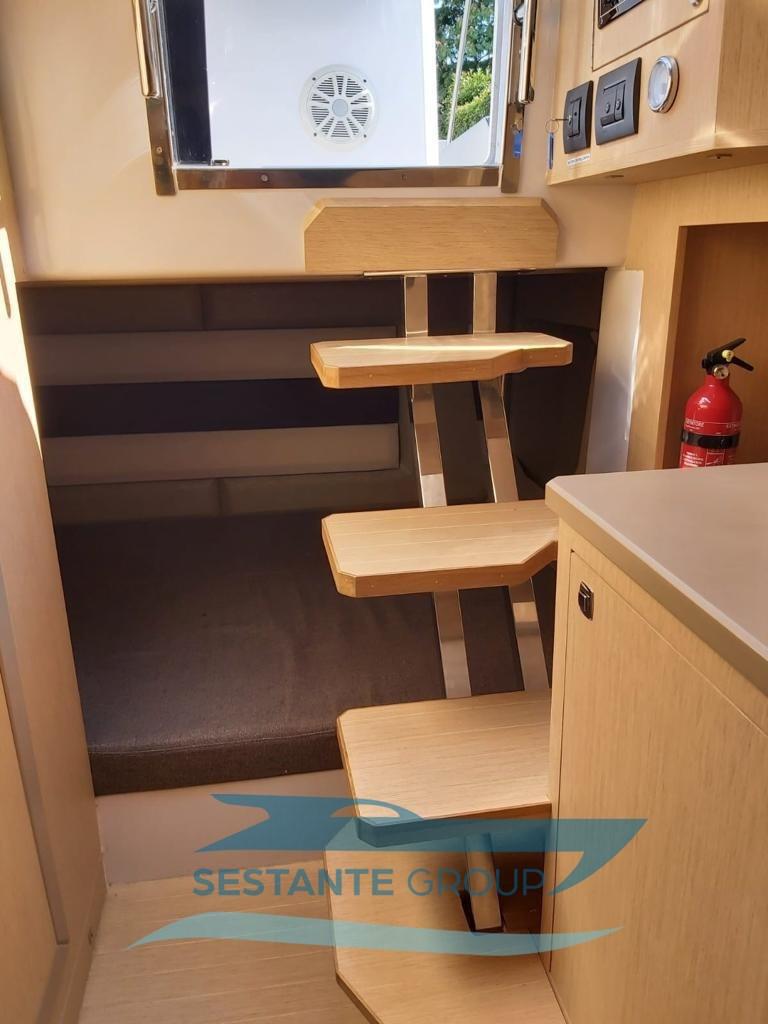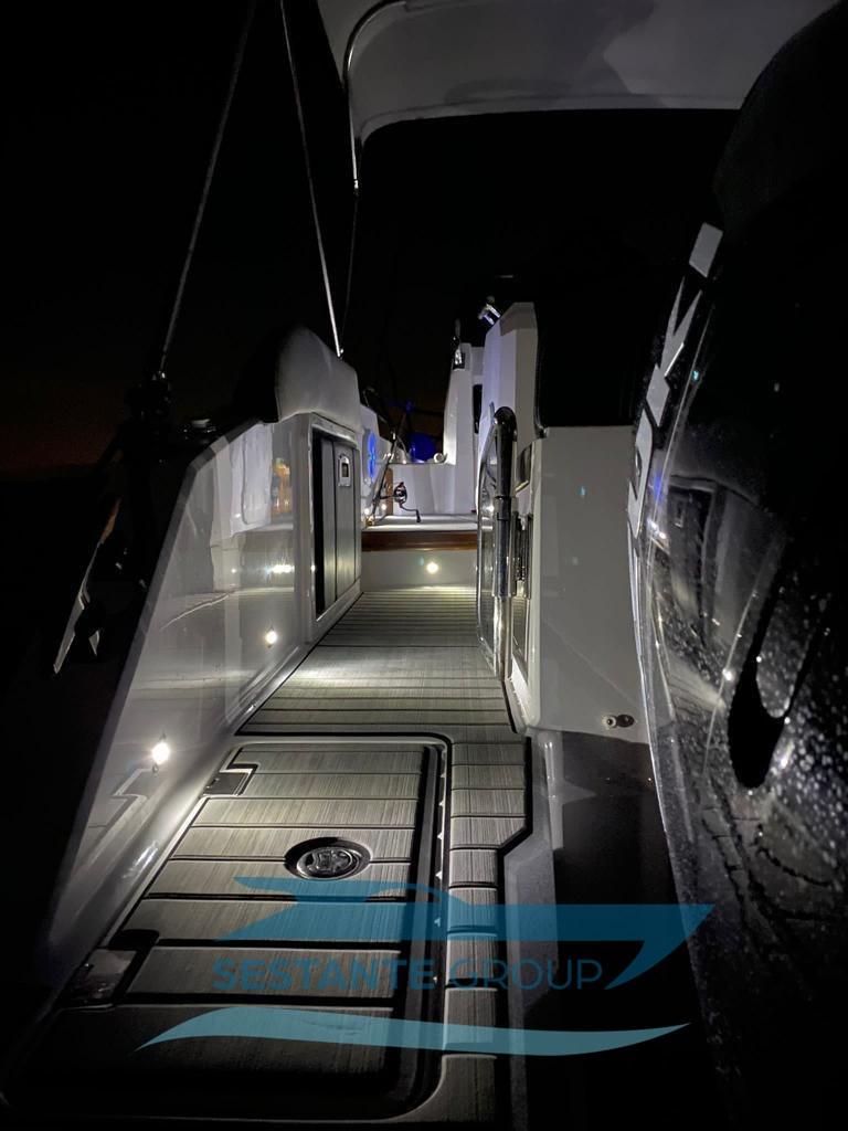 Engine Alarm, Water pressure pump, 3 Batteries (100 Ah), Special Colour, Deck Shower, Washbasin in the cockpit, Courtesy Lights, Underwater lights, Automatic Bilge Pump, Teak deck (Seadek), Entry door, Teak Cockpit (Seadek), Shorepower connector, Electric Windlass, swimming ladder, cockpit table, Living Room Foldable Table, Horn.