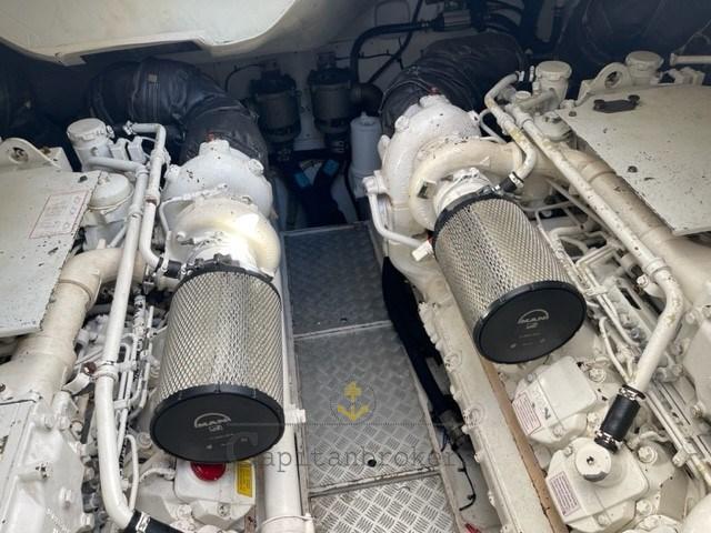 Engine Alarm, Bilge Alarm, Anchor (Delta chain 10 MM), Water pressure pump, 9 Batteries (Nuove), Battery charger (Mastervolt 75 amp / 12 V x Generatore), Deck Shower, Bow Thruster (Side Power 5,3 kw), Electric Flaps, Hard top, Fire Extinguishing System, Flaps Indicators, Washbasin in the cockpit, Courtesy Lights, Underwater lights, Gangway (Telescopica a scomparsa), Platform (in teak 2019), Automatic Bilge Pump, Manual Bilge Pump, Teak Cockpit, Shorepower connector, Water harbor connector system, Electric Windlass (nuovo 2020), swimming ladder, cockpit table, Tender (+ mt fb), Horn.