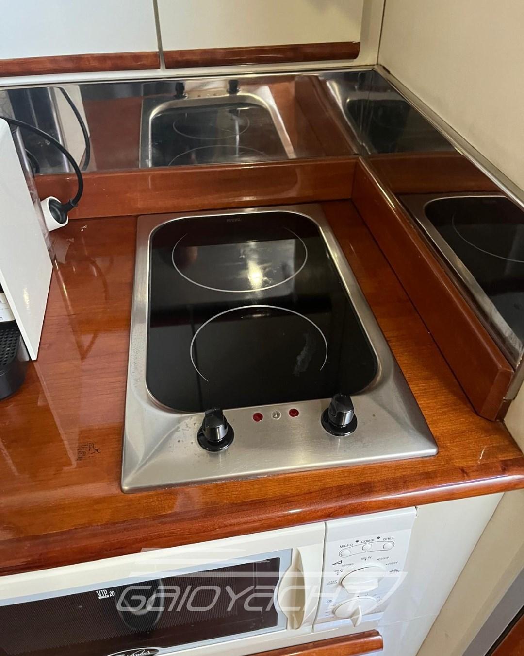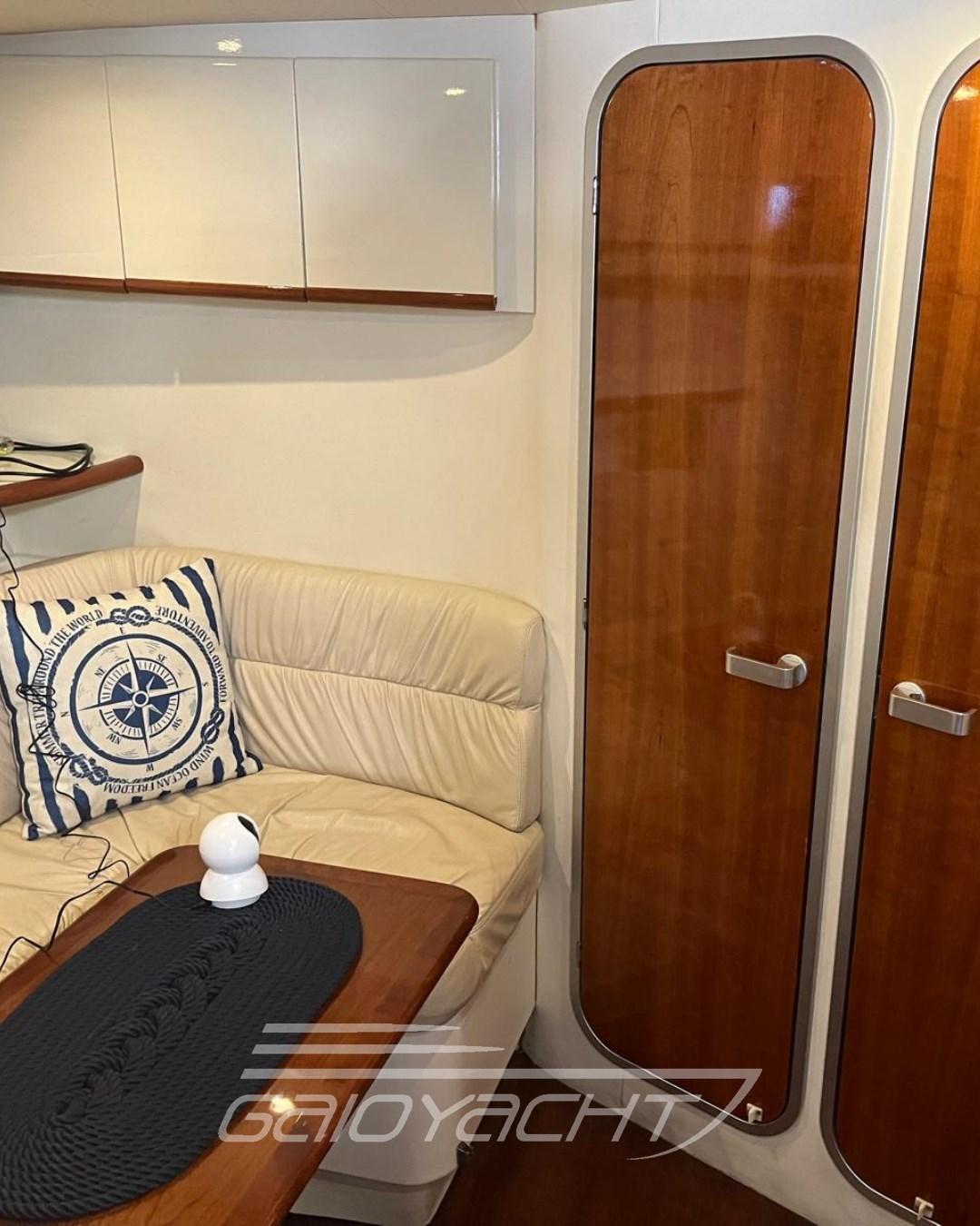 Electric Engine Compartment Opening, Water pressure pump, Deck Shower, Hydraulic Flaps, Flaps Indicators, Washbasin in the cockpit, Underwater lights, Automatic Bilge Pump, Teak Cockpit, Shorepower connector, Electric Windlass, swimming ladder, cockpit table (Elettrico), Living Room Foldable Table.