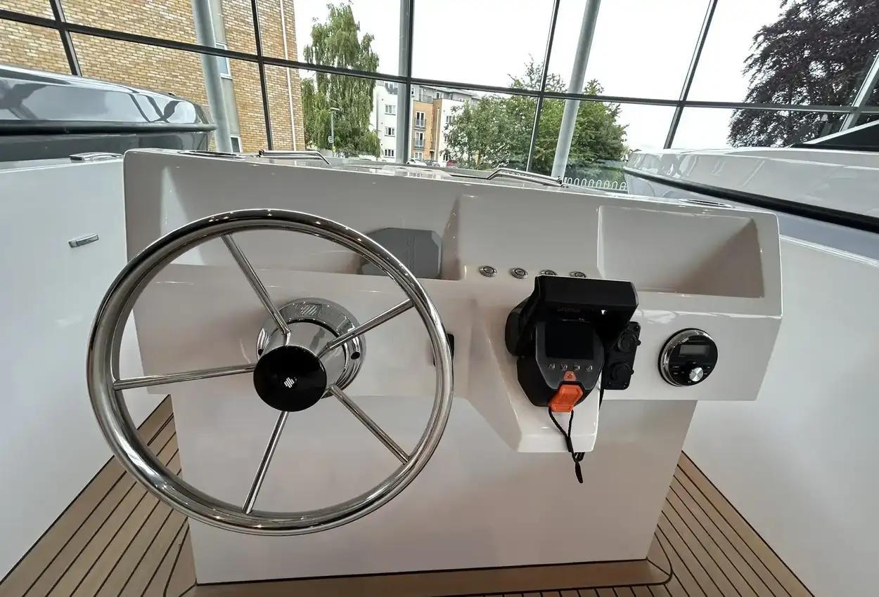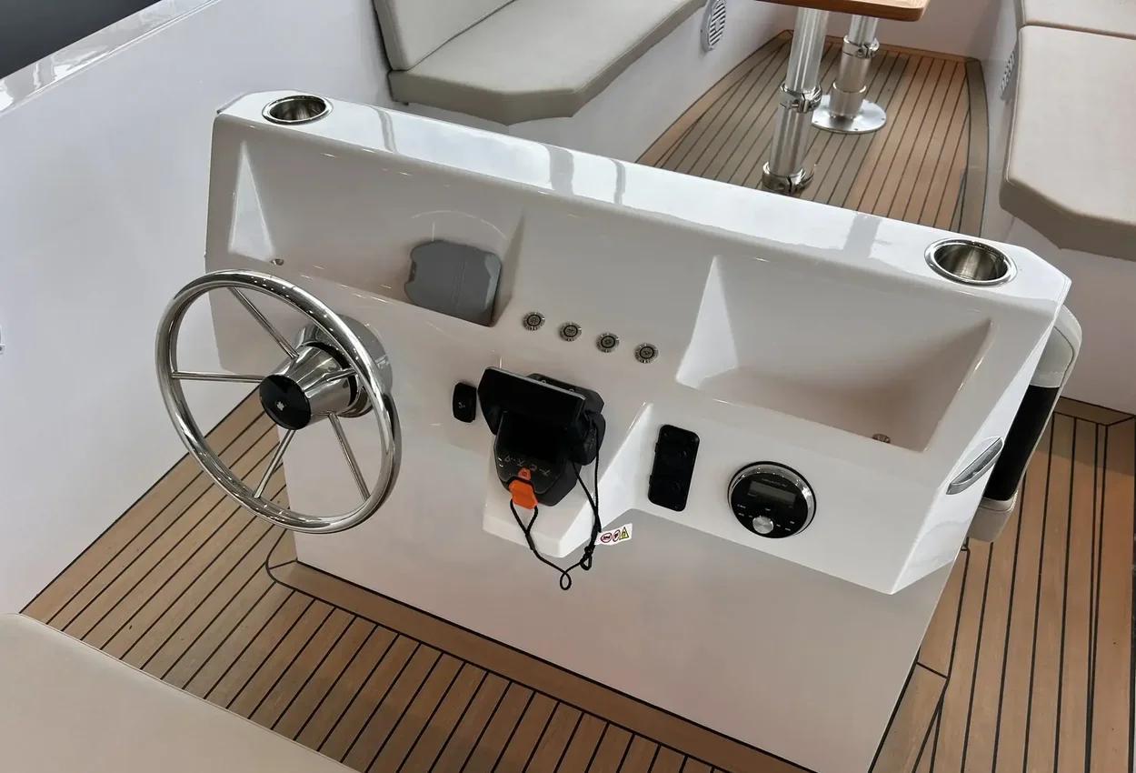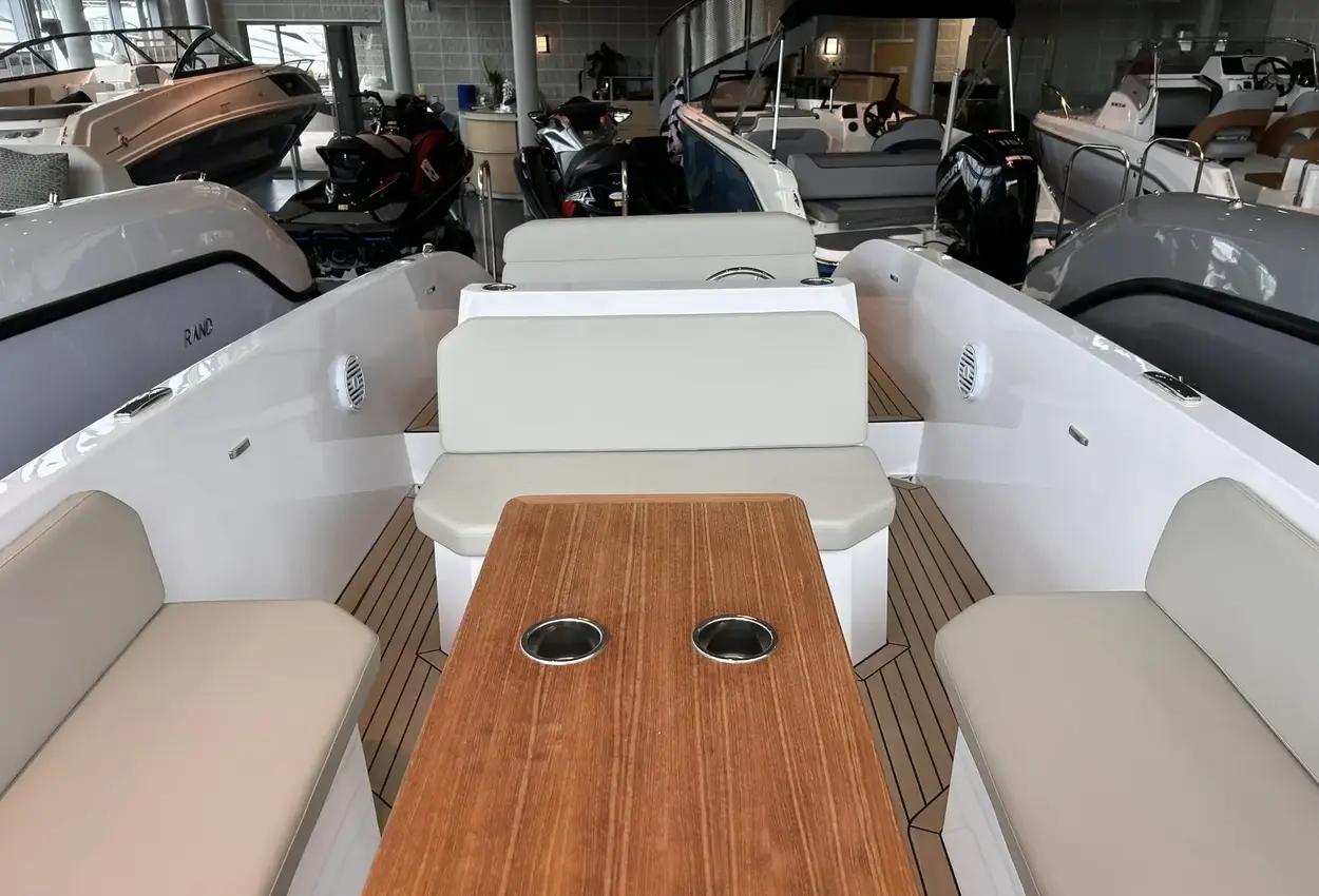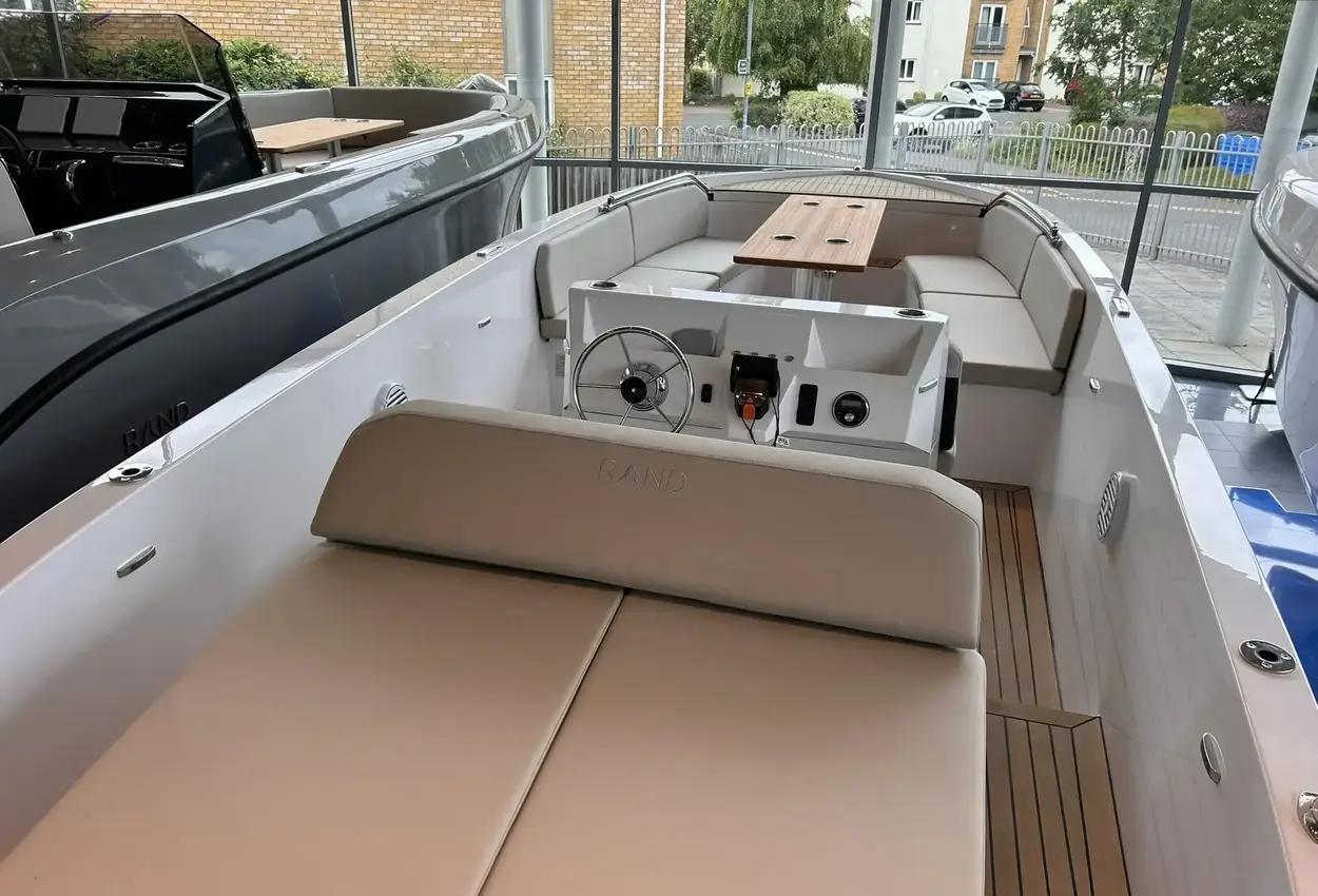 Welcome Aboard the Rand Mana 23Welcome your friends and family on board of the ultimate eco hangout platform Rand Mana 23. The spacious layout provides freedom to move and great functionality. Mana 23 invites you to enjoy the sea, whether you want to go for a dip in the ocean or cruise around the channels.PricingRetail price: £93,462 inc UK VAT - Offer price: £84,995 inc UK VATDesign and ConstructionMana 23 is designed and constructed to require minimum maintenance by combining the Scandinavian aesthetics and user-friendly functional solutions and sustainable materials.This low maintenance displacement boat is easy to use for everybody. It is powered by Electric outboard engines and solar-cells neatly covered out-of-sight under the aft sun lounge, for increased handling and low maintenance that is preferred by outboard engine owners.PerformanceThe extraordinary hull design with reduced hydrodynamic drag is engineered to effortlessly pierce the waves and turn with immediate response. The hidden outboard engines provide thrust in the direction you are steering towards. Achieving eco efficiency of speeds up to 12 knots with small but powerful electric engines provides an amazing experience of gliding silently through the water with great speed.Layout and ComfortThe layout of Mana 23 contains areas designed for different purposes to adapt to your needs, whether you want to sunbathe on the aft double sun lounge or enjoy a romantic dinner in the sunset for up to 10 people around the table. The seating with its ergonomic backrests and proportions creates the comfort so you can cruise for hours.Steering ConsoleThe highly functional and simple steering console is laid out for intuitive use and has been designed to create an engaging driving experience. Its ergonomic proportions and the special design of the captain's seat integrated into the engine room hatch means that there is storage and access right at the helm.FeaturesFrom the integrated bow boarding stairs with special built-in bimini flip-up storage and cork detailing everywhere from deck to lining, to the walk-around features down through the boat in organic composites, where you have the option of a midship kitchen integrated into the front of the console instead of twin seating, the Mana 23 is optimized for good times in the most environmentally friendly motorboat in the world.Standard SpecificationPebble White gel coat & Macadamia upholsteryRetractable Stainless Steel Mooring CleatsBow & Aft Storage for Fenders, Bimini Top, Port CoverTeak Picnic Table w. Grab RailsCushion Set for Pilot Position & U-Seating RowWaterproof Stereo System w. Bluetooth, USB & AUXFaux Teak Deck in Cockpit & Bathing PlatformSwim LadderPosition & Navigation LightFactory Fitted ExtrasTorqeedo Cruise 12.0 Outboard incl. 10 kWh Lithium Battery (Hidden) - ElectricFlag Pole & MountCup Holders in Cockpit TableAnchor & RopeCockpit LED LightingDepth Sensor (require GPS)Fenders & MountsPremium Swim LadderSunsailBoat CoverCooler DrawerBow Sunlounge