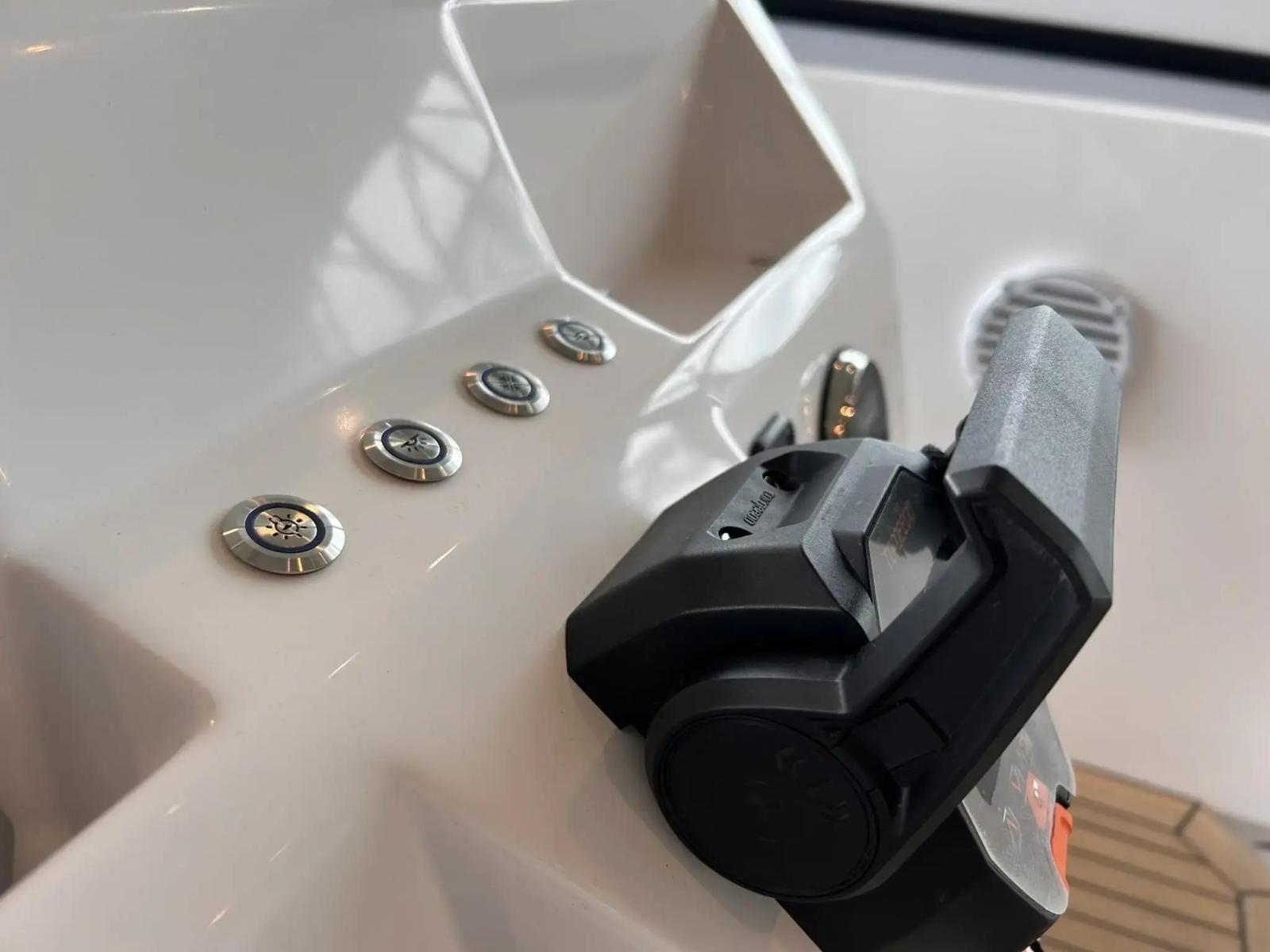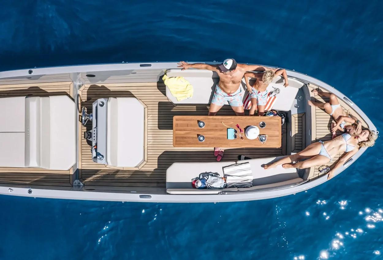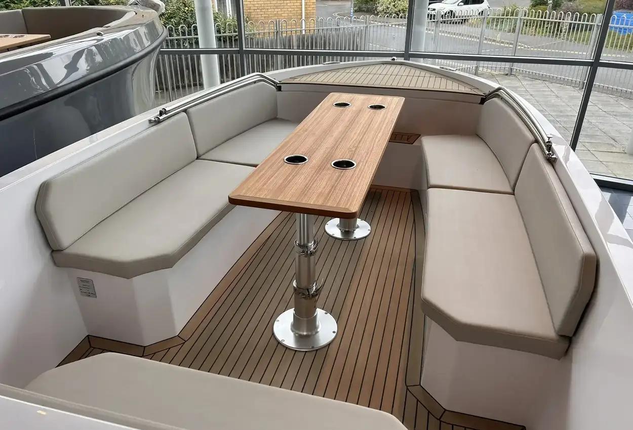 Welcome Aboard the Rand Mana 23Welcome your friends and family on board of the ultimate eco hangout platform Rand Mana 23. The spacious layout provides freedom to move and great functionality. Mana 23 invites you to enjoy the sea, whether you want to go for a dip in the ocean or cruise around the channels.PricingRetail price: £93,462 inc UK VAT - Offer price: £84,995 inc UK VATDesign and ConstructionMana 23 is designed and constructed to require minimum maintenance by combining the Scandinavian aesthetics and user-friendly functional solutions and sustainable materials.This low maintenance displacement boat is easy to use for everybody. It is powered by Electric outboard engines and solar-cells neatly covered out-of-sight under the aft sun lounge, for increased handling and low maintenance that is preferred by outboard engine owners.PerformanceThe extraordinary hull design with reduced hydrodynamic drag is engineered to effortlessly pierce the waves and turn with immediate response. The hidden outboard engines provide thrust in the direction you are steering towards. Achieving eco efficiency of speeds up to 12 knots with small but powerful electric engines provides an amazing experience of gliding silently through the water with great speed.Layout and ComfortThe layout of Mana 23 contains areas designed for different purposes to adapt to your needs, whether you want to sunbathe on the aft double sun lounge or enjoy a romantic dinner in the sunset for up to 10 people around the table. The seating with its ergonomic backrests and proportions creates the comfort so you can cruise for hours.Steering ConsoleThe highly functional and simple steering console is laid out for intuitive use and has been designed to create an engaging driving experience. Its ergonomic proportions and the special design of the captain's seat integrated into the engine room hatch means that there is storage and access right at the helm.FeaturesFrom the integrated bow boarding stairs with special built-in bimini flip-up storage and cork detailing everywhere from deck to lining, to the walk-around features down through the boat in organic composites, where you have the option of a midship kitchen integrated into the front of the console instead of twin seating, the Mana 23 is optimized for good times in the most environmentally friendly motorboat in the world.Standard SpecificationPebble White gel coat & Macadamia upholsteryRetractable Stainless Steel Mooring CleatsBow & Aft Storage for Fenders, Bimini Top, Port CoverTeak Picnic Table w. Grab RailsCushion Set for Pilot Position & U-Seating RowWaterproof Stereo System w. Bluetooth, USB & AUXFaux Teak Deck in Cockpit & Bathing PlatformSwim LadderPosition & Navigation LightFactory Fitted ExtrasTorqeedo Cruise 12.0 Outboard incl. 10 kWh Lithium Battery (Hidden) - ElectricFlag Pole & MountCup Holders in Cockpit TableAnchor & RopeCockpit LED LightingDepth Sensor (require GPS)Fenders & MountsPremium Swim LadderSunsailBoat CoverCooler DrawerBow Sunlounge