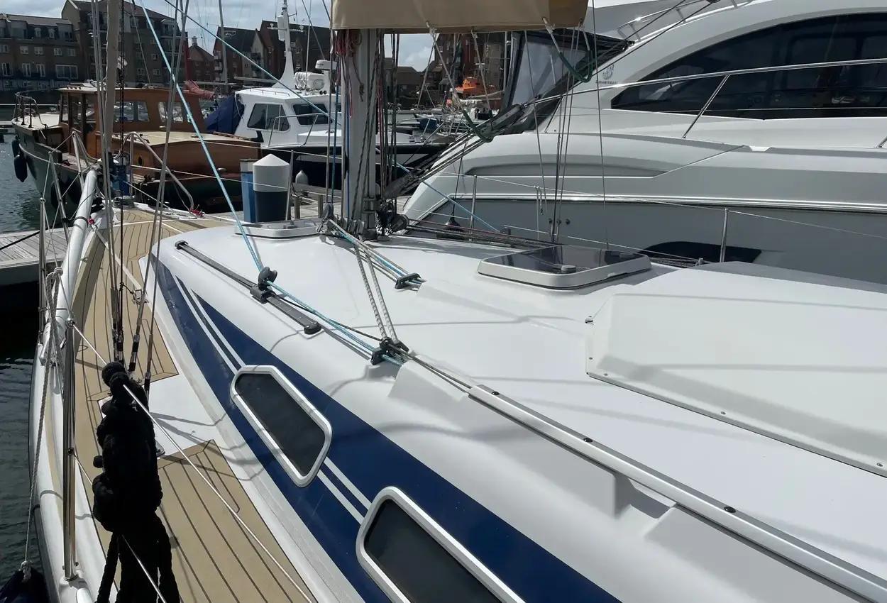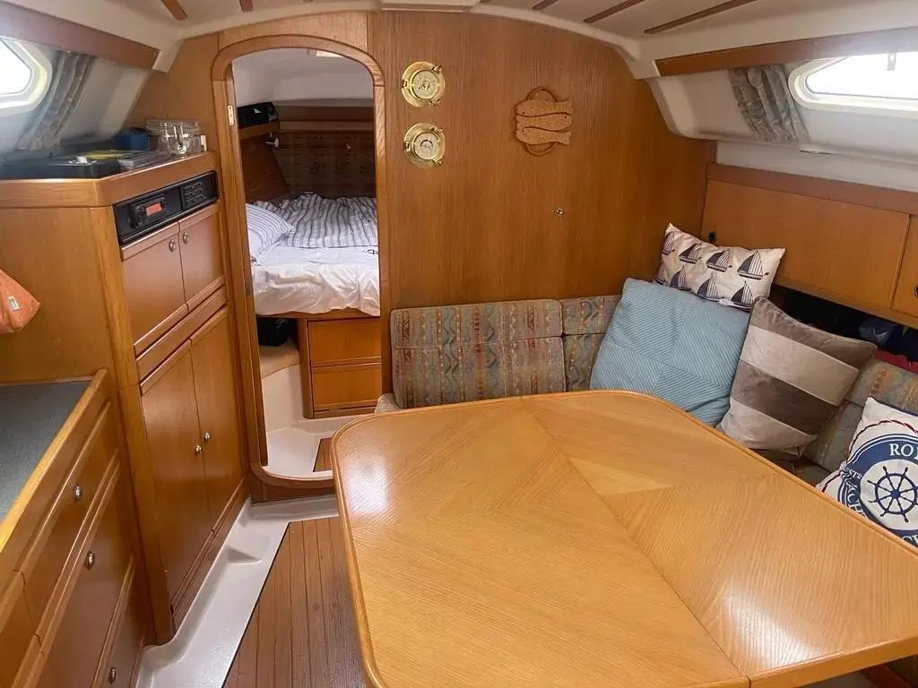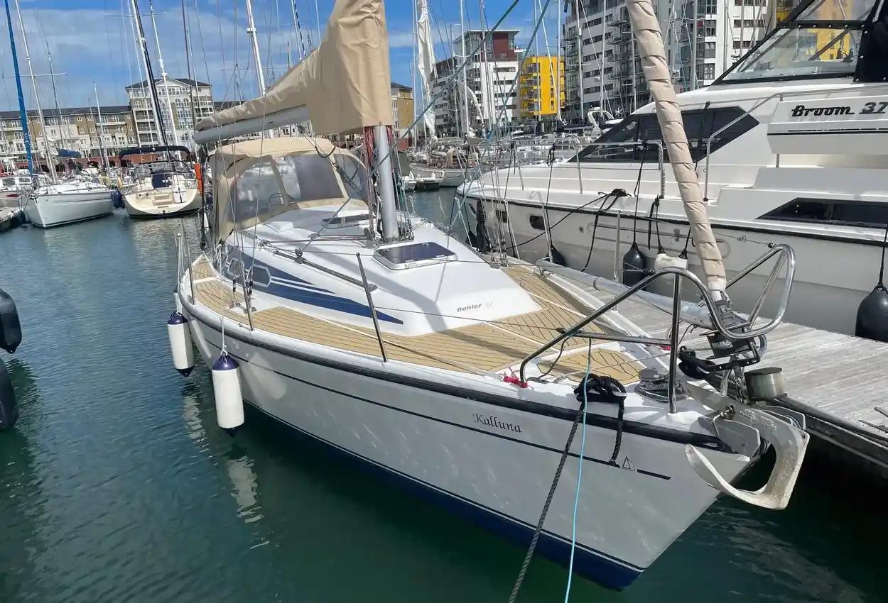1997 model Dehler 37CWS sail cruiser featuring a Yanmar 3GM30F 27hp diesel engine. This is a well-equipped and well-maintained example of this popular cruiser.Maintenance highlights include new standing rigging in 2022, keel bolts checked in 2014, keel joint replaced in 2022, cutlass bearing replaced in 2020, and bronze fittings replaced in 2018. The boat is antifouled and has undergone engine service annually. Currently lying in the water at Sovereign Harbour. A beautiful boat!BUILDERSDehler Yachts, GermanyDesigned by Van de StadtYear: 1997CONSTRUCTIONGRP Hull, Deck & SuperstructureSPECIFICATIONSLOA: 11.2mLWL: 9.0mBeam: 3.5mDraught (Fin Keel): 1.8mDisplacement: 5600kgBallast: 2400kgMainsail: 40m2High aspect furling jib: 26m2Gennaker: 101m2Height of mast above WL: 16.65mWater tank: 240LDiesel tank: 105LHolding tank: 40LBATTERIESService: 2 x 140ah Exide ES1600 Gel (New 2017 - Previous gel batteries were 20 years old when changed and were still OK!)Engine: 1 x 43ah (New 2021)Sterling Battery Charger / Power SupplyGas: Camping GazENGINEInboard diesel Yanmar 3GM30F 27HPEngine Hours: 1600Standard specification F: dual circuit cooling Gearbox KM series, Mechanical Cone Clutch3 Blade Feathering Propeller shaft drivenAll new fuel hoses and primary filter in 2013 after tank was removed and steam cleanedHeat Exchanger removed and cleaned in 2021Thermostat removed and tested in 2021New Exhaust Elbow in 2019SAILS & SPARSSloop 7/8 Rig2022: All Standing Rigging replaced with new and all components on mast removed and refittedFully battened mainsail last cleaned, inspected and repaired in 2022Furling Jib (New 2019)Spare Jib: oldGennaker with Snuffer: hardly usedEchomax EM230 Radar ReflectorDECKING & EXTERIORPermateek to all side decksSynthetic Teak in Cockpit (New 2020)Bathing Platform helm seat lifts out to make a walkthrough and platform folds downShower by bathing platform: hot and coldStainless Steel Fold Down Swimming LadderOutboard Motor BracketTeak Grating in Cockpit6 x Mooring CleatsProtective rubber rubbing strakeCOCKPIT LOCKERFenders & WarpsCQR AnchorTeak Cockpit TableAnchor Buoy, Anchor Ball and Motoring ConeACCOMMODATION & INTERIORForward Cabin has enlarged double berth and large overhead hatch, two hanging lockers, side cupboards and side shelves. Large storage area and drawers under the bed. Seats either side and dressing mirror with shelf under.Aft cabin on port quarter with hanging locker, side cupboards and shelves. Large storage area under the large double berth.Large Convertible Double Berth in Saloon. If not converted has lee cloth to be used as a single sea berth.Heads compartment with Jabsco Regular Bowl toilet, washbasin, shower, full length mirror and storage cupboards.Light Ash Interior JoineryFolding table with drinks storage underGas Water Heater with Electric Immersion HeaterEberspacher diesel cabin heater with 4 hot air outlets (New 2014)3 Burner Gas Stove with OvenRefrigerator front opening with Ice making facilityTwin Stainless Steel SinksTwin 240v socket above large work surfaceRoller Blinds fitted to roof hatches and windows in saloonBrass Clock & BarometerOutward facing Chart Table and Seat with 240v mains power point below.Carbon Monoxide DetectorSAFETY EQUIPMENTFire Extinguishers x 3 (Dry Powder, New 2021)Fire BlanketDanbuoyHorseshoe LifebuoyLiferaft Seago 6 Man Valise. Last serviced June 2021. Purchased 2012.INSTRUMENTATIONRaymarine C80 Plotter with Navionics Gold SoftwareRaymarine AIS250 ReceiverRaymarine Raystar 125 GPS AntennaRaymarine ST60+ Wind and Close Hauled Wind Instrument (New Masthead Unit 2022)Raymarine ST60+ Speed InstrumentRaymarine ST60+ Depth InstrumentAutohelm 6000 AutopilotRaymarine 54E VHF DSC Radio (New Antenna 2022)Suunto CompassWindex Wind Vane (New 2022)CANVASSprayhoodBiminiFull Cockpit EnclosureMainsail Cover and Mast Boot with Lazy Jacks (New 2022)Foresail CoverWheel CoverMISCELLANEOUS ITEMSBoat HookEnsign & StaffShore Power Leads x 2Spinnaker PoleWINCHES2 x Harken ST44 - 2 Speed Electric Primary Winches2 x Harken ST32 - 2 Speed Manual WinchesAll winches serviced with new pawls in 2021Covers for winchesLofrans Project X2 Electric 700w Windlass with 40mGalvanised Chain marked at 5m intervals (All 2012) withBruce Anchor attachedWinch HandleDOCUMENTATIONPart 1 Registered BoatMany manuals and informationMany receipts availableMISCELLANEOUSKeel Bolts last checked & tightened in 2014Keel Joint Sealant replaced in 2022Cutlass Bearing replaced in 2020Underwater Bronze Skin Fittings replaced in 2018Antifouling and all necessary out of the water maintenance undertaken by Tim Nicholls on an annual basis including polishing of the hull.All regular annual servicing of the engine done by the owner i.e. Oil, Filters, Coolant, Impeller etc. with a record being kept of this and available on board.