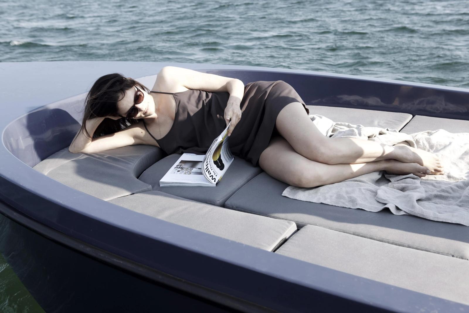 By lowering the centre picnic table and laying across a custom four-cushion sun lounge, the front part of the Picnic 18 turns into a whooping 200x180 cm sunbed perfect for a relaxing nap or drying in the sun after a refreshing dip in the water.