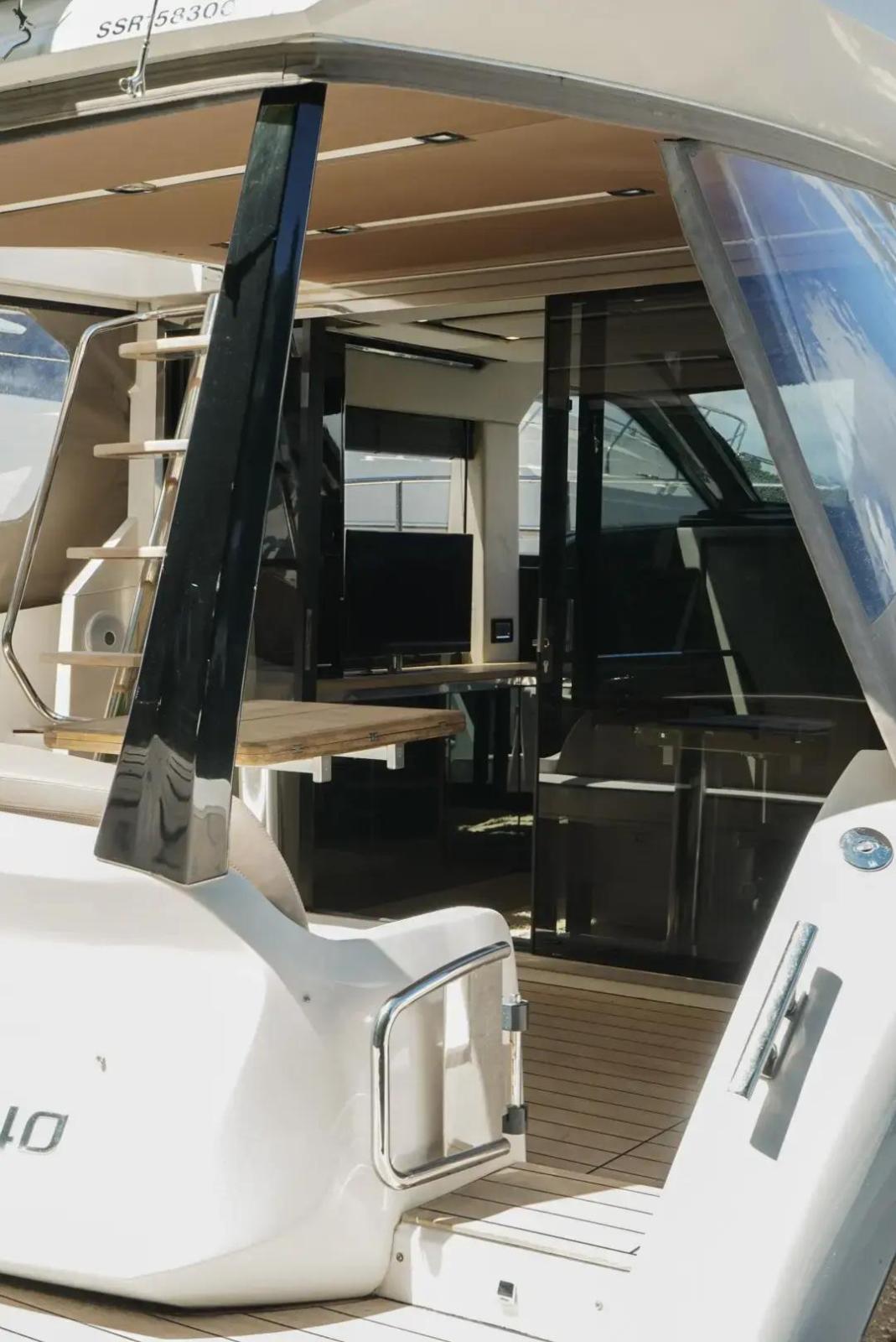 Experience luxury and performance on the water with the 2012 Sessa Fly 40. This magnificent flybridge yacht combines elegant Italian design with practical functionality, making it perfect for both leisurely cruises and thrilling adventures. The spacious flybridge offers panoramic views and a comfortable seating area, ideal for socialising and relaxation. Below deck, the Sessa Fly 40 boasts a beautifully appointed interior with high-quality finishes, a fully equipped galley, and cosy cabins that ensure a comfortable stay for you and your guests. Powered by twin Volvo Penta IPS engines, this yacht delivers impressive performance and smooth handling. Don't miss the opportunity to own this exceptional vessel!Sessa Fly 40 Offer - £274,950Boat review said "A stylish boat, practical layout, excellent build quality, quality and attention to detail. Its a boat you will take pleasure in owning, and one that you will find yourself pausing to take one last look at every time you leave her".Steering SystemJoystick ControlTechnical DataLength 12,30 m EC Certifying length 10,88 m Beam 3,90 m Engine 2xIPS 400 / 2xD4 300 Hp Propulsion System IPS Cabin 2 Weight with engine 10,50 kg Persons capacity 12 Fuel tank 900 L Water tank 360 L Holding tank 125 L Berths 4 + 1 Design Christian Grande Project category BStandard EquipmentDECK: anchor mod. Bruce 17Kg - galvanized chain 8 mm 70 m - S/S bow roller - electric anchor winch (1000 w) - S/S fairlead - anchor safety cable - S/S bow pulpit - fuel tank inlet located starboard side - Fresh water tank inlet - black water tank drain outlet from shore - S/S bow, mid-ship and stern cleats - deck with Stainless steel handrails - bow sunpad - double electric windshield wiper with washer.COCKPIT: Sofa with storage for life raft underneath seats - cockpit and fly courtesy lights control - dinette access glass sliding door - halogen lights - 230 V shore power - high pressure water inlet - hot/cold shower - door for engine room access - S/S flybridge stairs with teak steps - S/S stern gates.BATHING PLATFORM: removable bathing ladder - emergency ladder. SALON: Front and side glass windshield - pilot side sliding manual window - nut wooden furniture with storage - starboard side upholstered L shape sofa - telescopic nut wooden table with extendible top - nut wooden furniture with storage and shutter to cover electric panel and CD/DVD player (opt) - carpet floor - upholstered retaining frames for curtains - wooden venetian blinds - halogen lights - fabric salon door curtain - stairs to access to lowerdeck with carpet floor steps - S/S handrail.CONSOLE IN SALON: three dimensional dashboard with leather sunlid, compass - engines instrument board complete with analogic and digital indicators for engines parameters (rpm, oil pressure, water temperature, engine sound warning alarm, fuel level) - rudder indicator analogic - back-lighted switch panel for deck services - leather steering wheel - Volvo penta electronic engine controls - Joystick control - panel alarms - hydraulic flaps control - anchor winch control - red courtesy light control - fire control for manual extinguisher - lighter socket - VHF housing (opt) - display 2 eVC Volvo - multifunction instrument display St40 - cartographic Gps 12 Widescreen (C120W) housing (opt) - S/S handrail.GALLEY: nut wooden furniture with storage and drawers - compartment for rubbish bin - laminated work surface - 2 gas rings - extractor fan - S/S sink - hot/cold water tap - 125 l refrigerator and 40 l freezer - openable porthole integrated in the panoramic window - aluminium venetian blind - washing machine housing (opt) - nut wooden overhead cabinets - halogen lights - power sockets - nut wooden floor.MASTER CABIN (BOW): Double bed with storage underneath - nut wooden front drawer under bed - mattresses, pillows, bed sheet cover - fabric bed side and headboard - nut wardrobe with laminated interior - carpet floor - reading lights - halogen lights - power sockets - openable porthole - foredeck hatch with darkening panel - direct access toprivate toilet - wooden venetian blinds.MASTER CABIN TOILET (BOW): direct access from master cabin - nut cabinet with lacquered top, ceramic sink and mixer tap - cabinet with mirror shatters - wooden venetian blind - openable porthole - power sockets - tight lights - bathroom accessories - plexiglas shower door with teak floor - marine WC with teak folding seat - shower with sliding diffuser and mixer tap - nut wooden floor.GUEST CABIN (STERN): 2 single bed - mattresses, pillows, bed sheet cover - fabric central area and headboard - nut wardrobe with laminated interior - carpet floor - reading lights - halogen lights - power sockets - openable porthole integrated in the panoramic window - wooden venetian blinds.GUEST TOILET/DAILY: double access from guest cabin and corridor - nut cabinet with lacquered top, ceramic sink and mixer tap - cabinet with mirror shatters - wooden venetian blind - openable porthole - power sockets - tight lights - bathroom accessories - plexiglas shower door with teak floor - marine WC with teak folding seat - shower with sliding diffuser and mixer tap - nut wooden floor.FLYBRIDGE: Front and side plexiglas windshield with S/S handrails - S/S handrail for stair - courtesy lights - mast with: horn, navigation lights, anchor lights, flag holder, GpS antenna - aft sofa with storage - pilot bench - bow sunpad - consolle cover.CONSOLE FLY: Dashboard panel - engines instrument board complete with analogic and digital indicator for engines parameters (rpm, oil pressure, water temperature, engine sound warning alarm, fuel level) - back-lighted switch panel for deck services - steering wheel - Volvo penta electronic engine controls - hydraulic flaps control - anchor winch control - lighter socket - VHF housing (opt) - Gps Cartografico 9 Widescreen (C90W) housing (opt)ENGINE ROOM: 2 x 450 l fuel tank (approx.) - fuel sender connected with eVC Volvo system - fuel tank link balance system - val