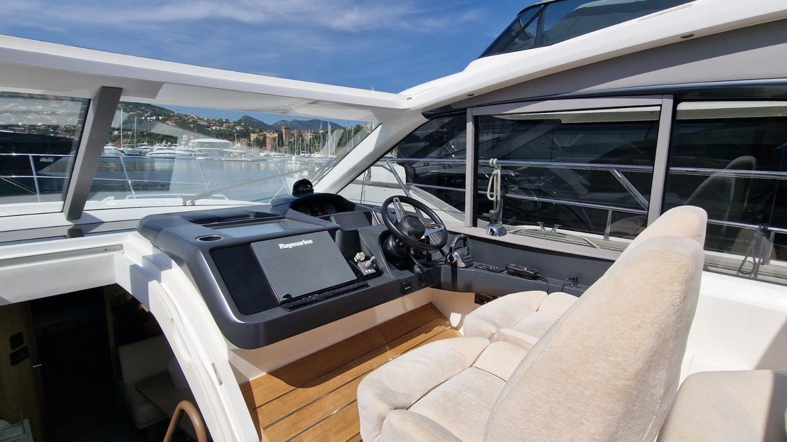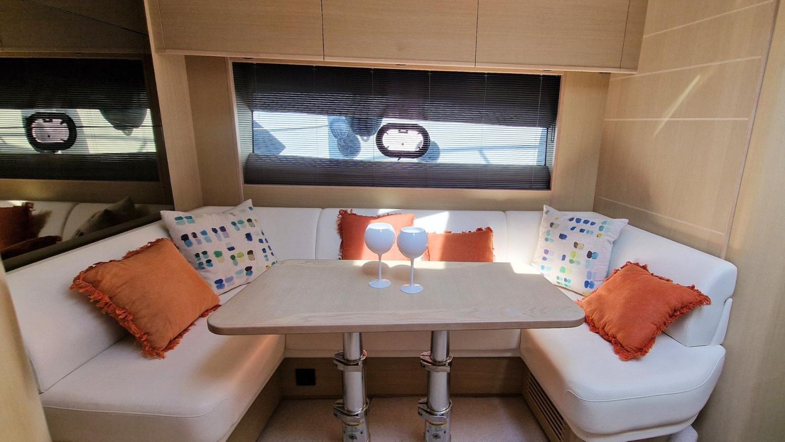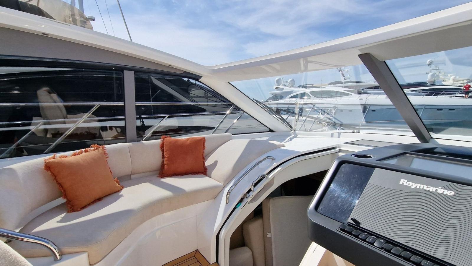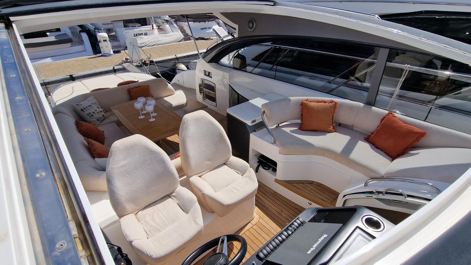 On deck, enjoy a bright, open cockpit with electric sunroof, wet bar, generous seating, and aft sunpad — perfect for entertaining or relaxing under the Mediterranean sun.