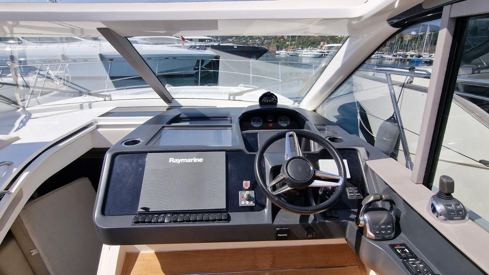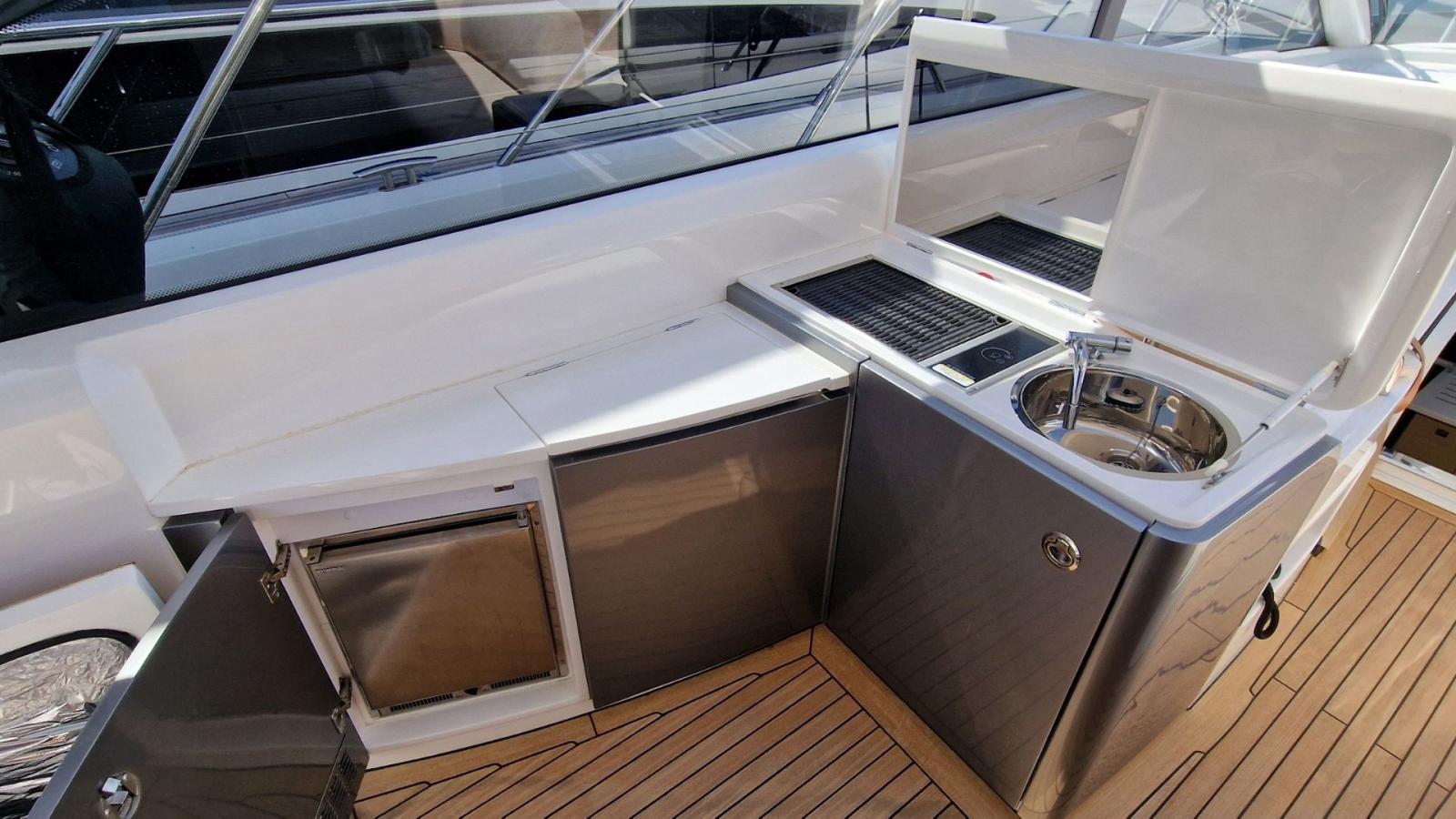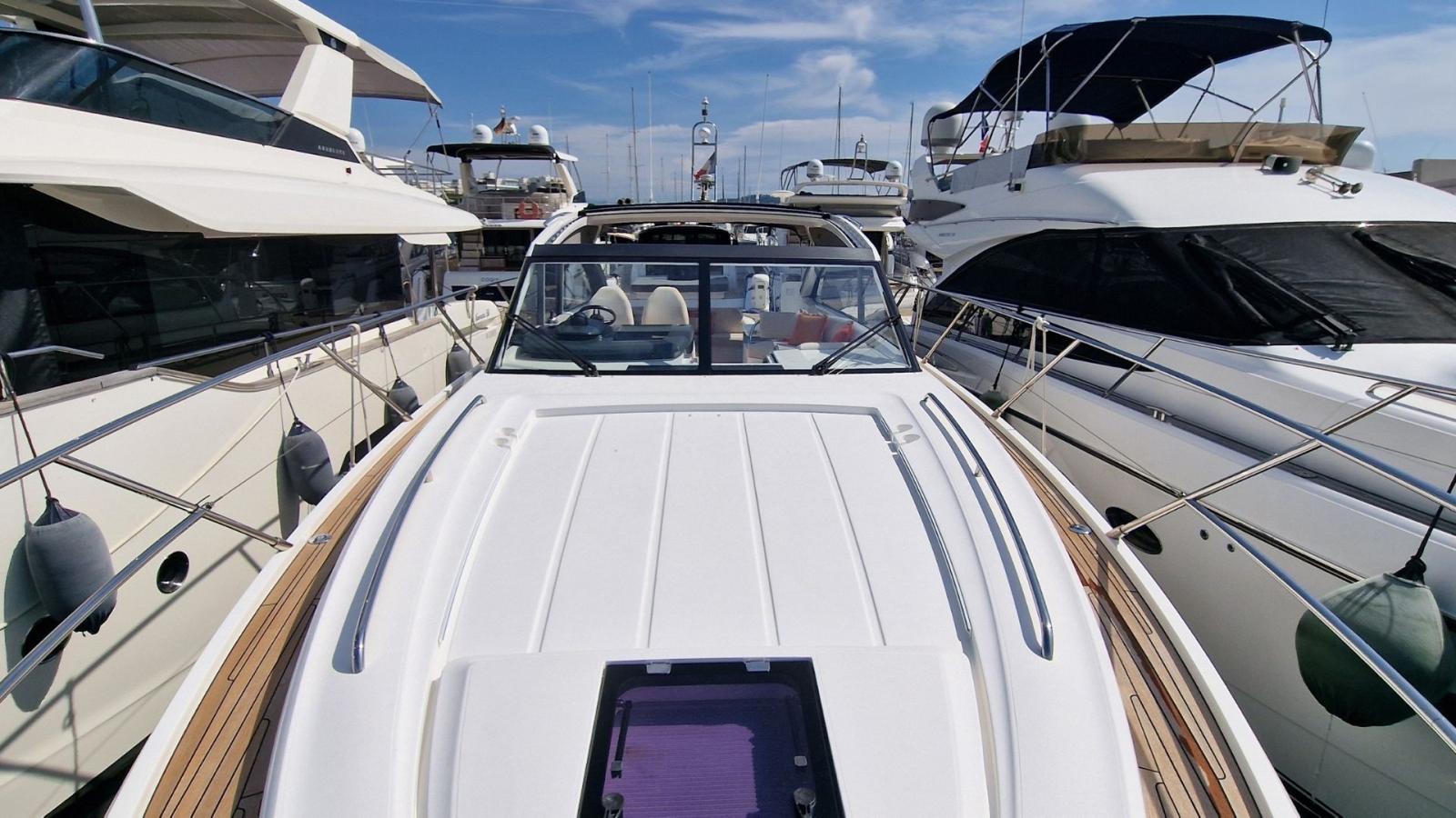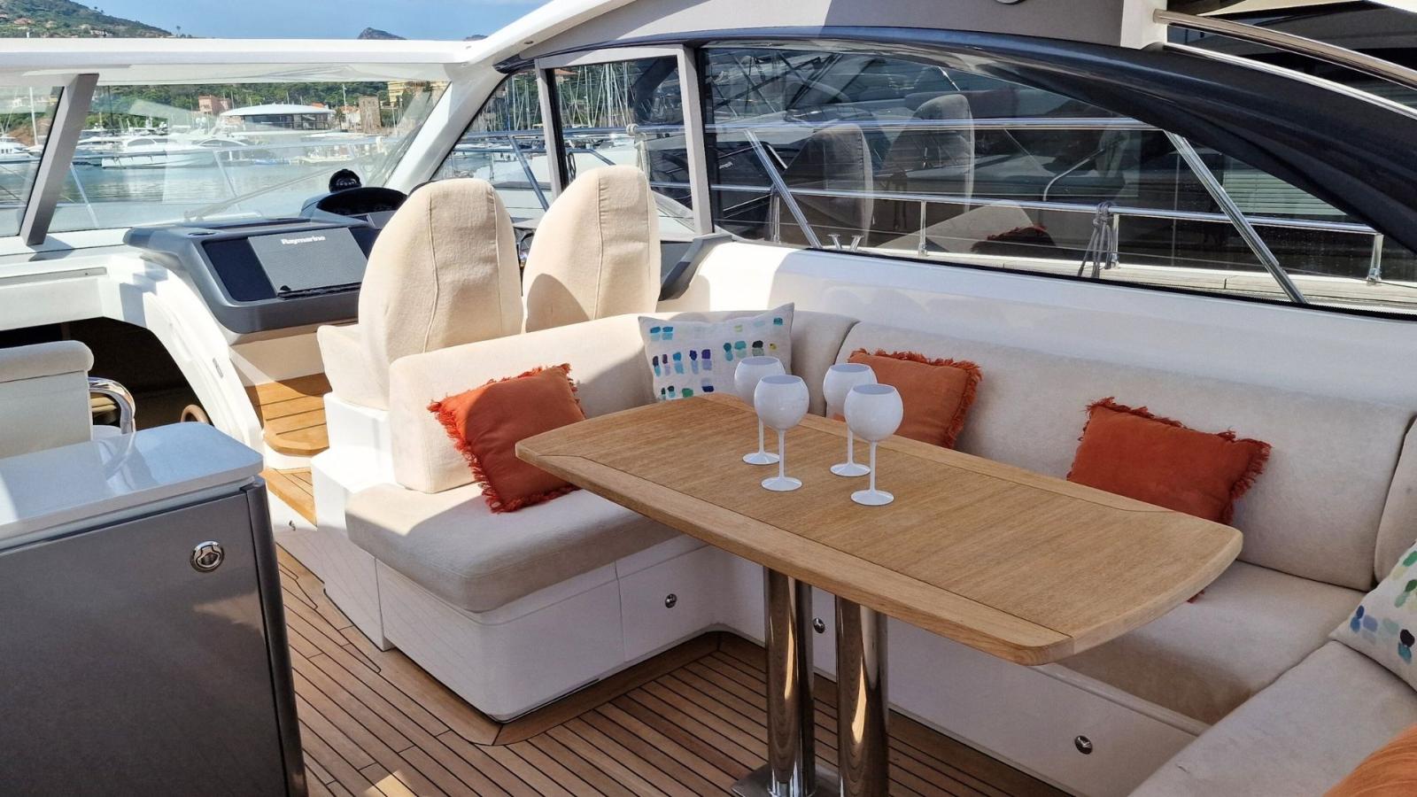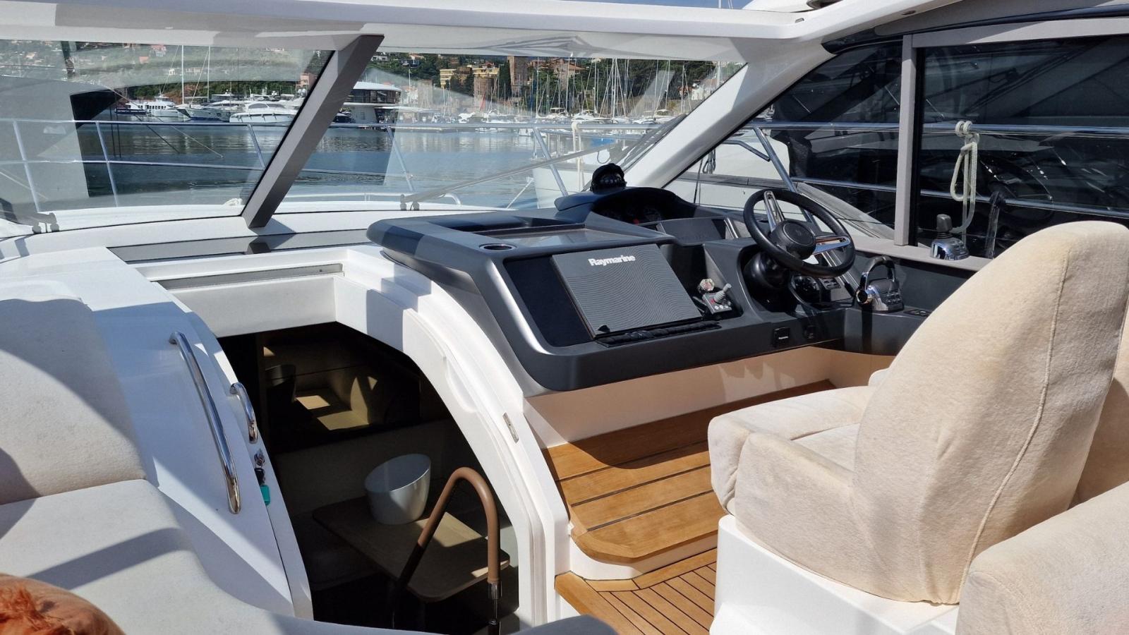 On deck, enjoy a bright, open cockpit with electric sunroof, wet bar, generous seating, and aft sunpad — perfect for entertaining or relaxing under the Mediterranean sun.