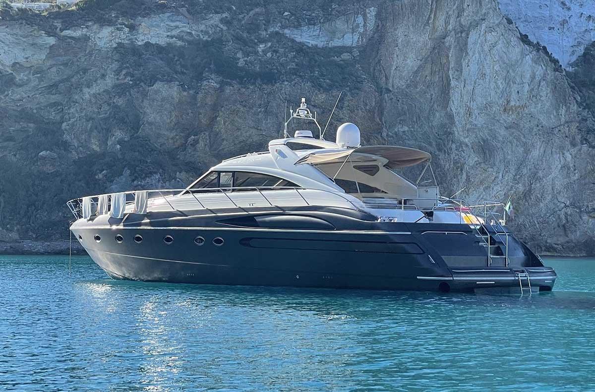 Princess Yachts is recognized worldwide for the quality of its hulls, the elegance of its lines, and the reliability of its yachts. The V65 is one of its most sought-after models: a 20-meter sporty yacht, both high-performance and comfortable, ideal for fast cruising in the Mediterranean.