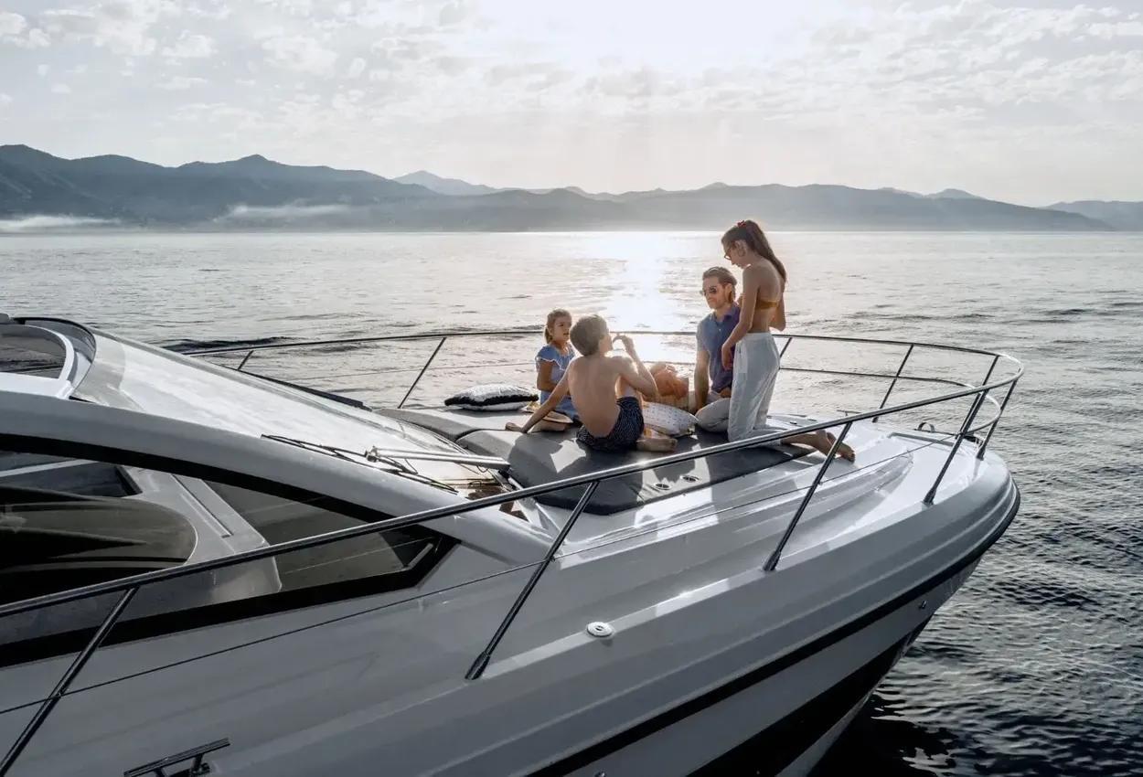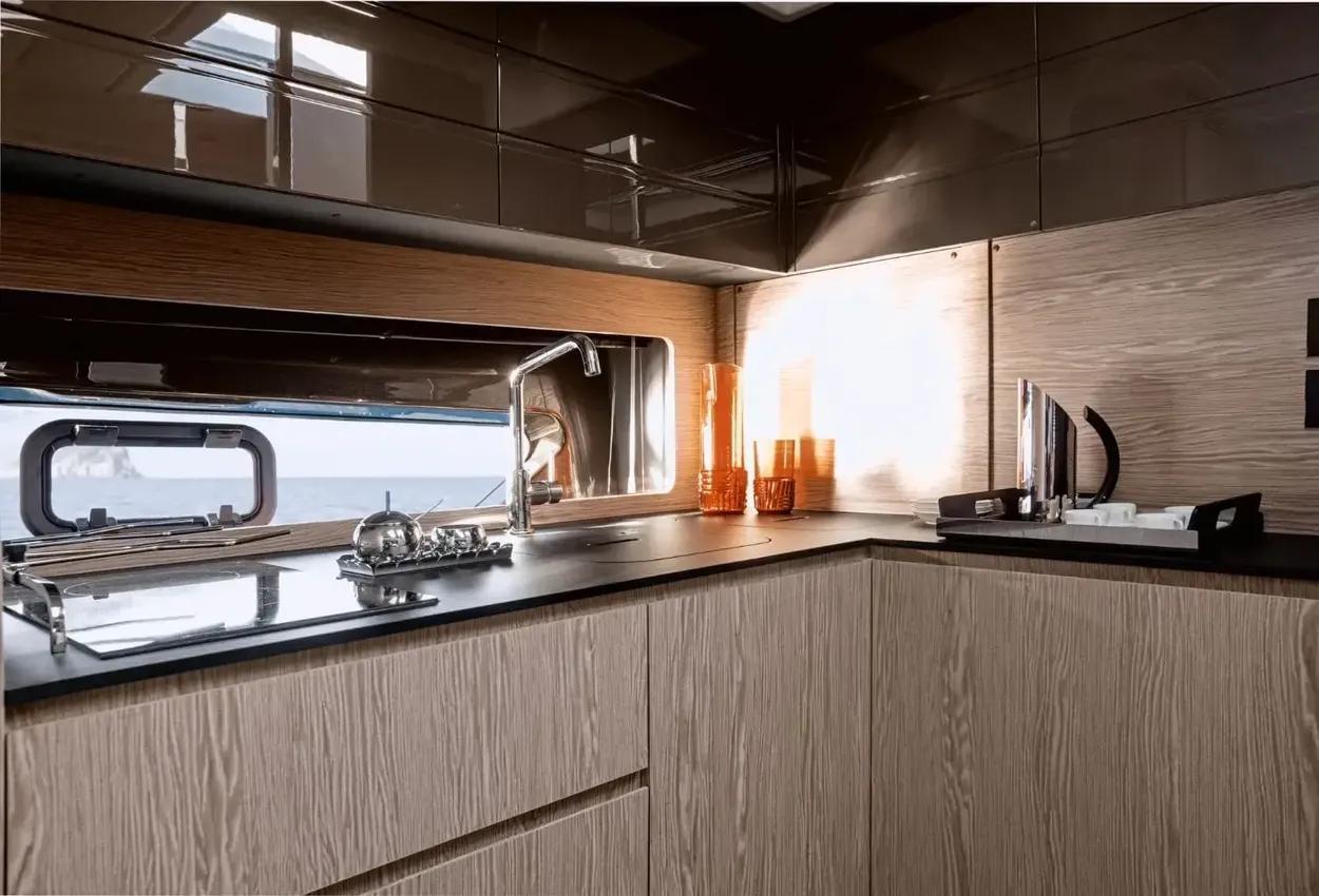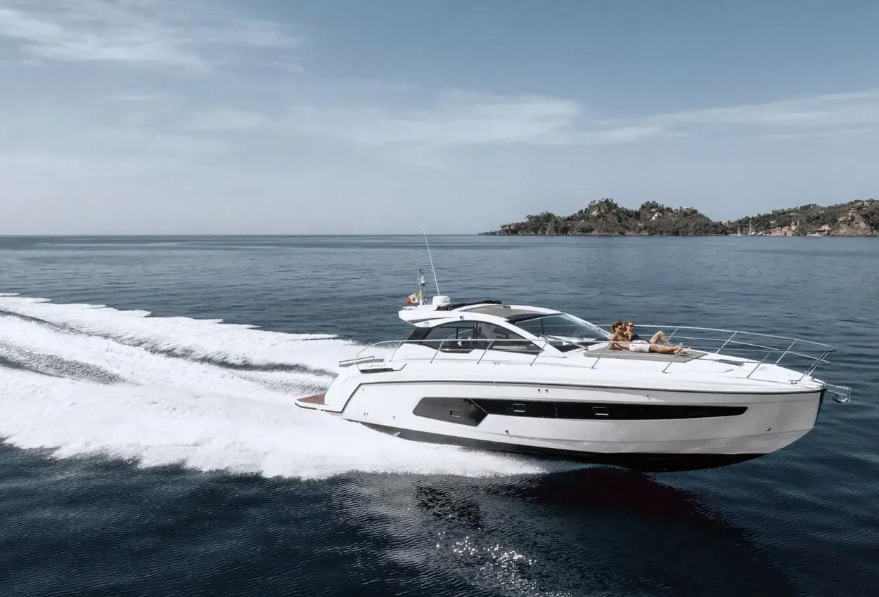 Athletic splendour with a chic design appeal, the Atlantis 45 is optimised for peak performance, top comfort and effortless elegance. Well-organized living spaces create a liberating dynamic on the main deck, while spacious interiors evoke an airy, lively mood. Free your spirit on the Atlantis 45. Lying Swanwick.Azimut Atlantis 45 – Offer £699,950Factory Fitted Options:Advance package: Auto dynamic trim Volvo Interceptor, Black water tank, Decor upgrade, Extra conduits, Galvanic isolator, Garage with hydraulic operating system, Garmin VHF, Lifting platform, Mesh covers for windows, Search light (portable and manual), Shore water plug11KW Generator (includes Racor filter)Air conditioning system (requires 11Kw generator) 44.000 BTUBow thruster 4.4kWAdditional waterproof socketUK custom cockpit enclosureCo-pilot-seatCover for driver's seat, dashboard, cockpit sofa and sunbathing cushionElectric searchlight on hard topStainless steel anchorStep lights for exterior (courtesy lights)Stern rubbing strakePermateak decking to cockpit and bathing platform - teak effectUnderwater lights (nr.2)Upgrade standard external cushions in Batyline fabricAdditional bed in aft guest cabinAdditional interior socketSet of cutlery, crockery and glasses (includes dedicated rack)Barbecue in cockpitIcemaker in cockpitMiele Marine combo microwave ovenChain counter control on main helmGarmin AIS 800Garmin Platinum packageVIDEO - TV - HI-FIEntertainment Center Audio/Video in dinetteEntertainment Center Audio/Video in master cabinGloss wood teak version of the cockpit tableSpeak to us about Temporary Admission in the EU. RRP Total Price Ex Vat Sterling: £749,535.00