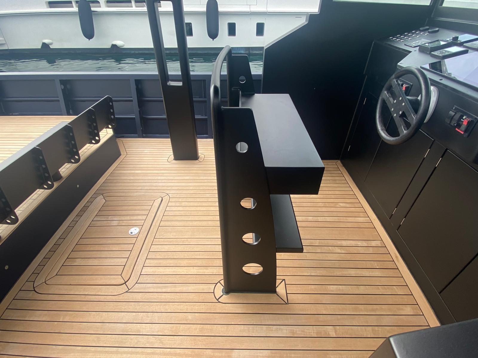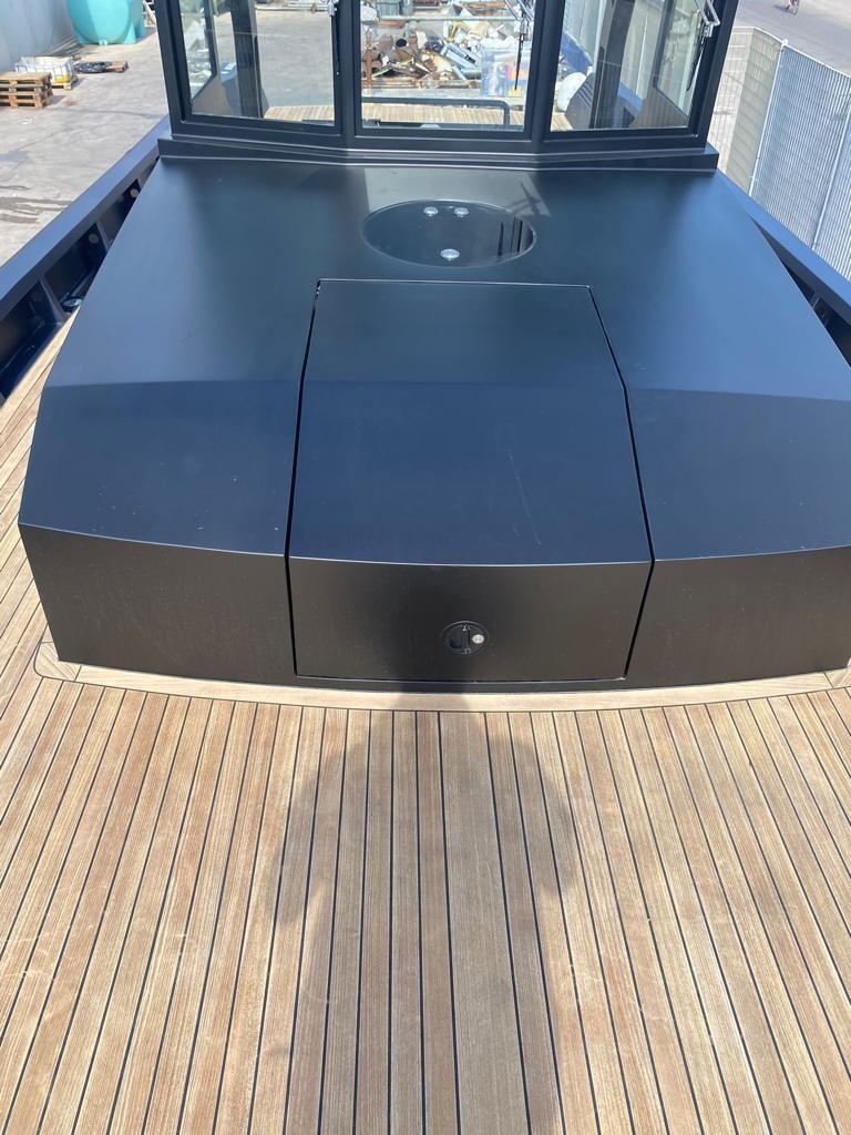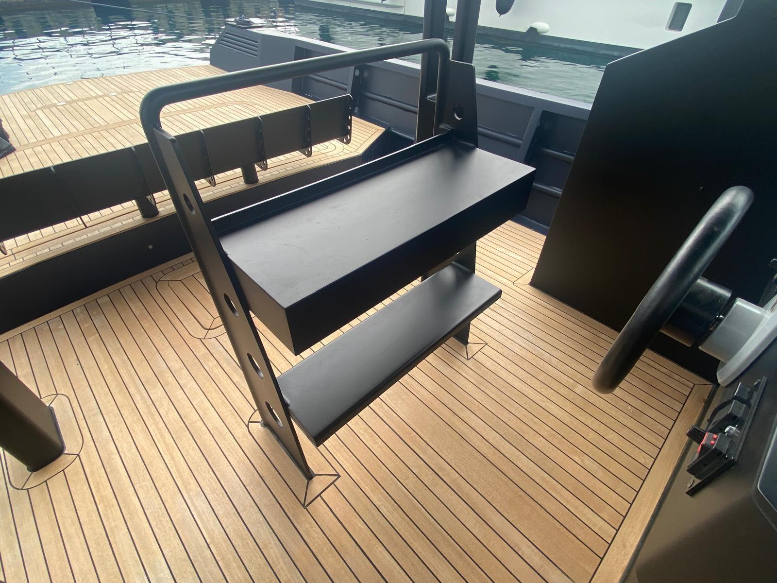 The brief of this project required excellent performance in the event of rough seas, robustness of construction, ease of maintenance and obsessive attention to detail. Dark blue hull with black drumming. Painted hull 2020. Painting of the internal gunwale and superstructure 2022. chartplotter 2021.