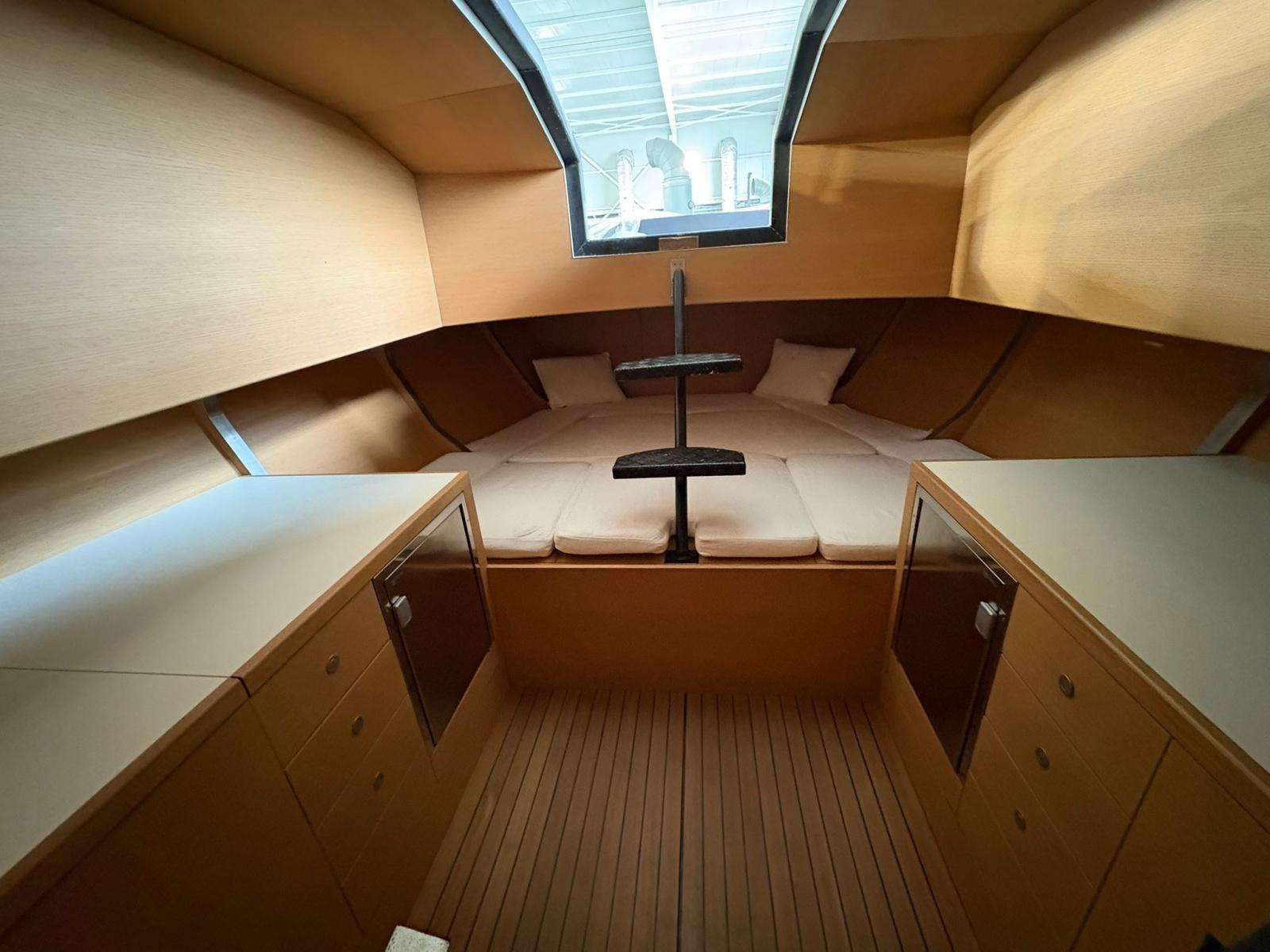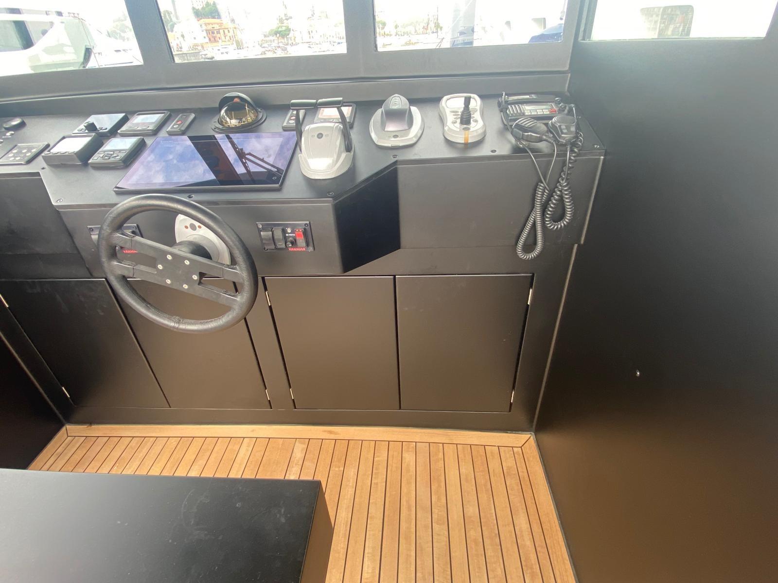 Located in the bow with access via a hatch, with V-shaped bed, N°2 VITIFRIGO refrigerators installed in the wooden furniture and electric toilet. From the cabin there is access to the technical compartment where there are the diesel tanks and the black water tank. Waterjet Steering System, No. 2 Engine Throttles, Hamilton Jet Waterjet Control, Humphree Flaps Control, Furuno Navpilot 711C/OB Autopilot, Furuno NavNet Chartplotter, Furuno FI-50 Multifunction Printer, Icom IC M411 VHF, Yanmar Engine Gauges, Cassens & Plat Magnetic Compass. Deck entirely in teak. Excellent boat for day trips but at the same time allows you to stay even at night. Excellent high-quality design.