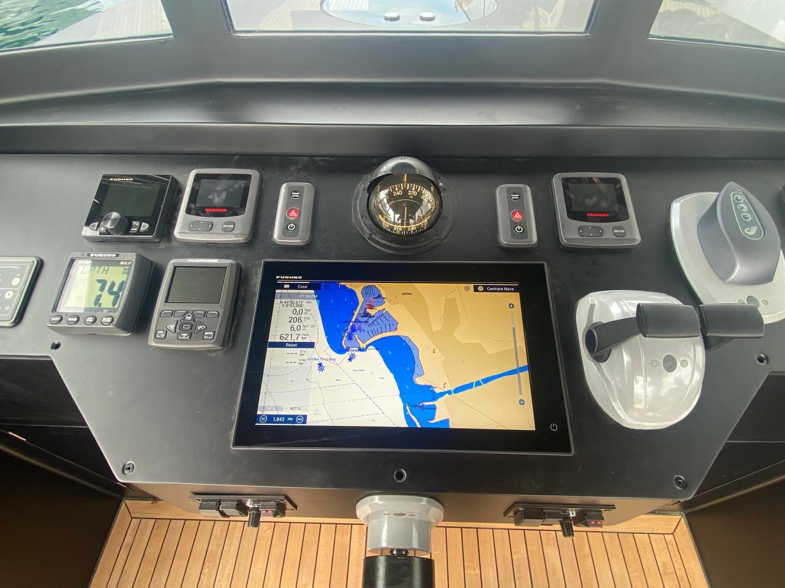 GPS (chartplotter Furuno NavNet, Multifunzione Furuno FI-50), Autopilot (Furuno Navpilot 711C/OB), VHF Radio (Icom IC M411).