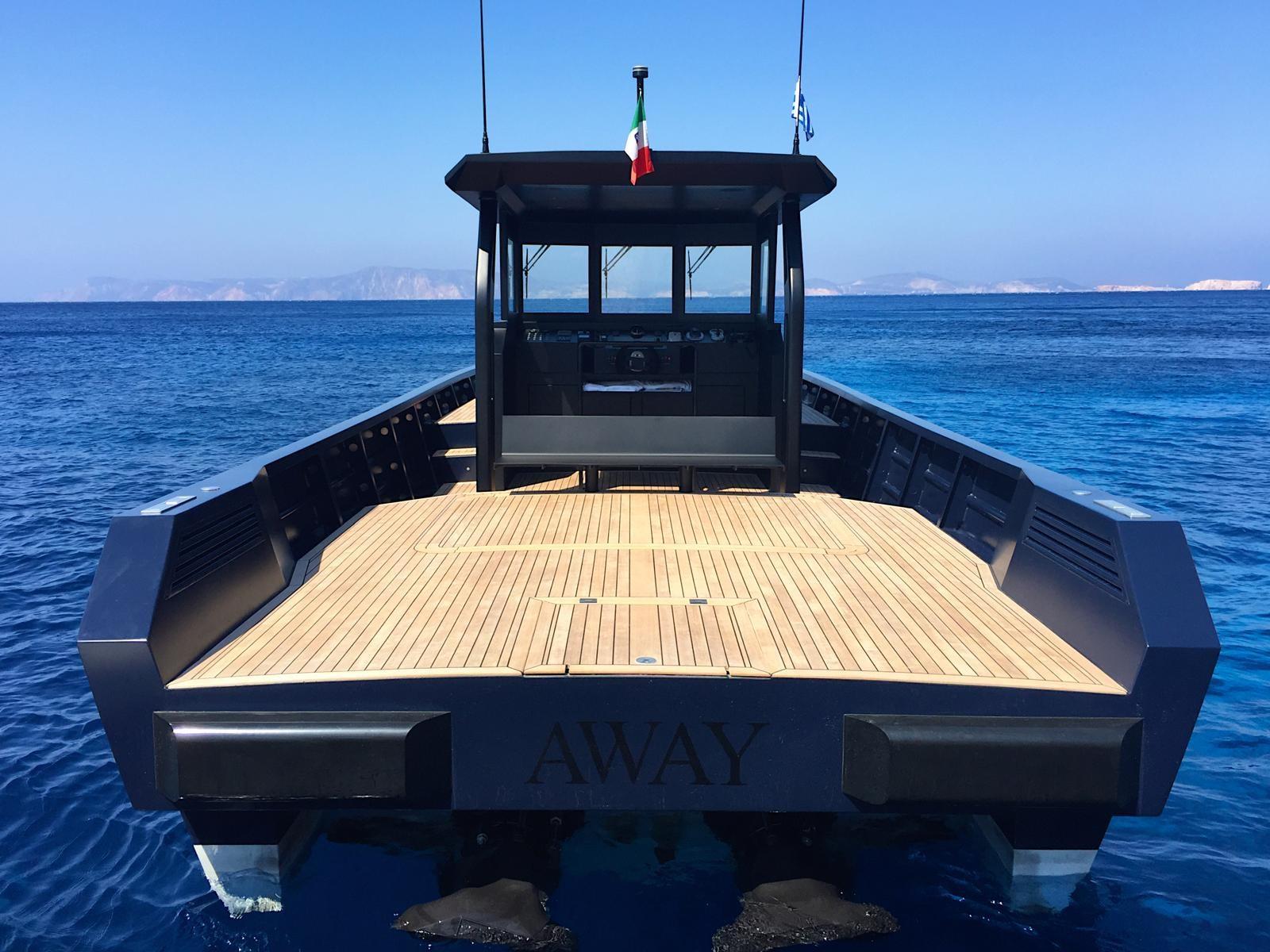 A 12-meter aluminum boat with waterjet propulsion, built on commission by an Italian owner.