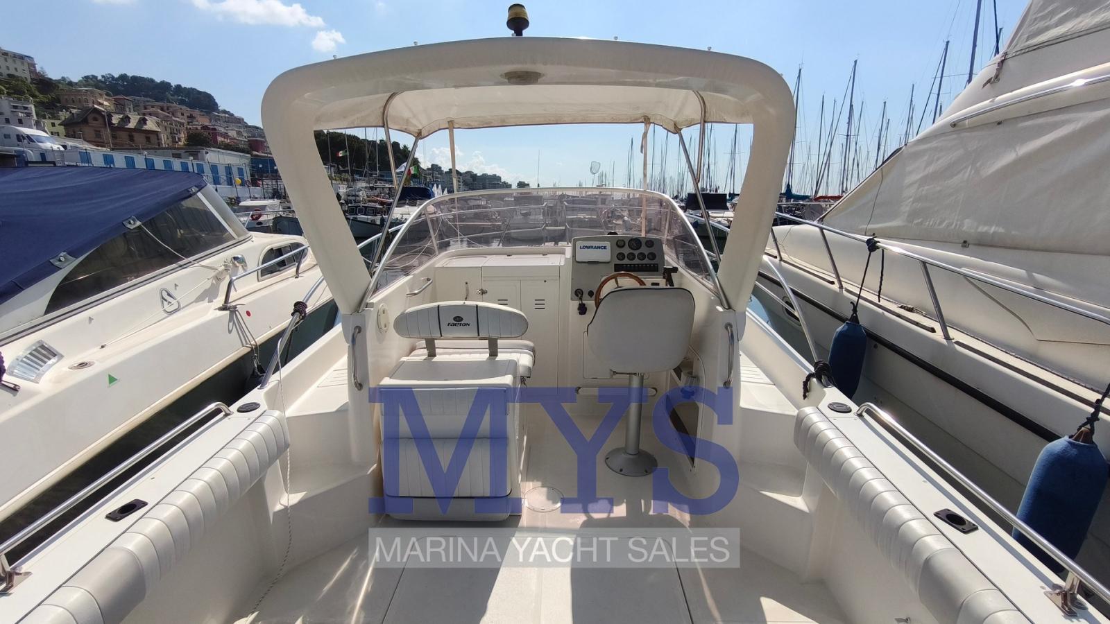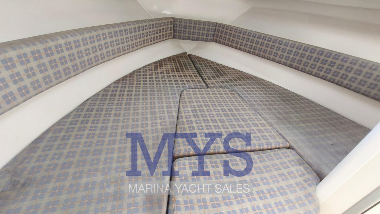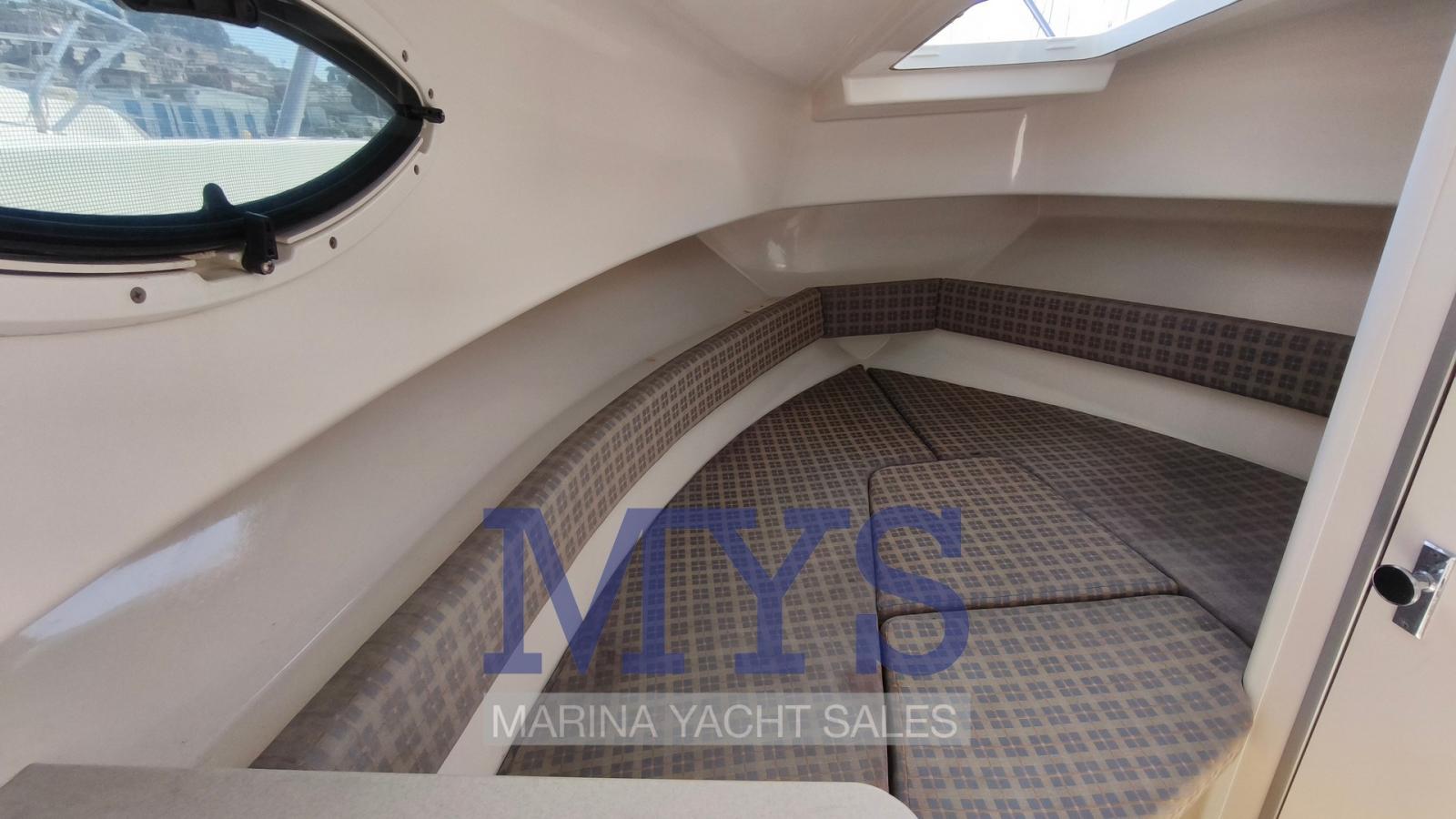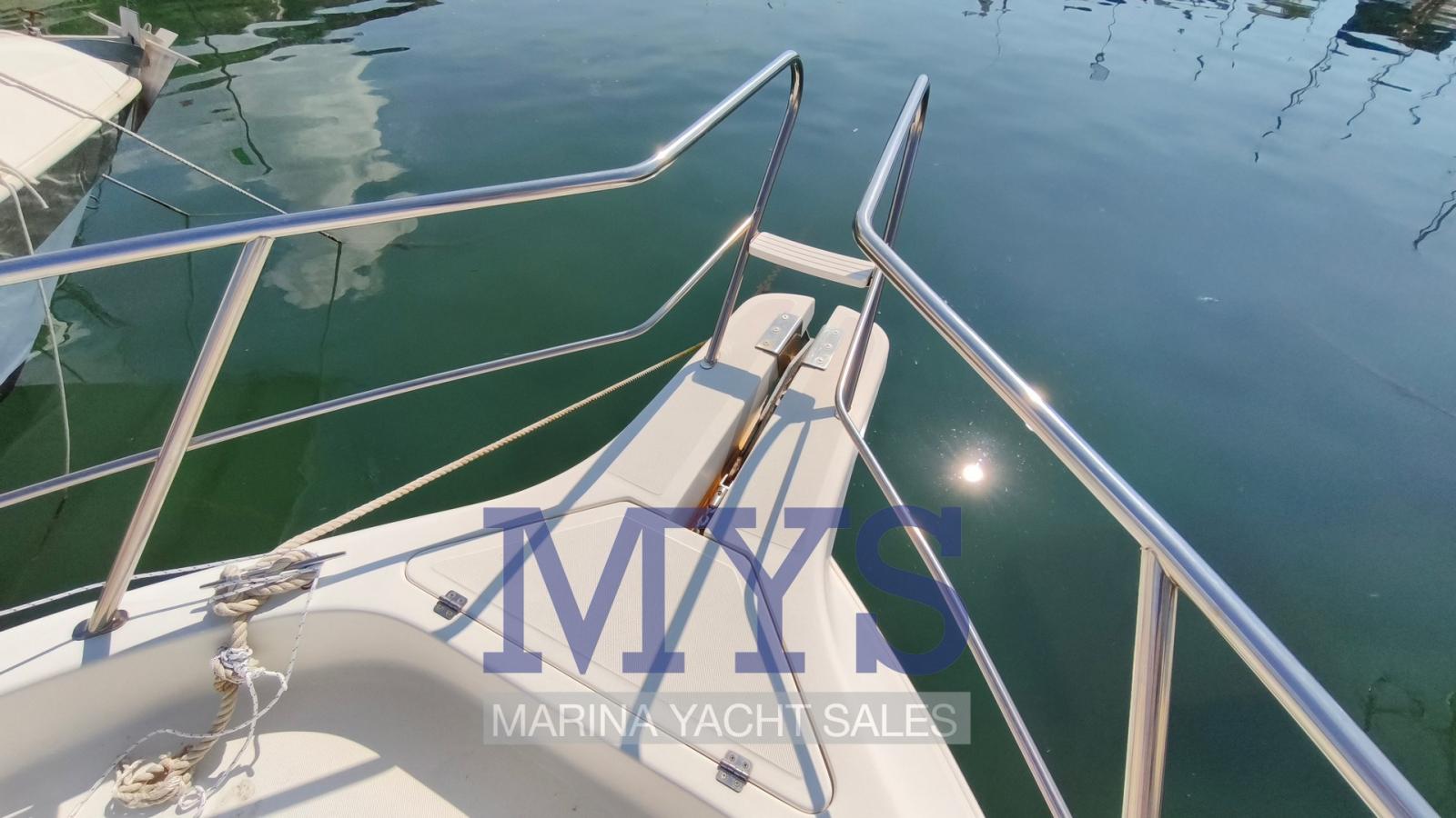 Engine Alarm, Anchor (kg 7,5 + 50 mt di catena), Water pressure pump, 2 Batteries (x 100 Ah), Deck Shower, Washbasin in the cockpit, Courtesy Lights, Automatic Bilge Pump, Entry door, Shorepower connector, Rollbar, Electric Windlass, swimming ladder, Outboard Engine Support Bracket, Horn.