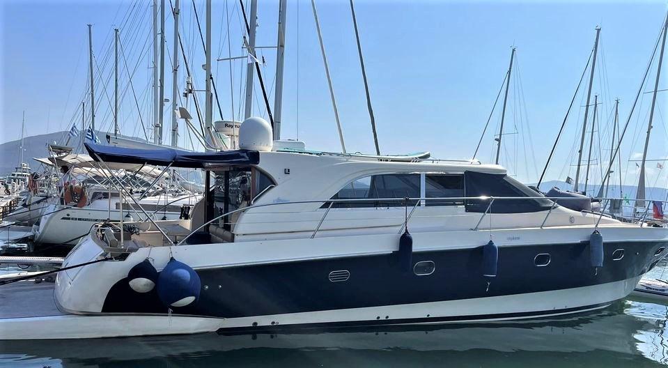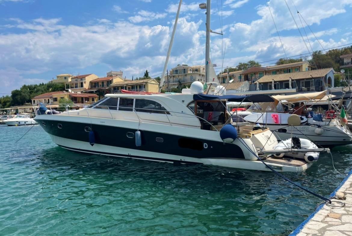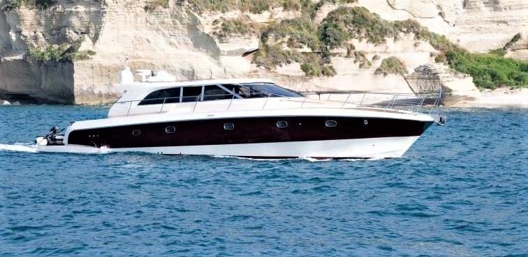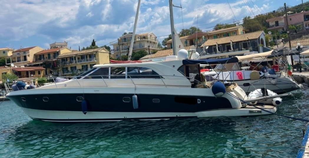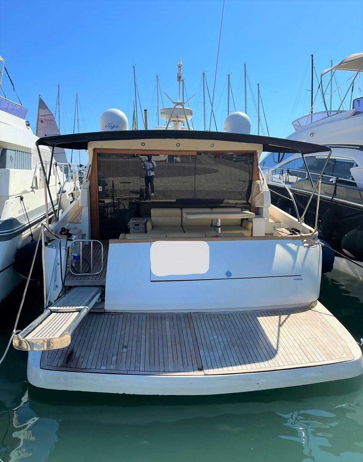 Water pressure pump, Teak Side Decks, Special Colour, Deck Shower, Hydraulic Flaps, Hard top, Courtesy Lights, Gangway (Idraulica a scomparsa), Automatic Bilge Pump, Entry door, Teak Cockpit, Shorepower connector, Electric Windlass, cockpit table, Tender, Stern Winches.