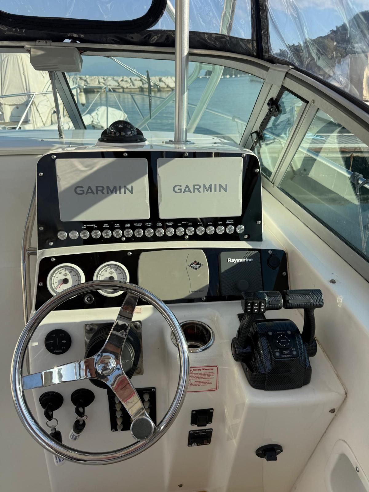 Main accessories: 2 x 9" GPS - 2 Depth Sounder (2 PROBES (1-B175L) (GTSIM-TM) - Autopilot - Outboard motor mount (GARMIN BOW ENGINE) - Camera (360° WITH APP) - Speakers - Stereo (FUSION WITH 4 SPEAKERS)