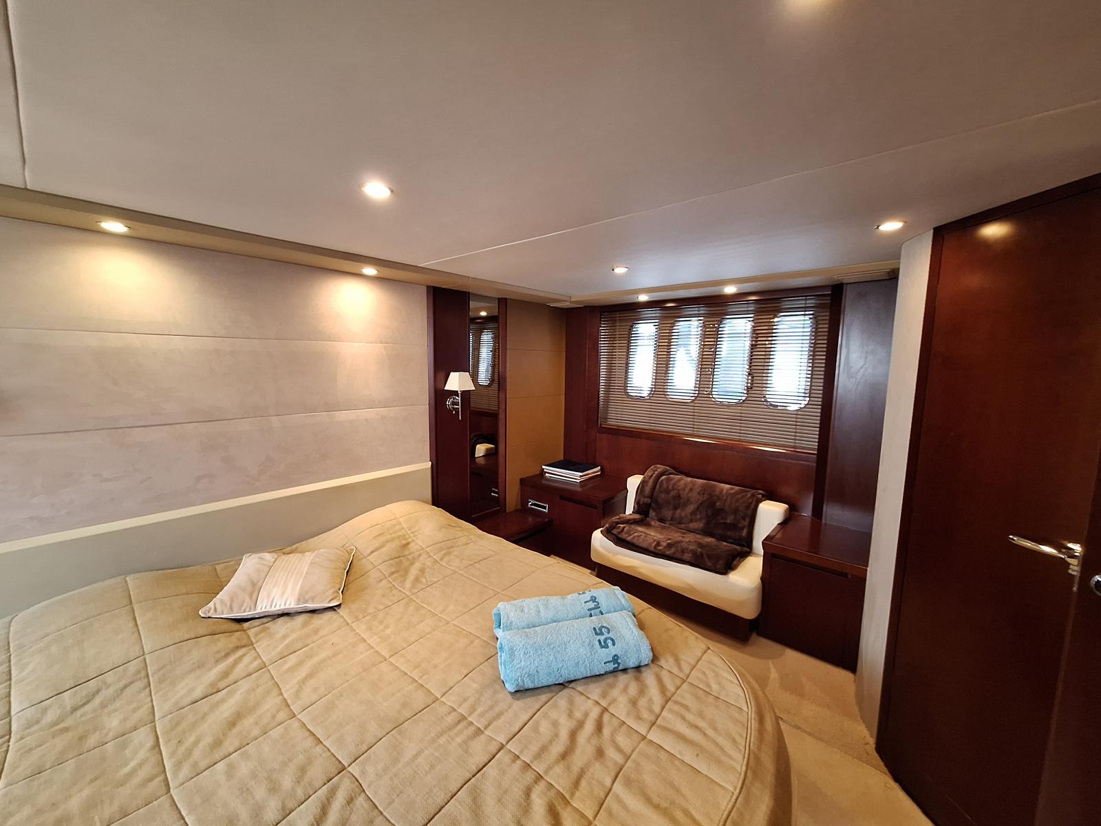 This beautiful yacht features 3 spacious cabins, each with its own bathroom, as well as a crew cabin located aft with a large storage area and direct access to the engine room. The lower deck was fully refurbished in February 2025, including new ceilings and carpets throughout.