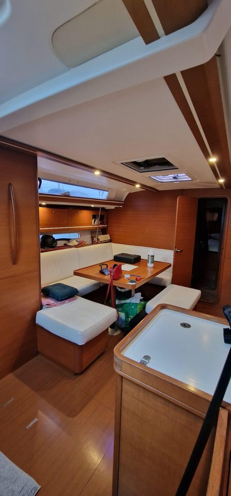 The Dufour 445 Grand Large The Dufour 445 Grand Large is a cruising sailing boat designed to combine elegance, comfort and excellent performance. Launched in 2010, it was designed to meet the needs of both cruisers looking for generous space and practical functionality, and those who want a high-performance boat that is easy to manoeuvre, even with a small crew. Design and Fairing Designed by the famous designer Umberto Felci in collaboration with the Dufour team, the Dufour 445 GL stands out for its balanced fairing and modern lines. The wide maximum beam extends towards the stern, offering greater stability and more generous interior spaces. (SVN)