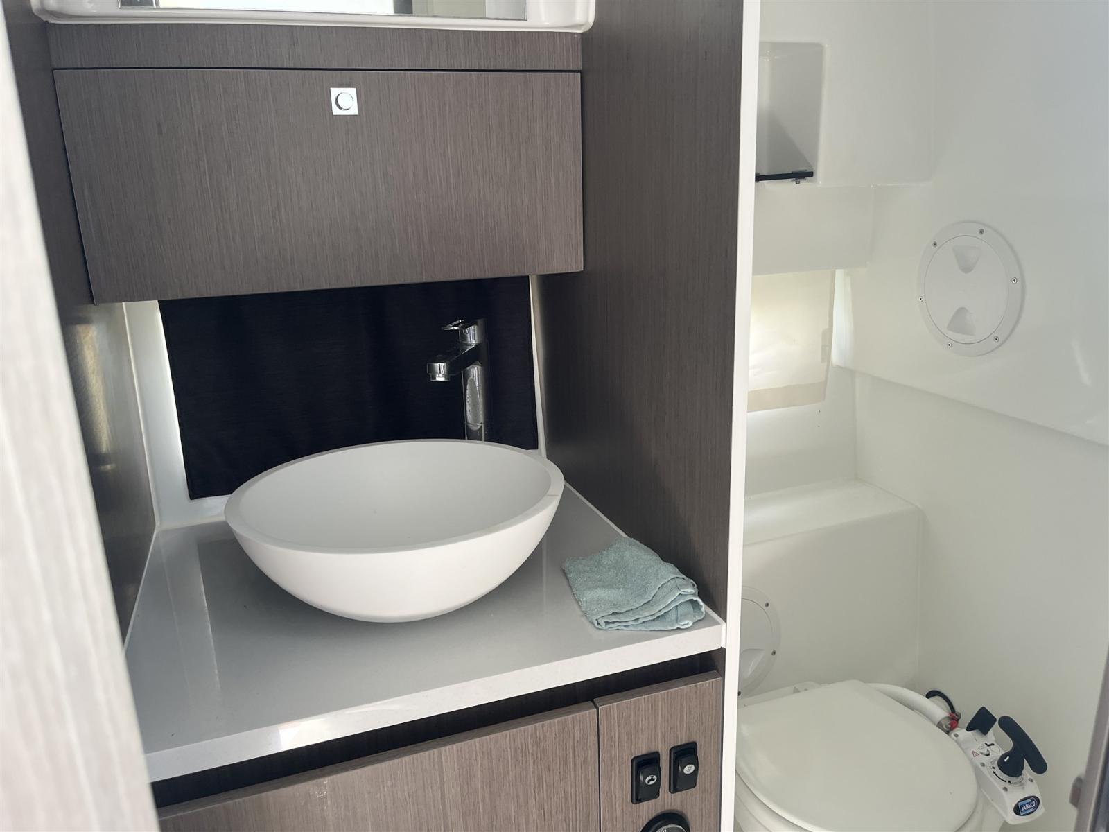 Warm Water System, 12V Outlets, 220V Outlets, Electric Toilet.