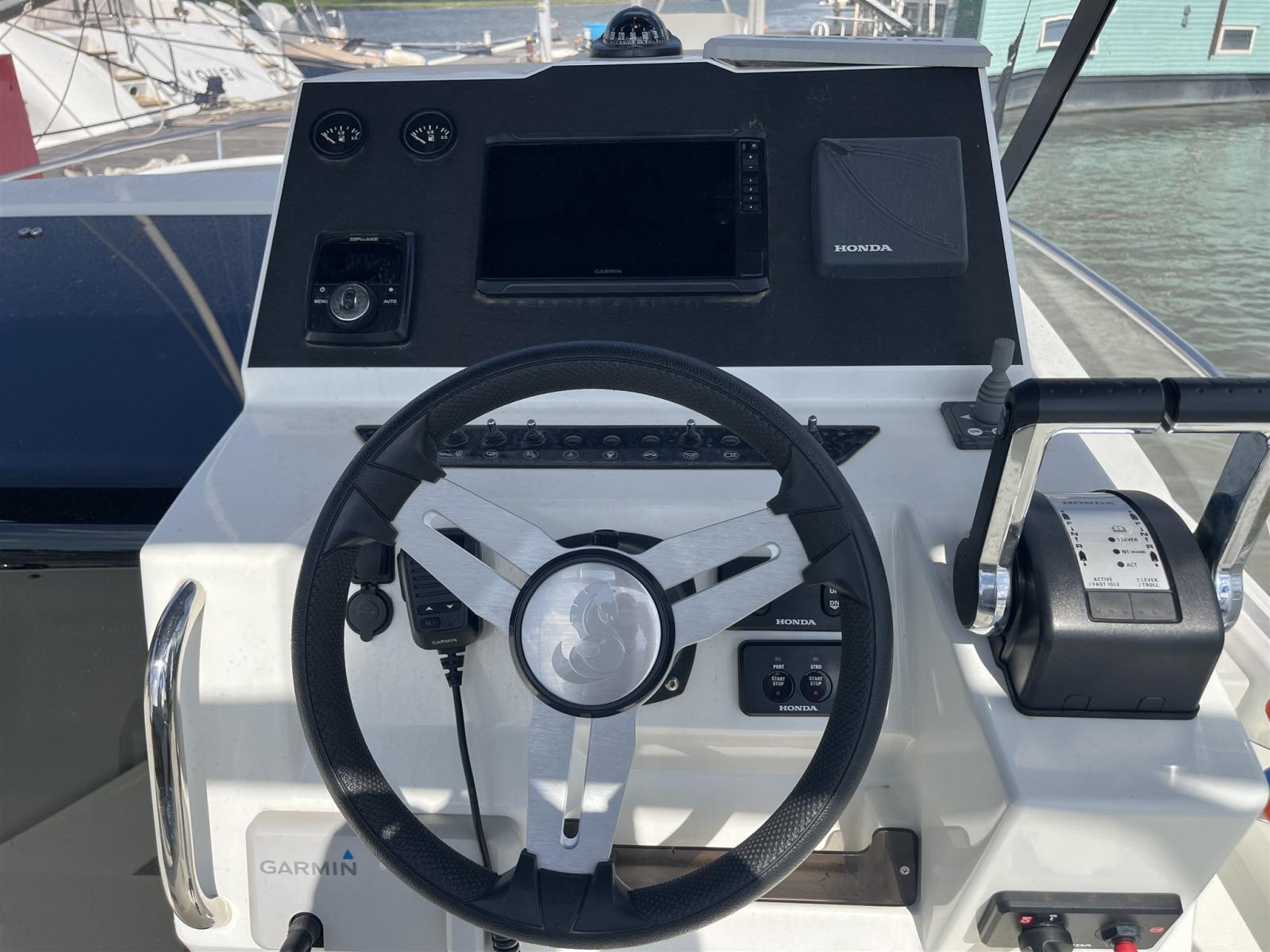 Rudder angle indicator, Electronic engine control, Plotter with GPS antenna (garmin).