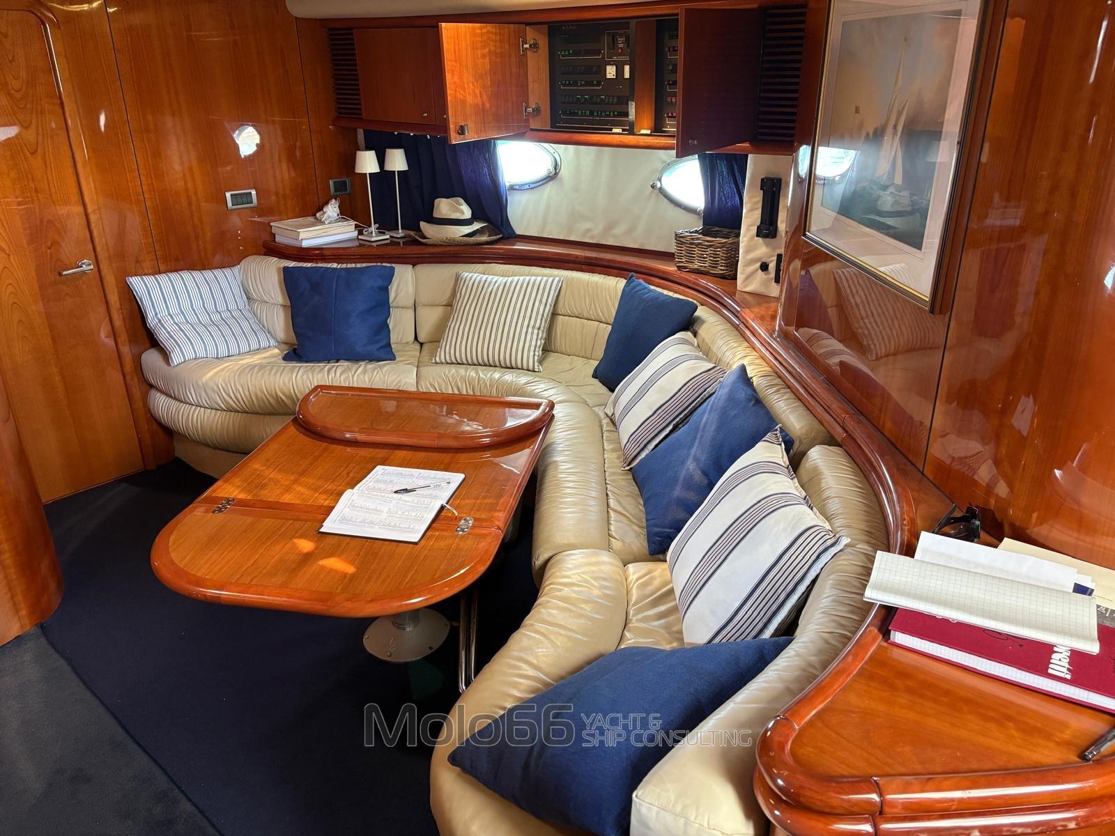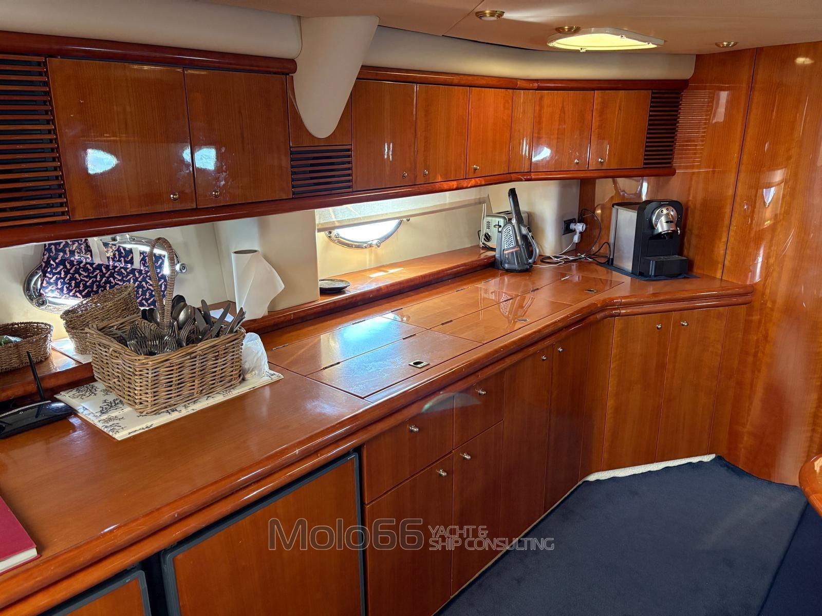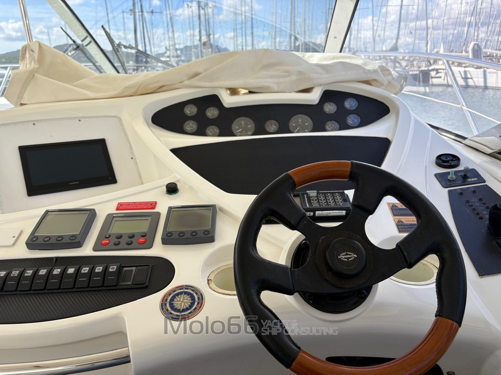 Engine Alarm, Bilge Alarm, Water pressure pump, Special Colour (Blu Navy), Deck Shower, Hydraulic Flaps, Tender Garage, Hard top, Fire Extinguishing System, Courtesy Lights, Gangway, Platform, Teak Cockpit, Shorepower connector, Electric Windlass, swimming ladder, cockpit table, Horn, Stern Winches, Bow Winches.