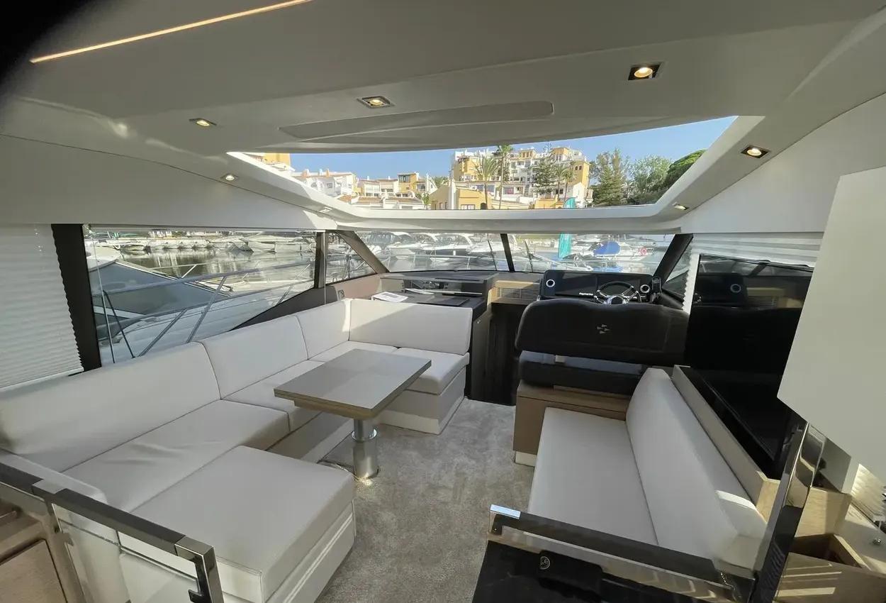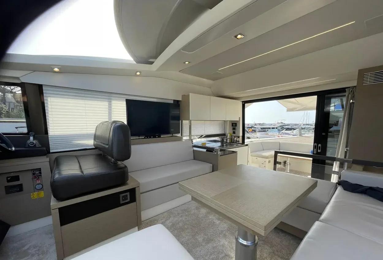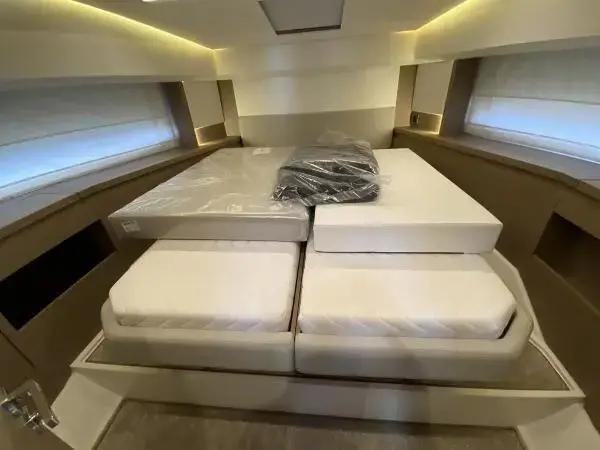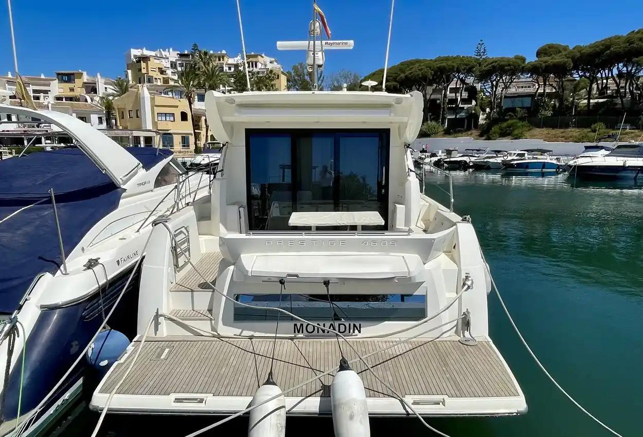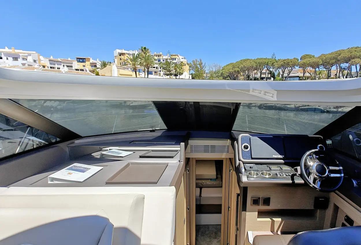 This sporty version integrates the concept that is so dear to PRESTIGE. With her remarkable sporty look, the PRESTIGE 460S benefits from an incomparable design, open to the exterior. Adaptable to suit your needs, the large opening sunroof and immense sliding glass door aft can be used to modulate the living space. The PRESTIGE 460S allows one to enjoy an enhanced exterior space when fully opened and a more protected living space when closed. It is worth noting the enhanced modular design, featuring the new L-shaped cockpit, which transforms into a very large sundeck.