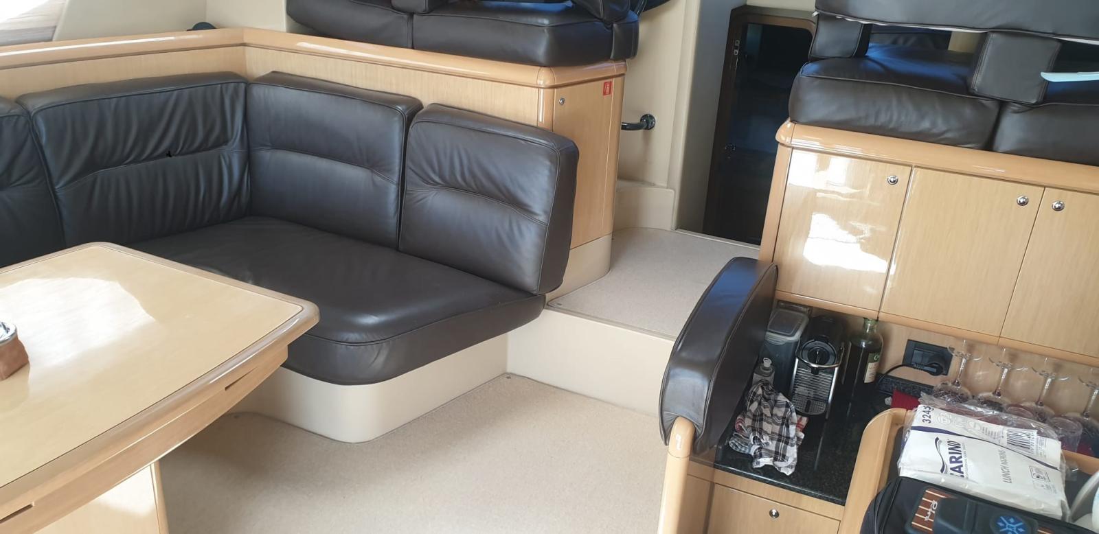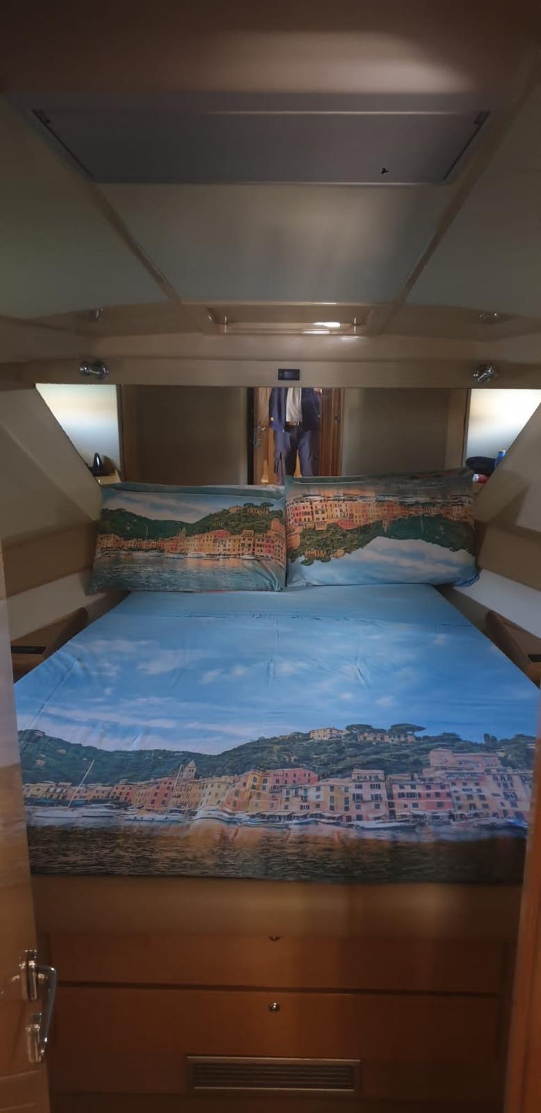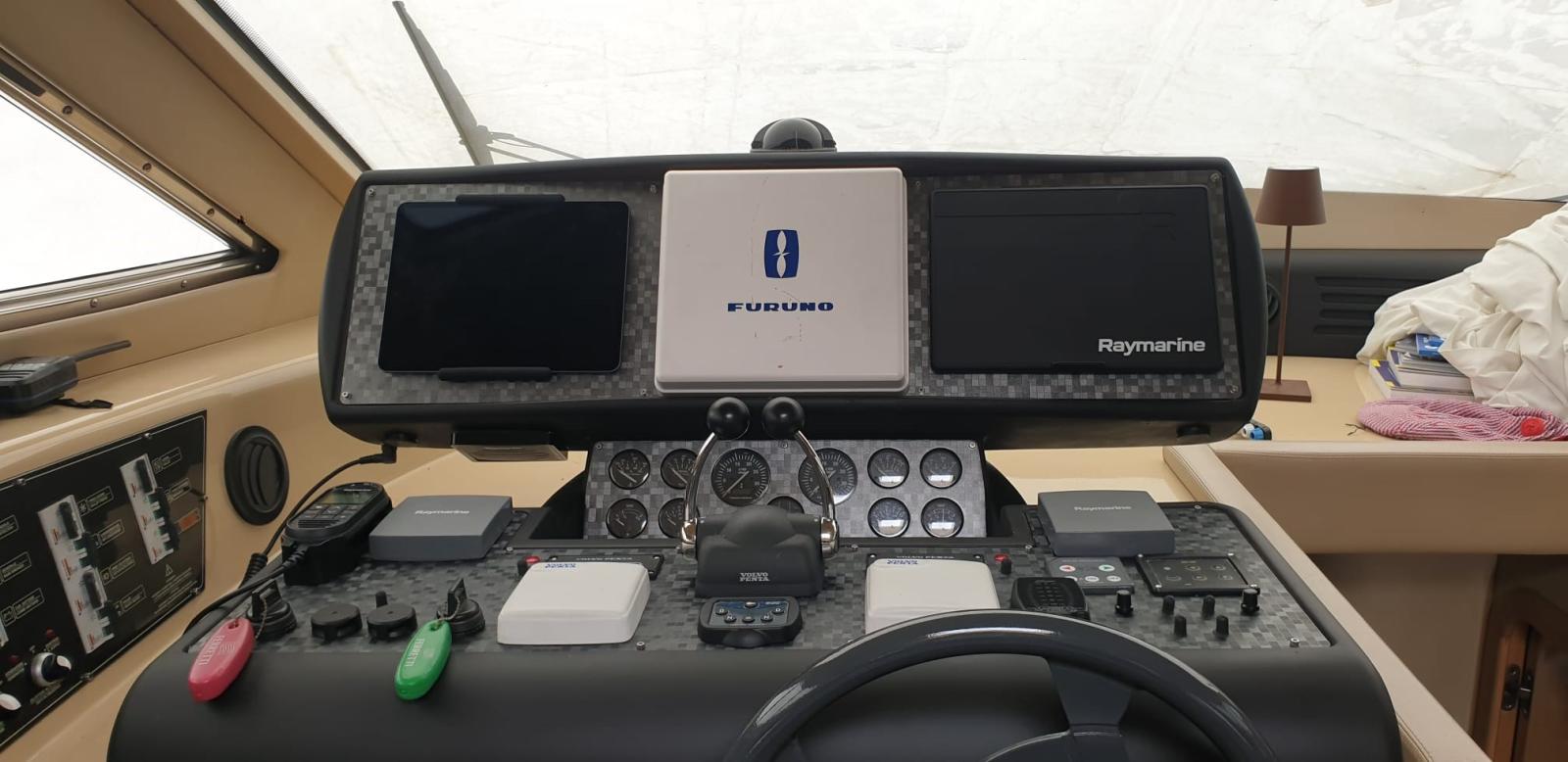 FERRETTI 460 of 2004 with VOLVO PENTA TAM 075P 353KW REFITTING WORKS 2024 Installation of Idromar 130 lt/h watermaker, Replacement of generator battery charger, Installation of Hikvision on-board cameras, Installation of new cockpit, fly and dinette fusion audio system, Installation of new kitchen refrigerator, Repainting of the instrument panel Complete replacement of the instrument panel panels of both workstations including disassembly and rewiring of the entire electrical components, Installation of new Raymarine AXIOM 12 GPS bridge and flybridge station, Restoration of teak aft cockpit, Replacement of teak hydraulic gangway Polishing of entire boat, Restoration of electro-hydraulic ladder, Extraordinary maintenance of Volvo Penta workshop engines, Maintenance of generator set, Restoration of internal carpet, On-board accessories, soap dishes, toilet brushes, Restoration of air conditioning board cabin crew accommodation Reset of air conditioning board starboard cabin, Raymarine VHF bridge and fly station with wi-fi, Moorings, ropes and fenders, Overhauled 12-seater safety raft, On-board equipment over 12 miles, Internal and external LED relamping, Compressed air system, 4G Wi-Fi router