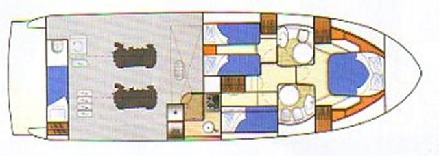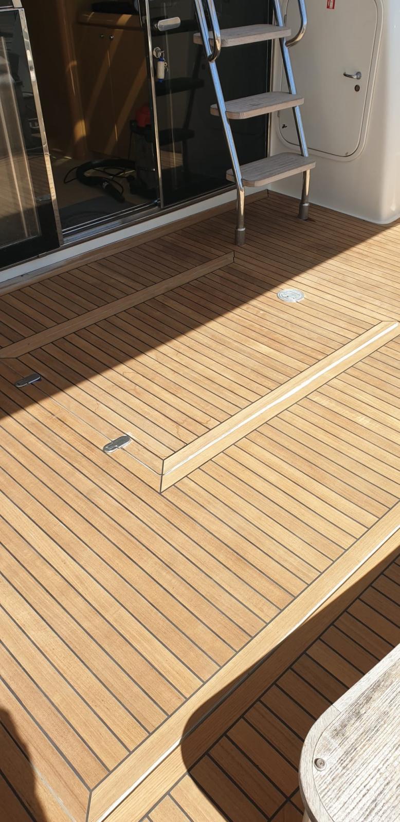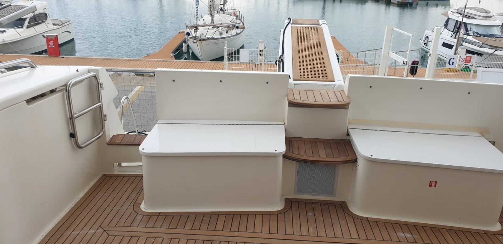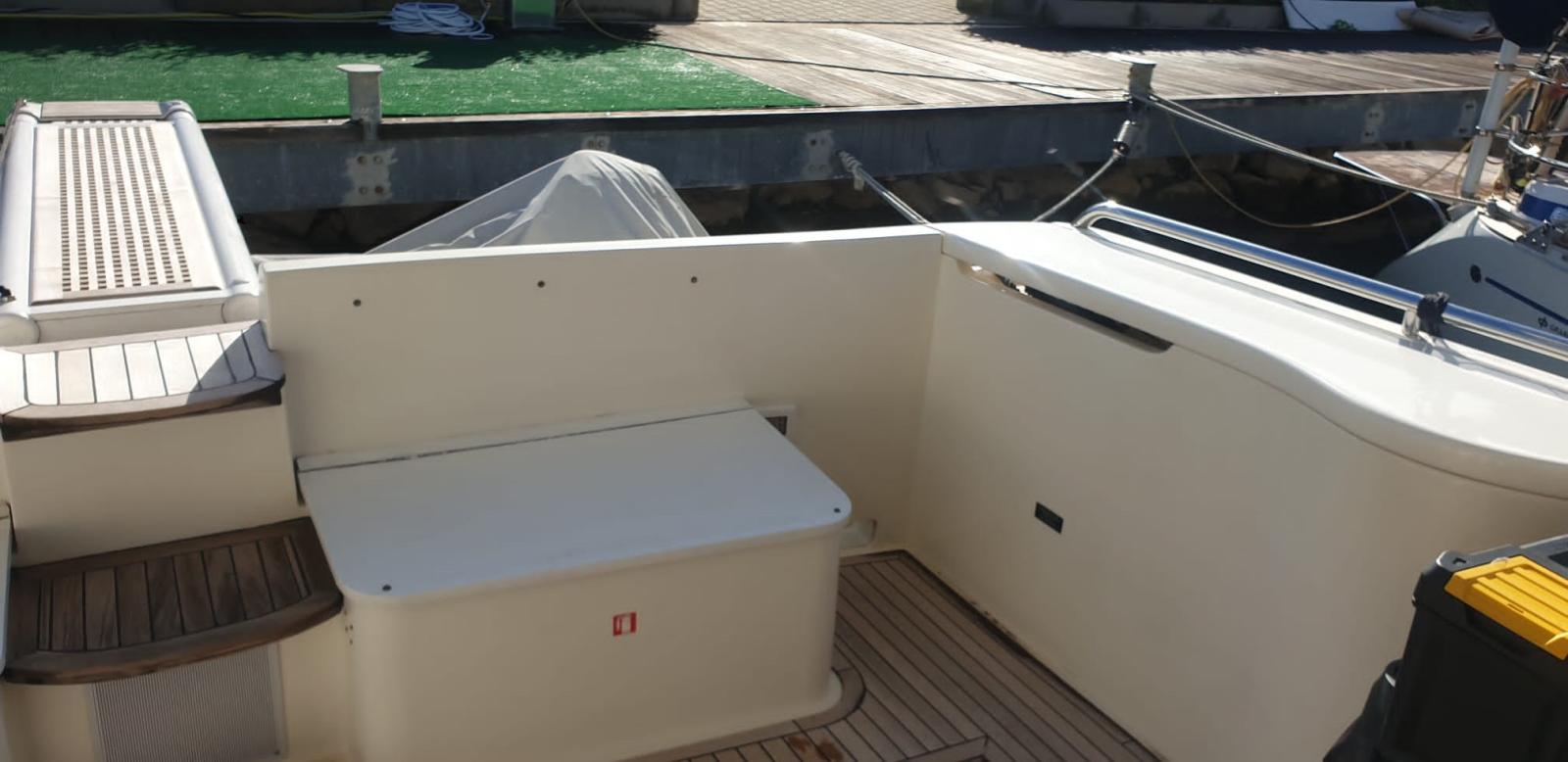 Engine Alarm, Water pressure pump, Deck Shower, Twin Steering, Hydraulic Flaps (N°2), Gangway, Platform, Automatic Bilge Pump, Entry door, Teak Cockpit, Shorepower connector, Voltage Rectifier, Electric Windlass, swimming ladder, Tender (280 ARIMAR MOTORE 6HP).