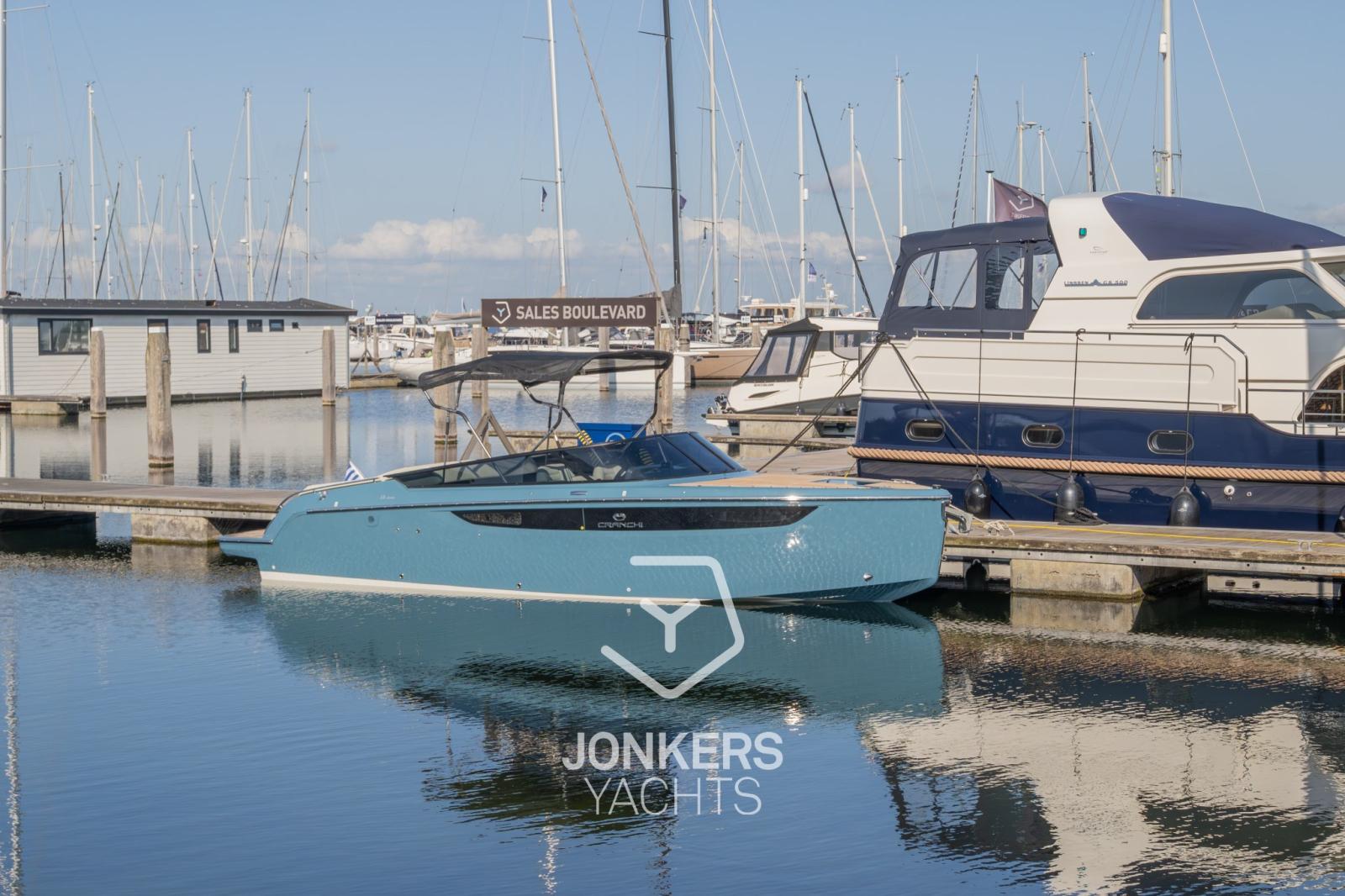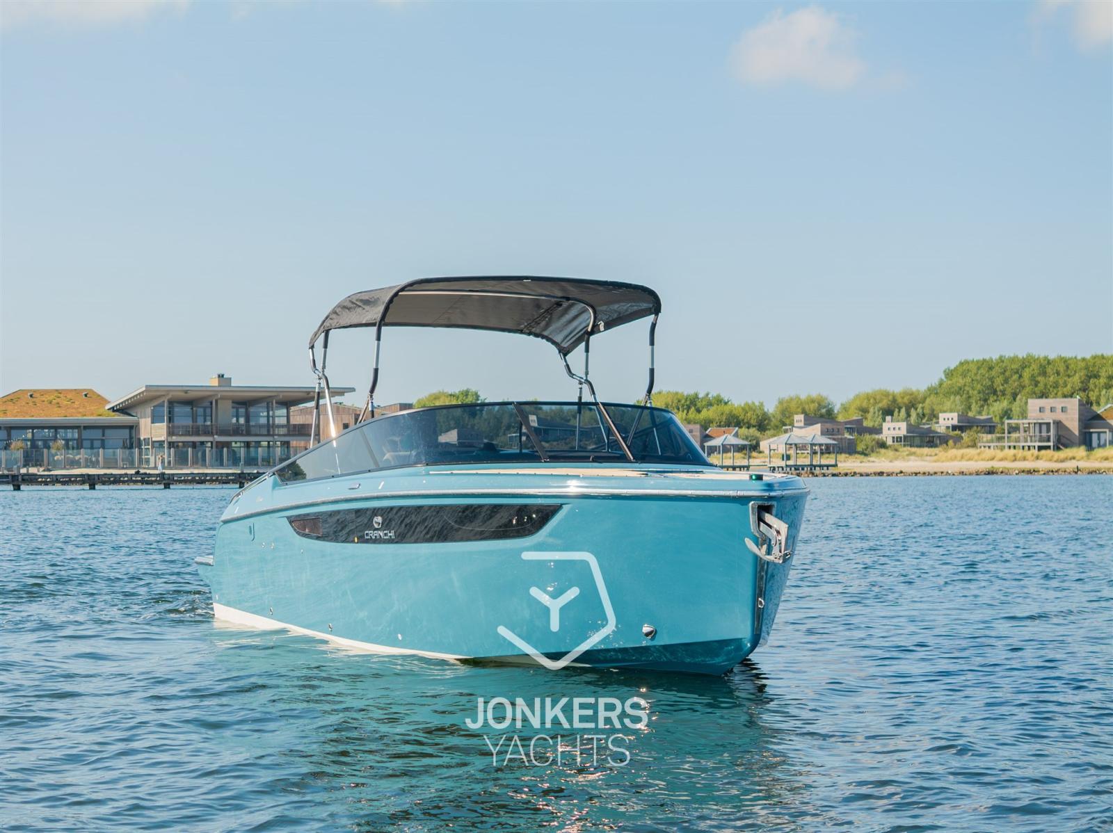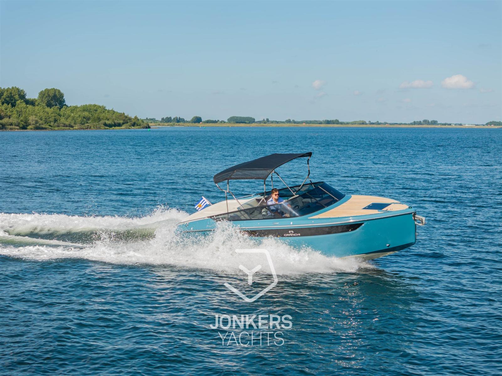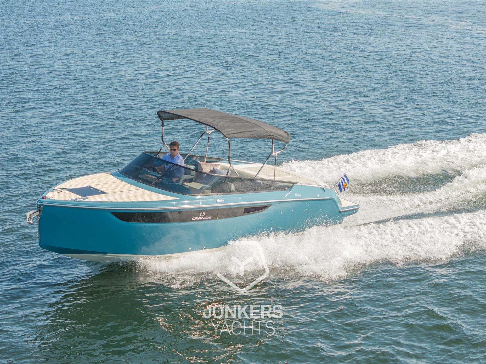 This Cranchi E26 Classic is equipped in the special hull colour "Amalfi Blue" and has a Silvertex Cream upholstery.