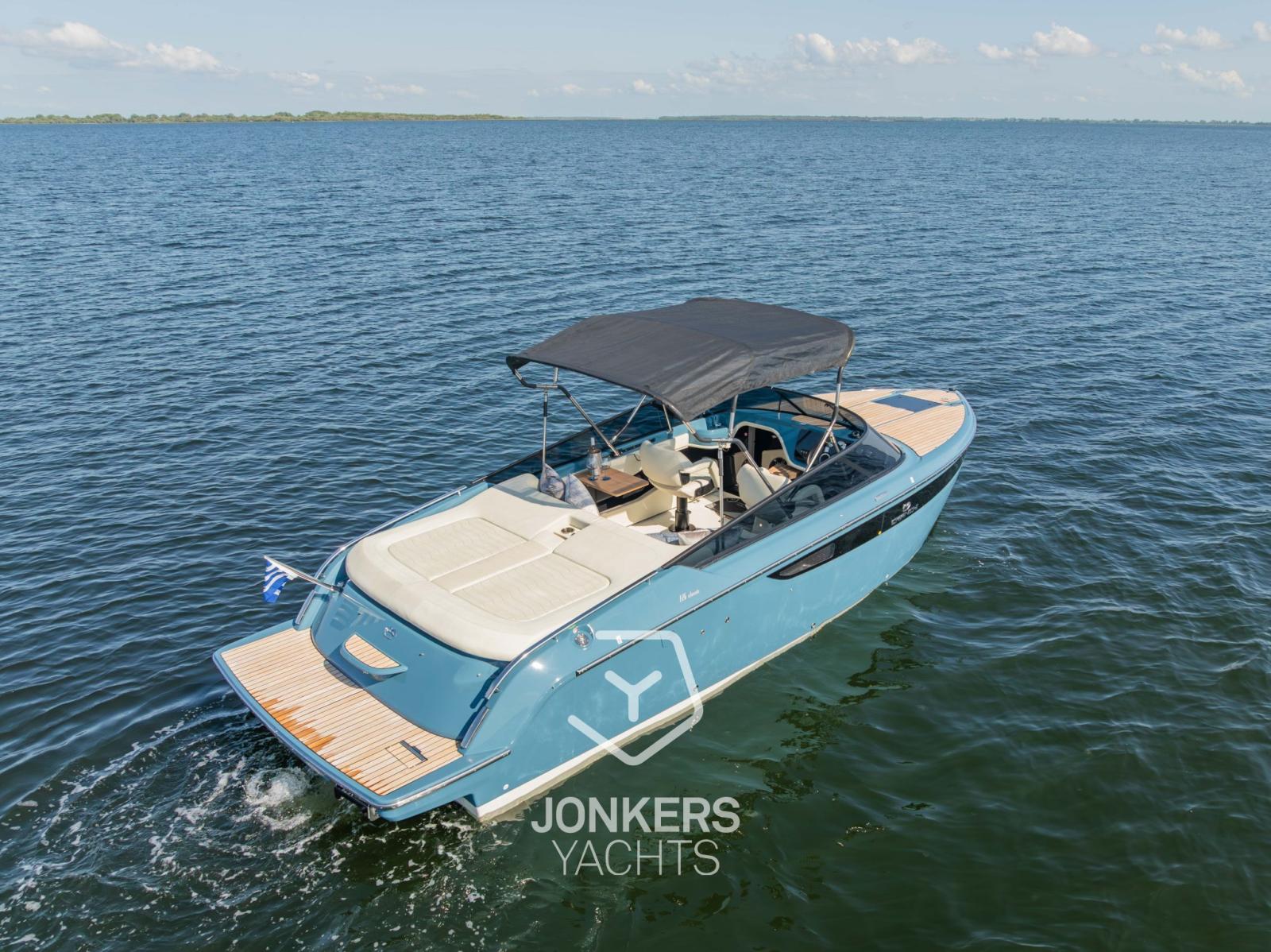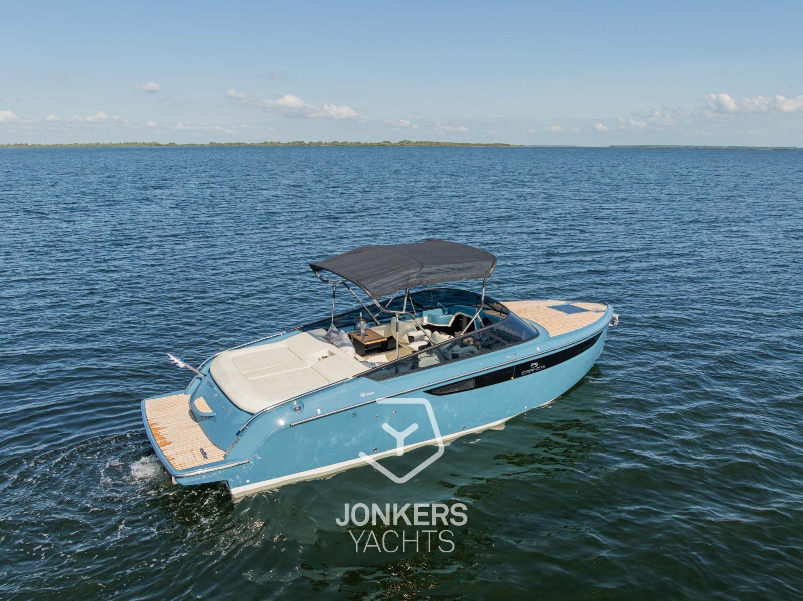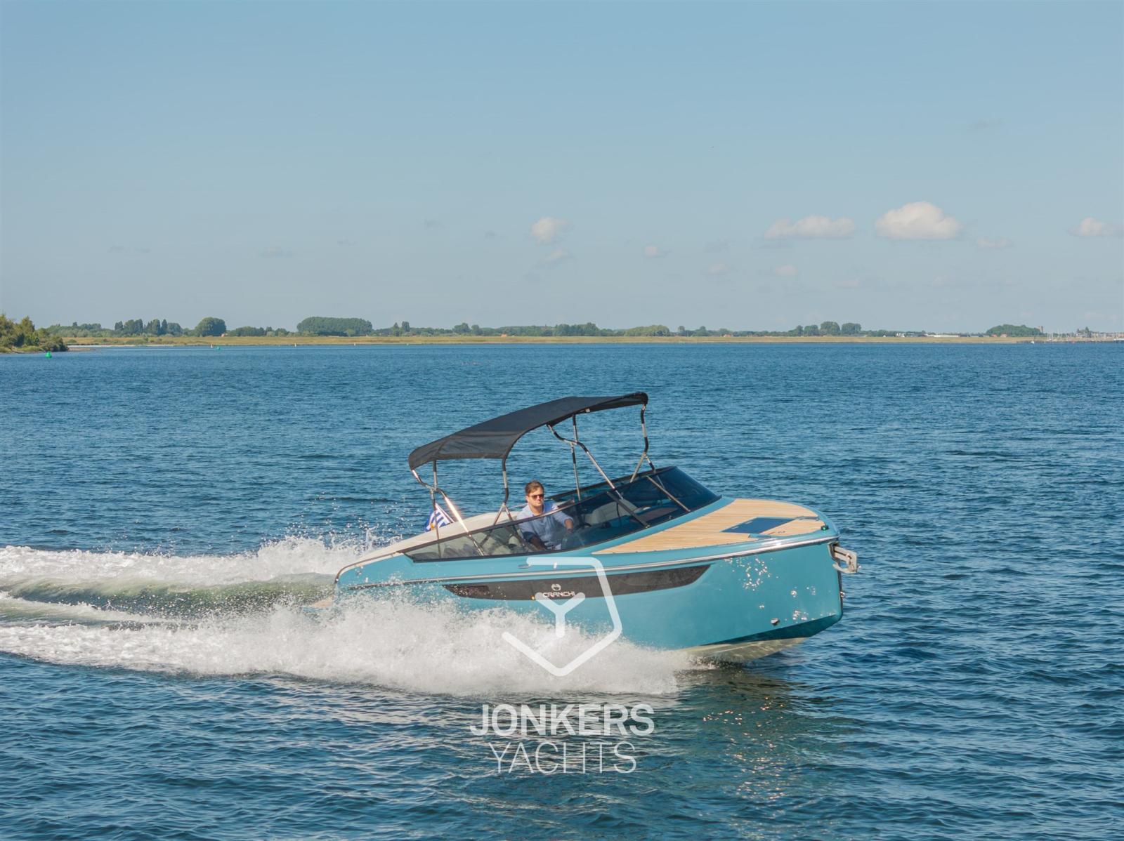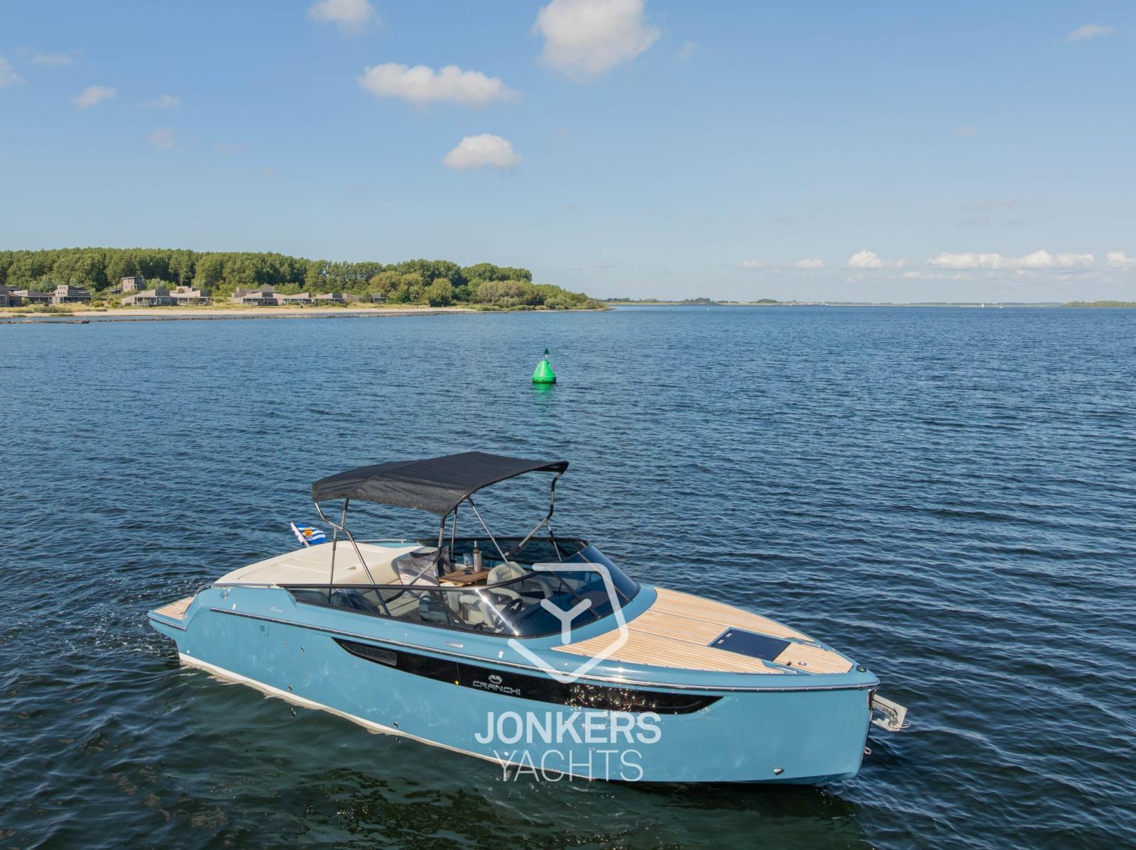 This Cranchi E26 Classic is equipped in the special hull colour "Amalfi Blue" and has a Silvertex Cream upholstery.