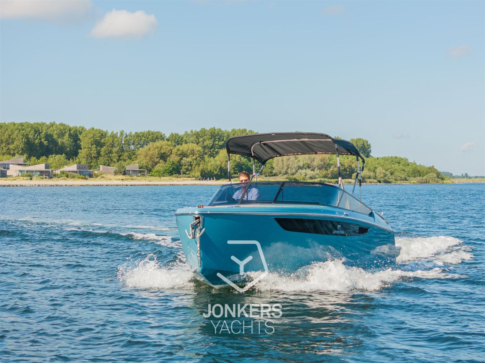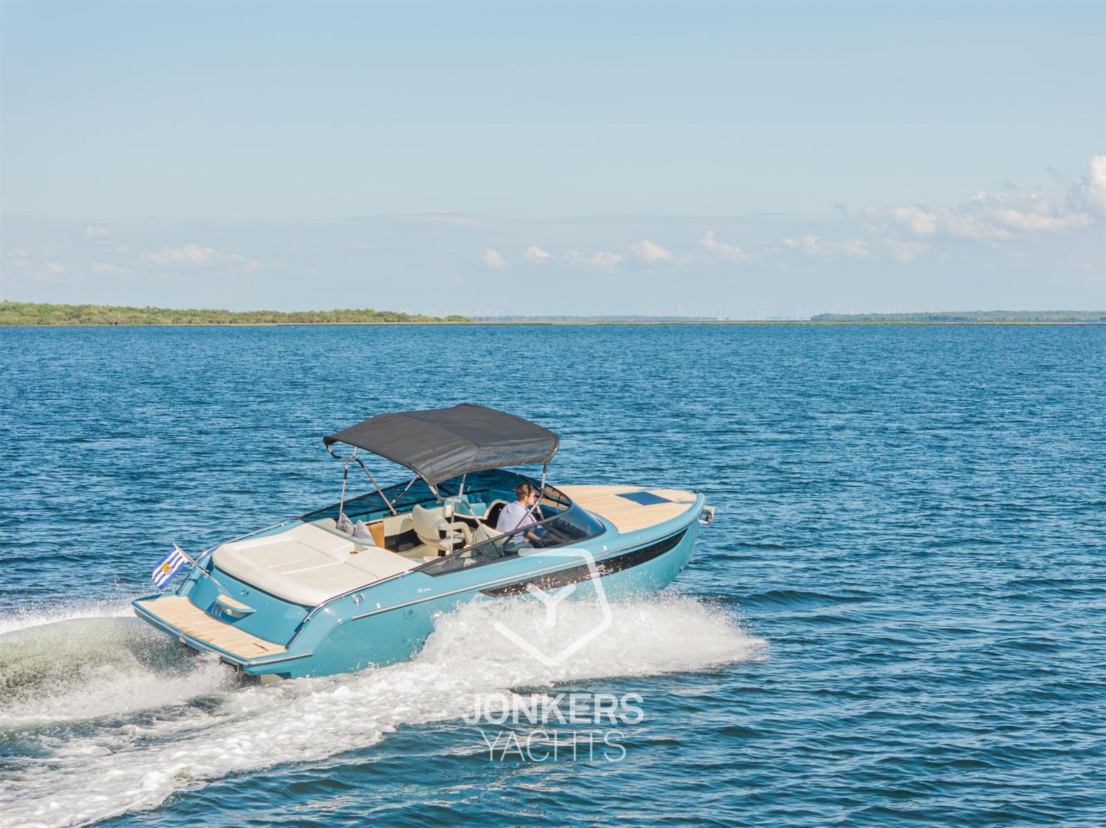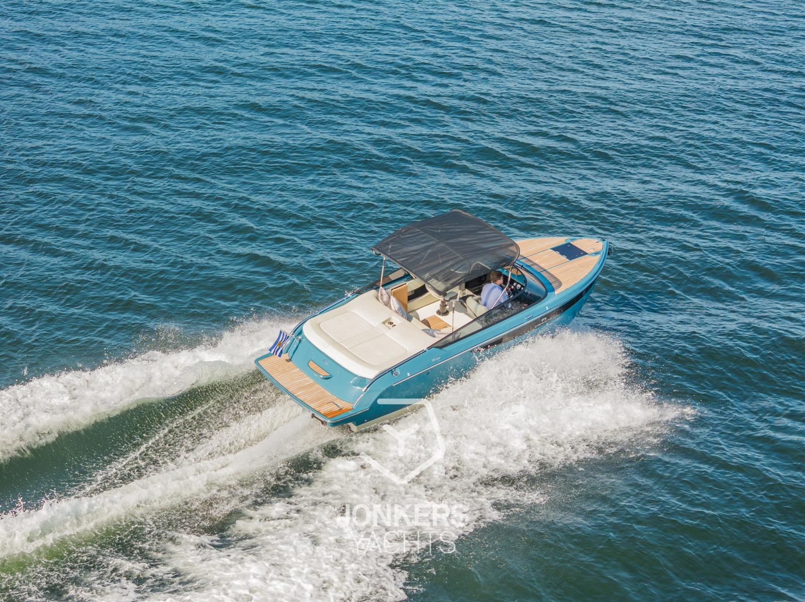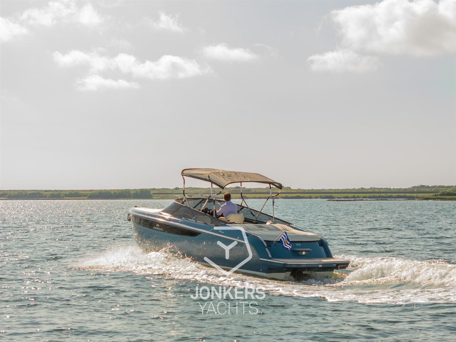 This Cranchi E26 Classic is equipped in the special hull colour "Amalfi Blue" and has a Silvertex Cream upholstery.
