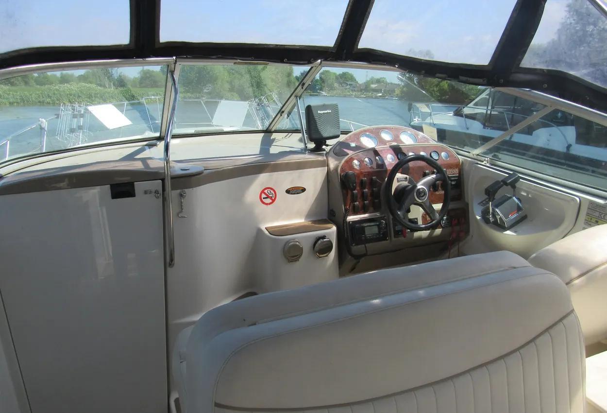 Boat OverviewModel: Maxum 2800 SCREngines: Twin Mercruiser 4.3L 190hp petrol enginesLast Engine and Drive Service: January 2023Boat Safety Certificate Valid Until: September 2024Current Price: £32,995 (reduced from £47,950 in January 2024)Manufacturer Provided DescriptionThe Maxum 2800 SCR helm includes:Burl grain instrument panelVHF radioDepth finderDanforth compassThe cockpit lounge features:A coolerA removable tableDistinctive elliptical portlights invite the sun and breezes into the main cabin. The molded cabin entry with sliding cap provides easy access to the bright and airy cabin. The radar arch adds function to style with lighting and sound system speakers built in. Galley appliances are selected with quality, ease of use, and efficient operation in mind. The galley offers:Two-burner stoveRefrigeratorThe head was planned to provide optimum lighting and maximum space. Stereo speakers are placed for ultimate sound quality.Asking Price: Reduced from £39,995 in July 2024 - PRICED TO SELL!!