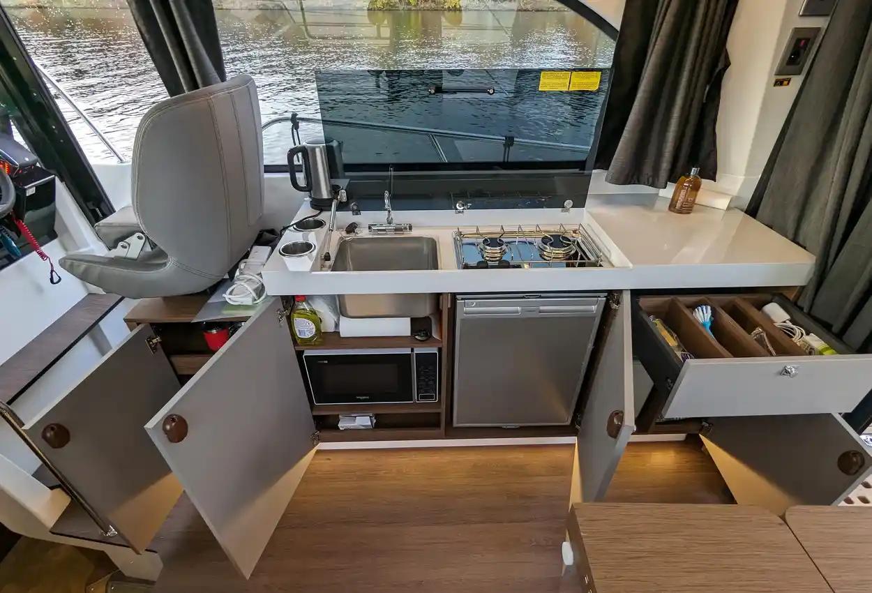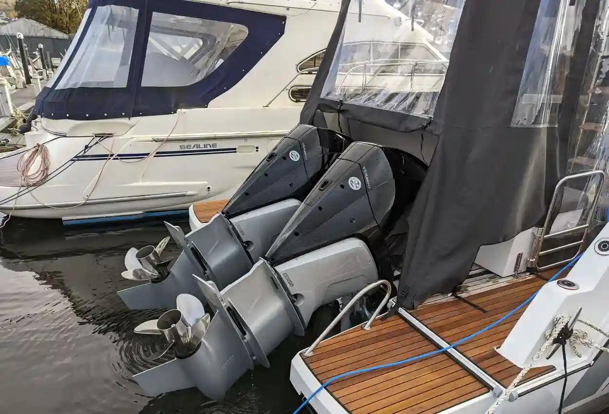 This 2023 model year Beneteau Antares 11 Fly is equipped with 2x Mercury V8 300XXL outboard engines, which still have warranty from new. It features a great specification including: