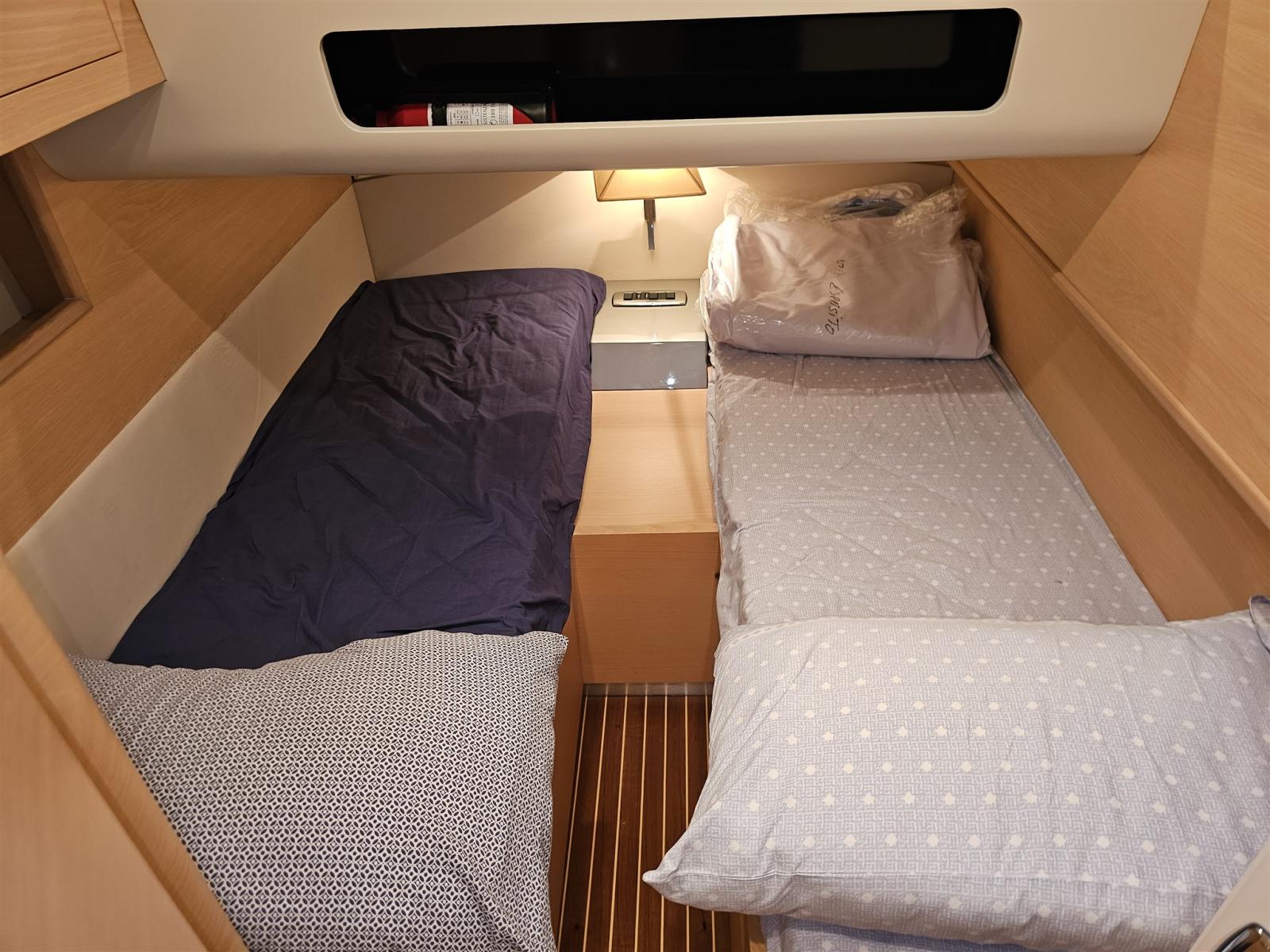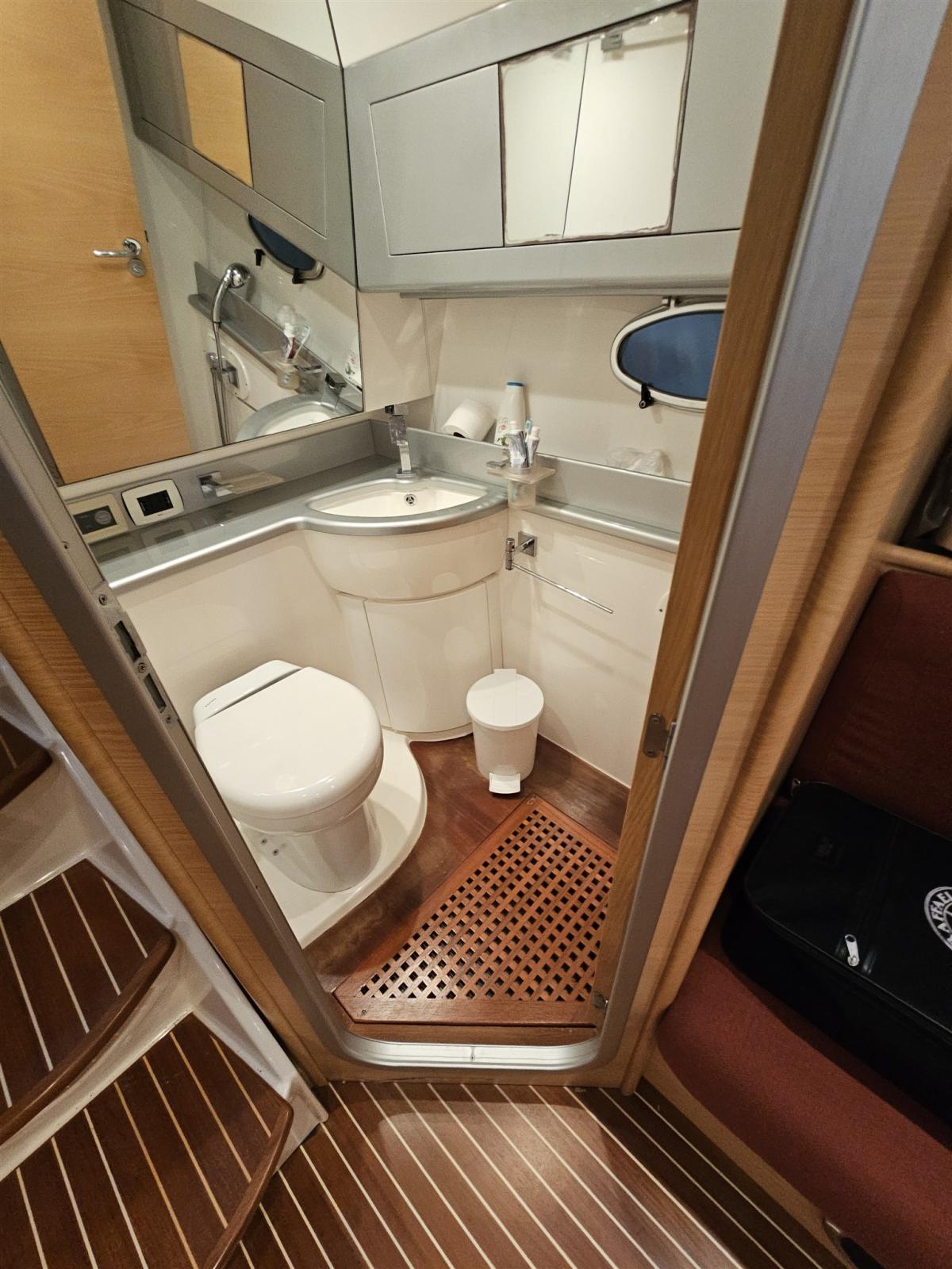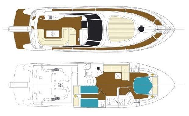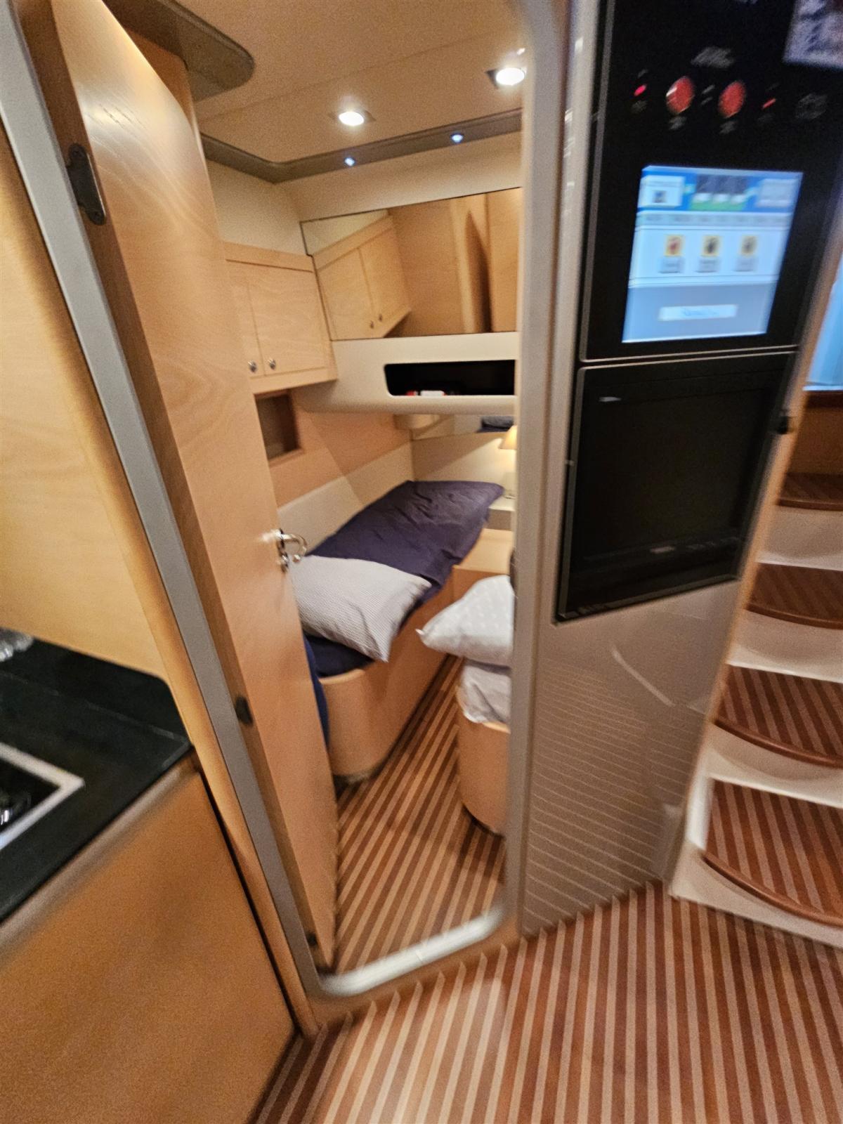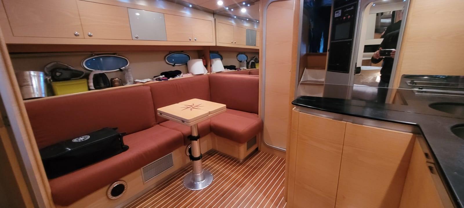 Engine Alarm, Water pressure pump, 4 Batteries, Deck Shower, Electric Flaps, Fire Extinguishing System, Flaps Indicators, Courtesy Lights, Gangway, Platform, Automatic Bilge Pump, Teak Cockpit, Shorepower connector, Rollbar, Electric Windlass, swimming ladder, Tender.