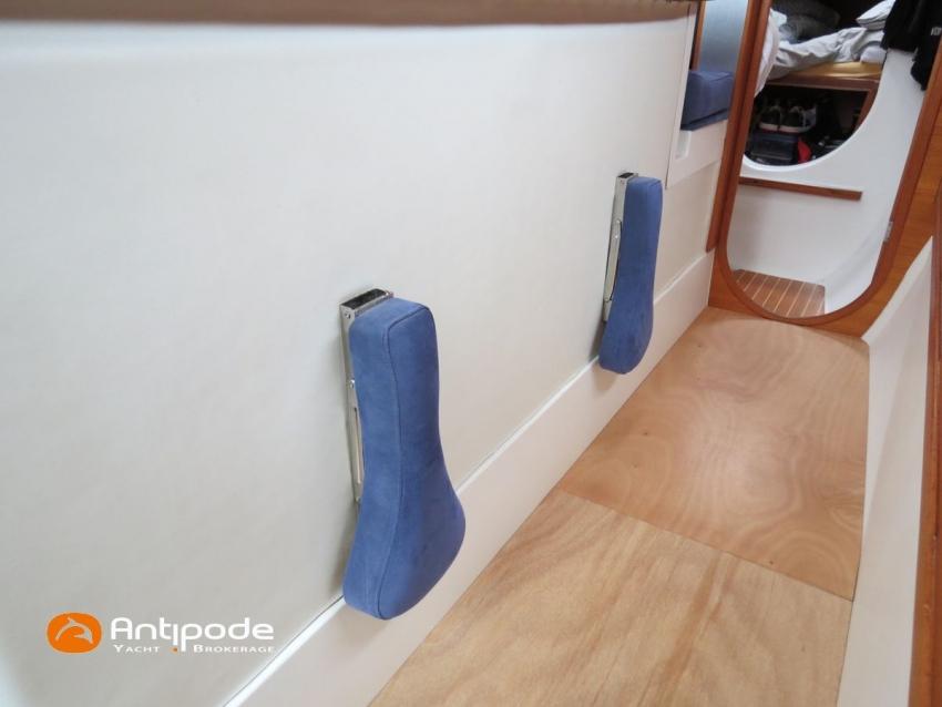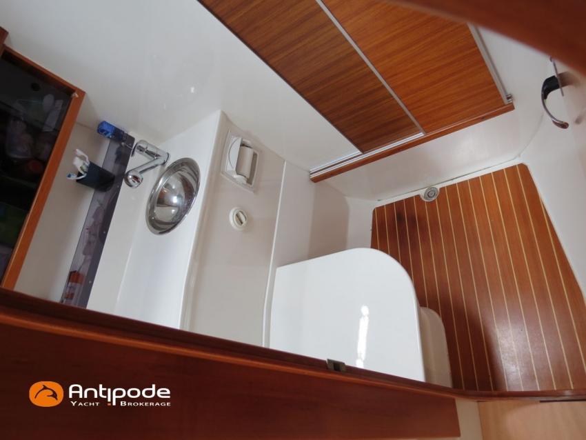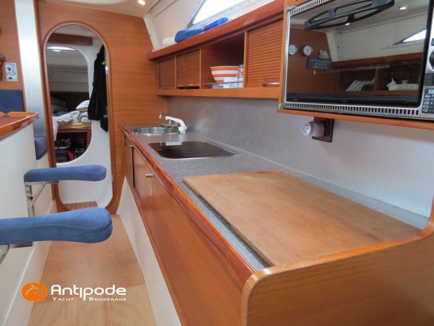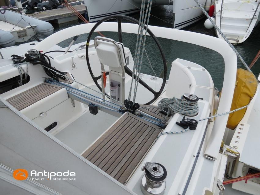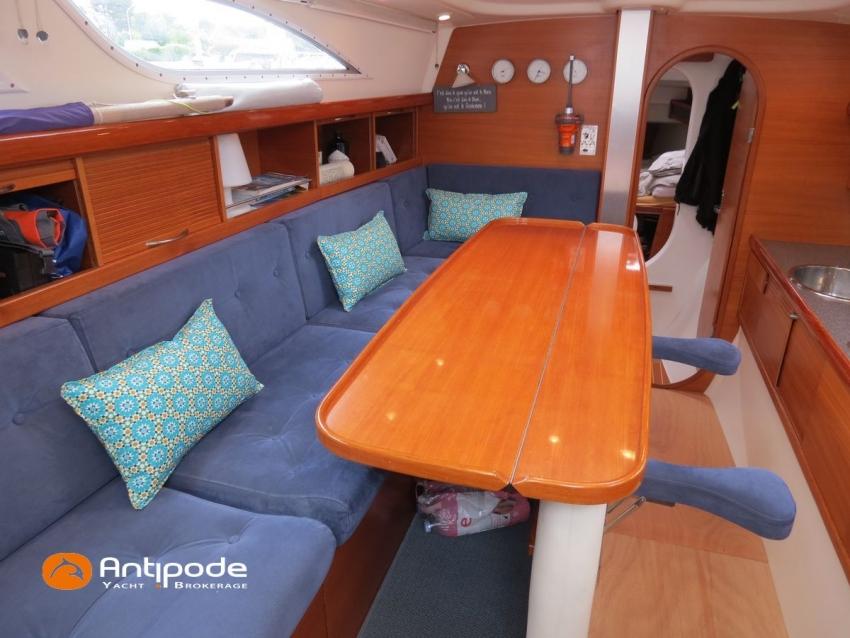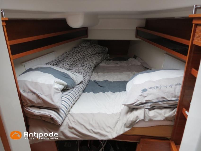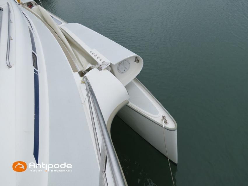 DRAGONFLY 35, 2007, VOLVO D1-30HP (REPLACED in 2021) 28 hp (221 hrs), retractable bow thruster, Waterstays - 2017, Trampolines replaced 2025, Lifting straps, 2 electric genoa winches (electrification 2021) - Andersen 46, Carbon steering wheel - Jefa, Winter covering (center hull), Electric windlass - Quick, Aluminium boom 2020, Stainless steel cable standing rigging - 2017, Square head full batten main sail - Elvstrom Epex 2020, Main sail mast track + batten cars, Furling genoa - Elvstrom Epex 2020, Genoa anti-UV protection cover - 2020, Asymmetric spinnaker - 2007, Furlable gennaker 52 sqm - X VOILES 2020, Gennaker furler - facnor FX 2500 2020, Raymarine in board autopilot - EVO P70 S 2023, Navigation system 4 displays - Raymarine I70 S 2023, GPS and chartplotter (cockpit) - Raymarine AXIOM 7 2023, Electronic navigation charts - Navionnics 2023, AIS Transponder CLASS B (emission and reception), VHF at chart table - Standard Horizon 2021, VHF Multiplexer, Wifi Interface - Raymarine, Distress beacon (bat.exp. 2029) - Mc Murdo G8 2020, 220 V shore power + battery charger - victron Bluesmart 30 amp 2023, Service batteries - 2 X 100 amp LITHIUM 2021, 12 V to 220 V Inverter - 2023, Heating system EBERSPACER 3 outlets, Solar panels - 50 W X 3, Leds interior lights (saloon) - 2021, Liferaft (next service due 2026) - Seasafe 4 p. < 24 h 2023, Copper coat antifouling 2025, Located Brittany. For more information or to make an appointment for a visit, contact : Jérôme Le Joubioux +33 6 07 45 71 73 - jerome@antipode-yachts.com