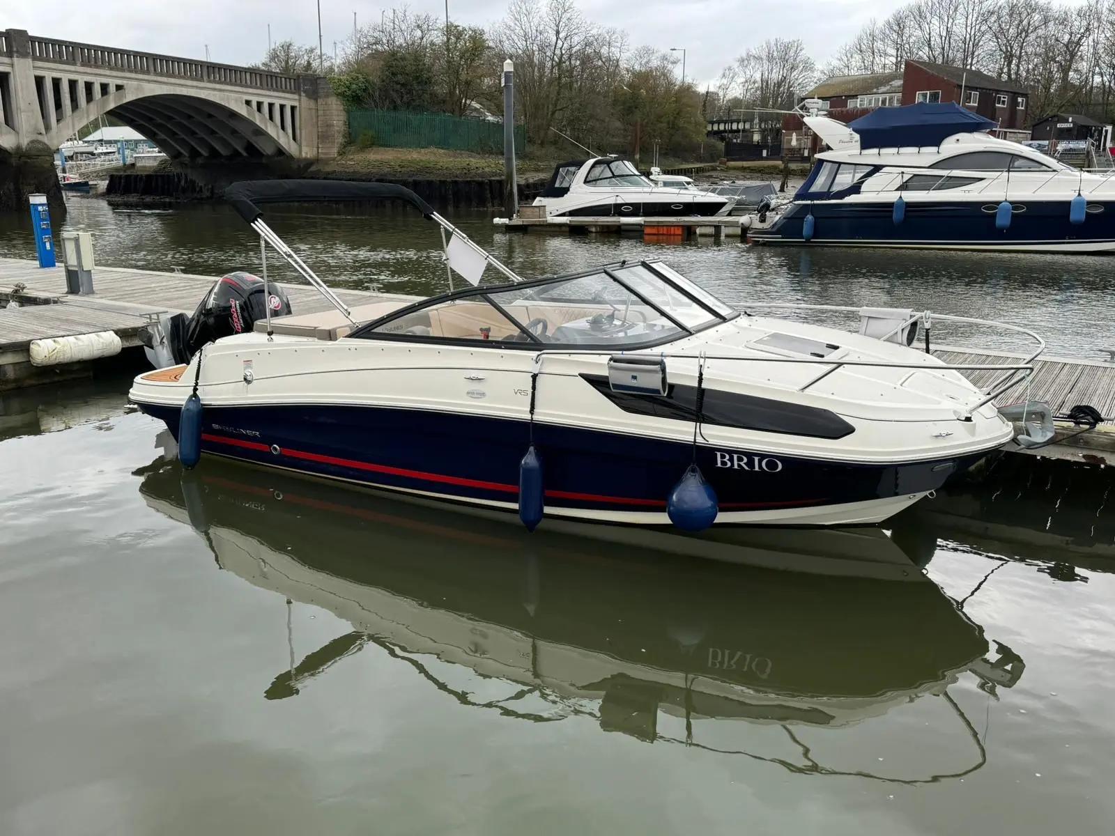 This 2021 Bayliner VR5 Cuddy Cabin is powered by a Mercury 115 Hp PRO XS 4 Stroke outboard engine. It is a very clean example of this popular Bayliner model, featuring a black hull band and red bootstripe with matching canvas. The boat has had two owners and has been very well cared for.