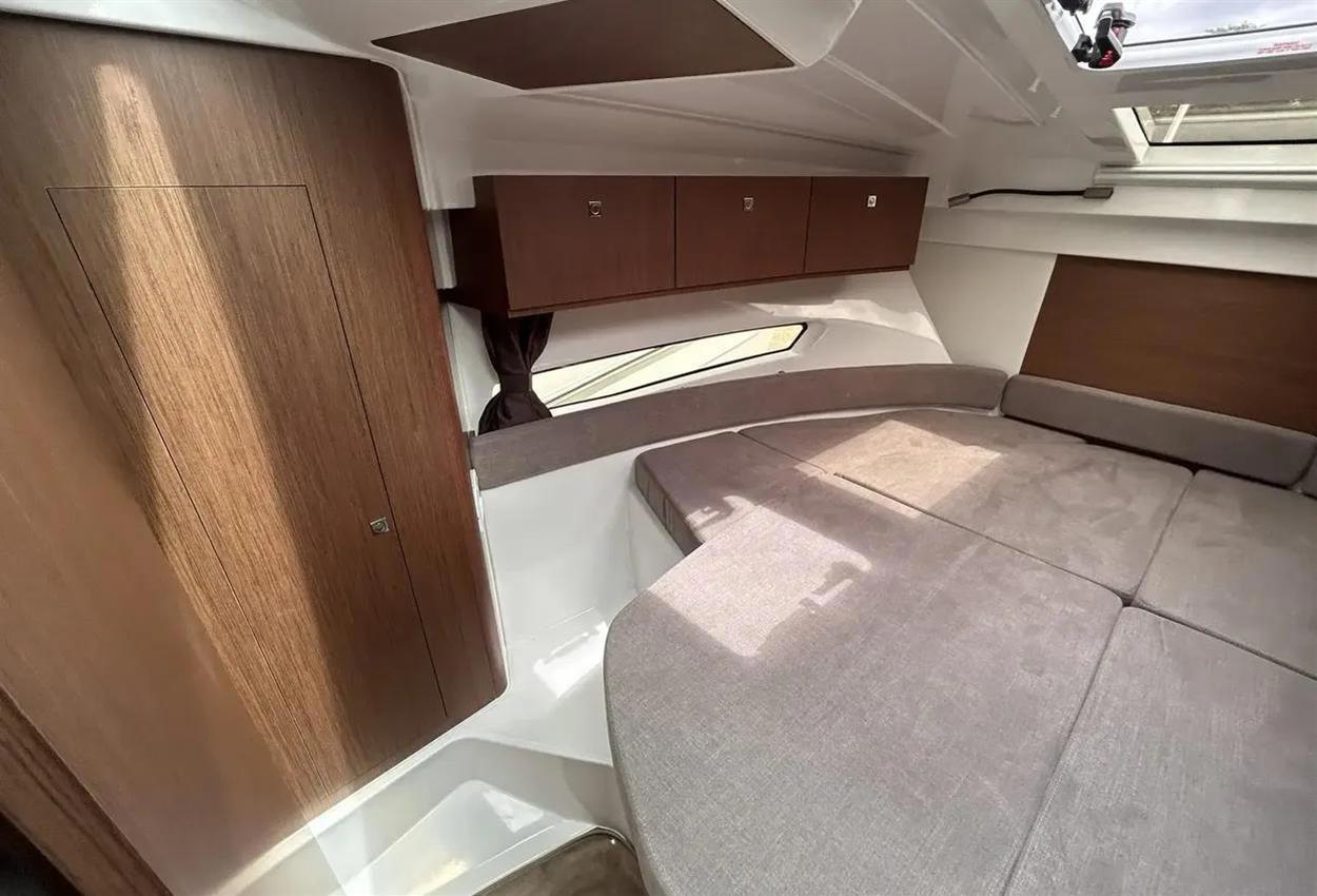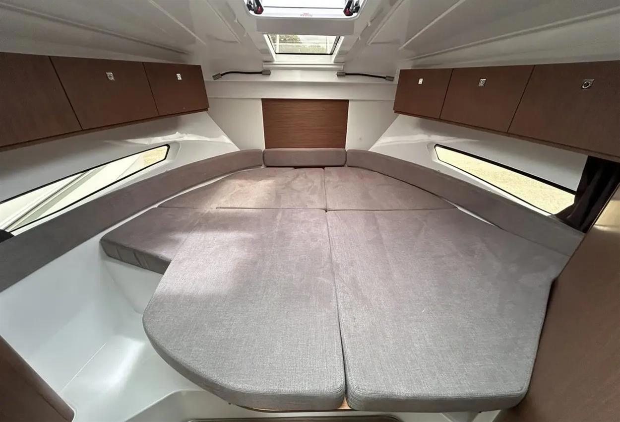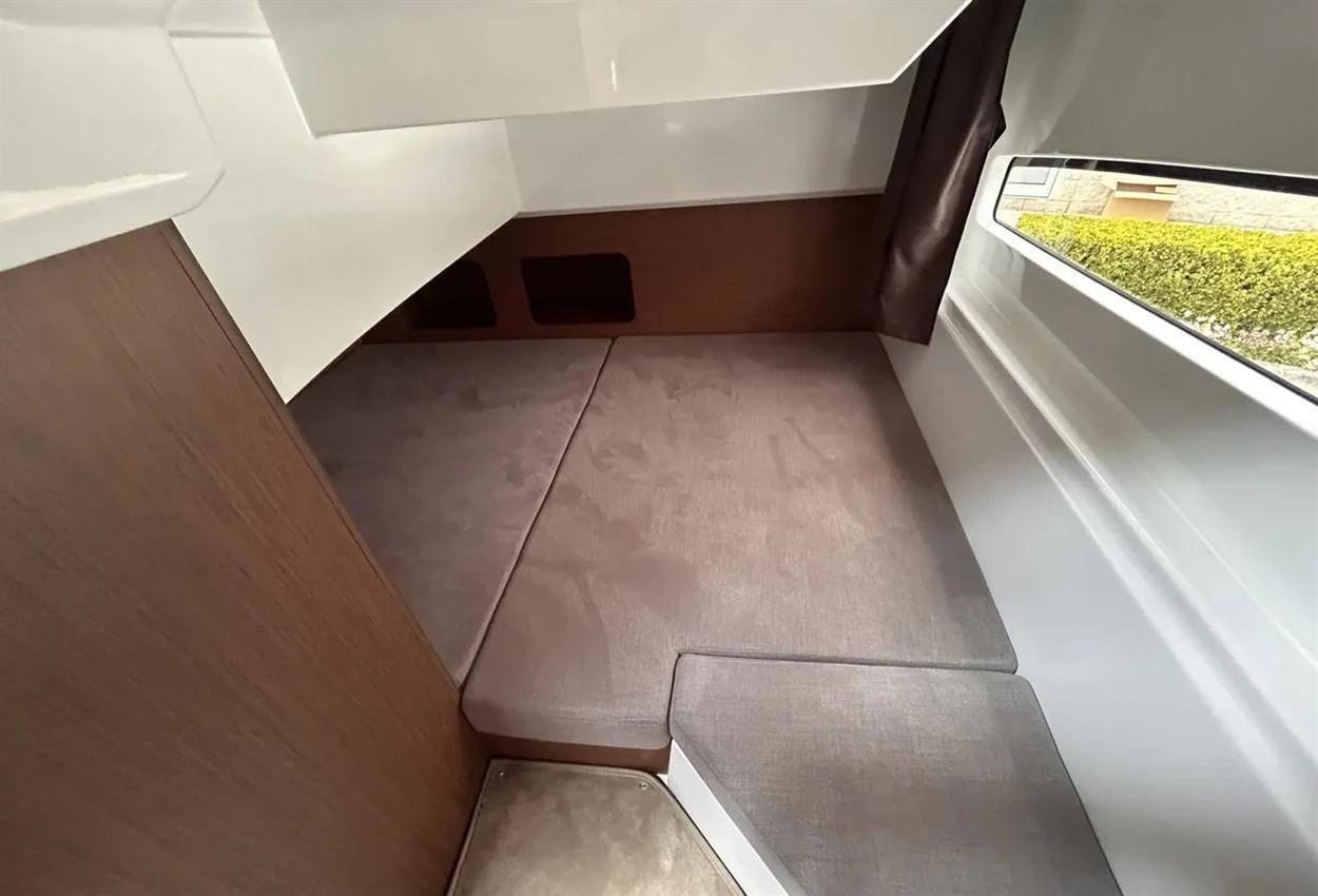 Beneteau Antares 9 The Ultimate Weekender: With an innate sense of detail and comfort, the Antares 9 is an invitation to spend more time at sea. Modern and stylish, she preserves the traditional elegance of an established range. Autonomy, habitability, panache she has everything to make short cruising a great experience. Performance With her Airstep hull, the Antares 9 cuts gently through the waves offering a comfortable ride and safe navigation. With U-shaped seats that convert to sunbathing areas, her attractive spacious cockpit (1.53 x 2.40 m) is a great place to relax with friends. With up to 2 x 200 hp power, the Antares 9 has the latest technological developments in terms of outboard engines. Accommodations Two separate cabins, one galley and a cleverly fitted shower room make the Antares 9 the ideal boat for cruises with family and friends! With wraparound windows, the pilothouse has a panoramic view and is incredibly bright. There is a real feeling of space and the lounge is cleverly organized with a co-pilot seat that swings round. This means you can sit facing the sea or facing the chart table. Value Total Boat Value: PS201,824 // STOCK BOAT PROMO PS175,000 Included Specification Comfort trim Level: Interior table, Port side sliding window, 2nd electric wiper and washer system, Helmsman's footrest and swivel seat, 2 rod holders, Cup holders, Cockpit table, Interior curtains, Extended swim platforms, Electric windlass, Brown oak floor to wheelhouse. Fitted Galley Pack: Hob, 60L fridge, Sink and cold water system Electronics Pack Upgrade: Garmin Echomap 12 with Garmin GT21 transducer (no chart) Sound Pack Upgrade: Fusion MS-RA07N with 2x 50 w speakers Elegance upholstery upgrade Mooring & anchoring kit Cockpit saloon convertible to sunpad Bowthruster Graphite cockpit aft closing 220v water heater 25L Complete 220v system with charger LED courtesy lights Pre wiring for microwave 220v Additional berths in saloon 2x 300L fuel tank upgrade Overhead lockers in forward cabin Cabin carpets Infinity interior carpets to wheelhouse Fresh water electric toilet Zipwake trim tabs Pre-Rig Mercury Electric demisters Garmin 215 VHF Horn UK Extras Delivery ex Bates Wharf UK UK PDI & Commissioning Commissioning Kit COPPER COAT ANTI FOULING Disclaimer The Company offers the details of this vessel in good faith but cannot guarantee or warrant the accuracy of this information nor warrant the condition of the vessel. A buyer should instruct his agents, or his surveyors, to investigate such details as the buyer desires validated. This vessel is offered subject to prior sale, price change, or withdrawal without notice.