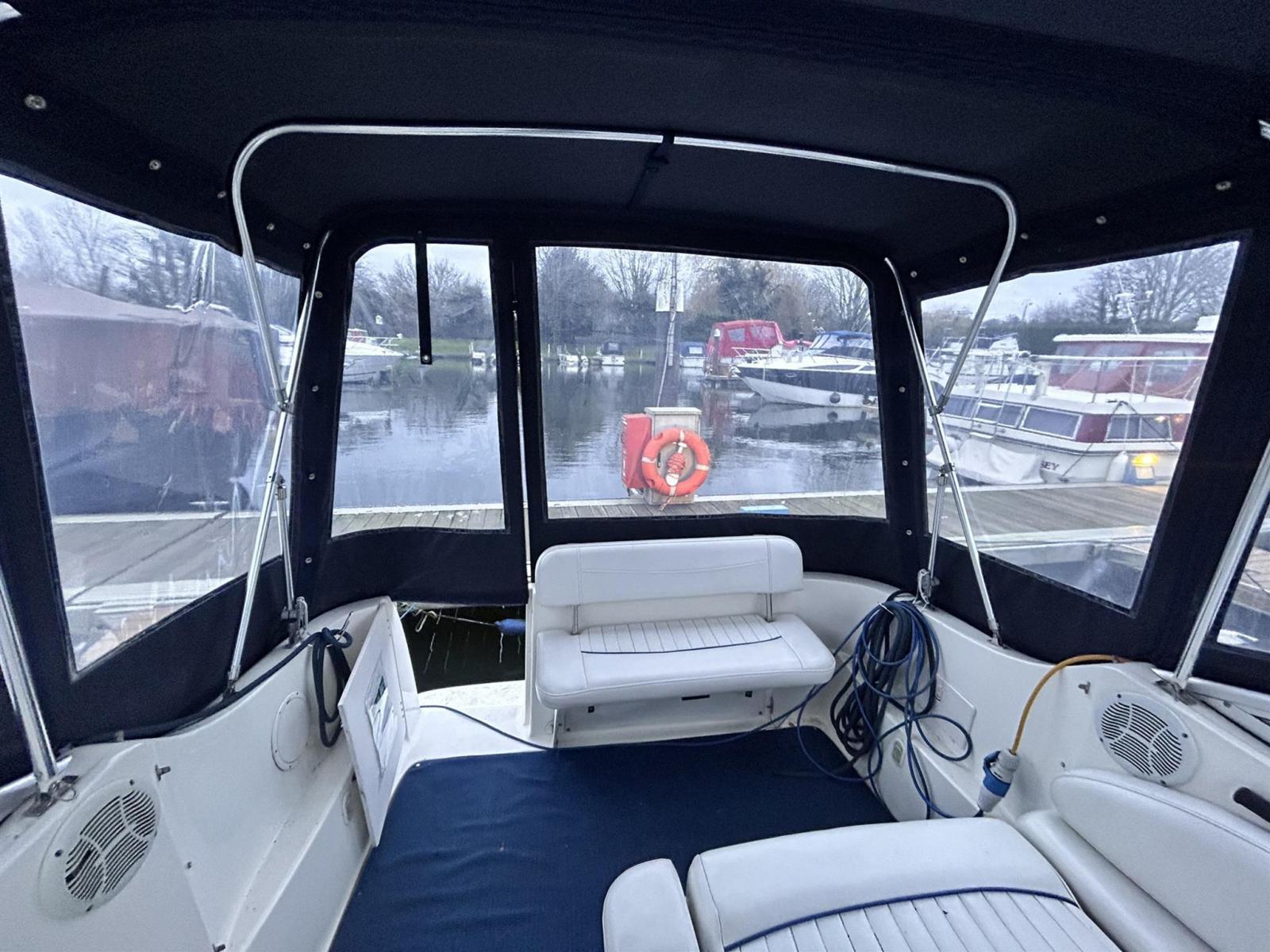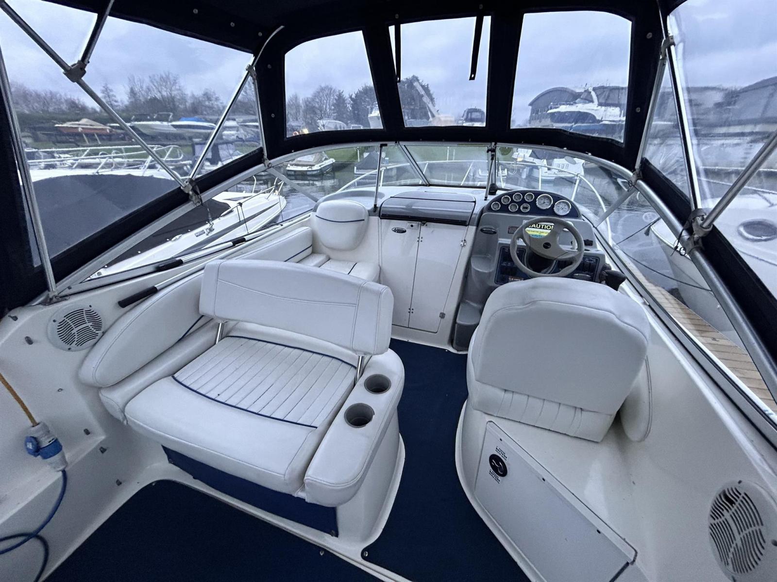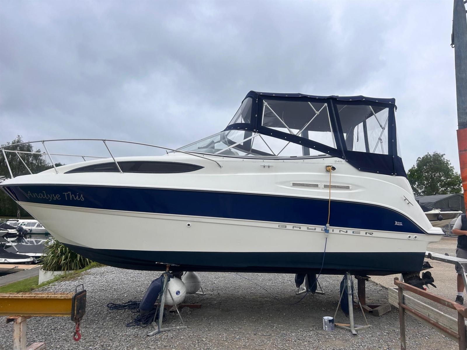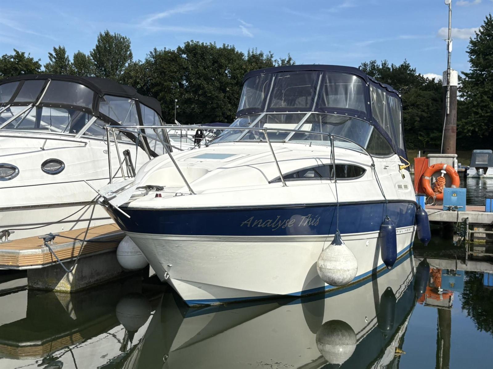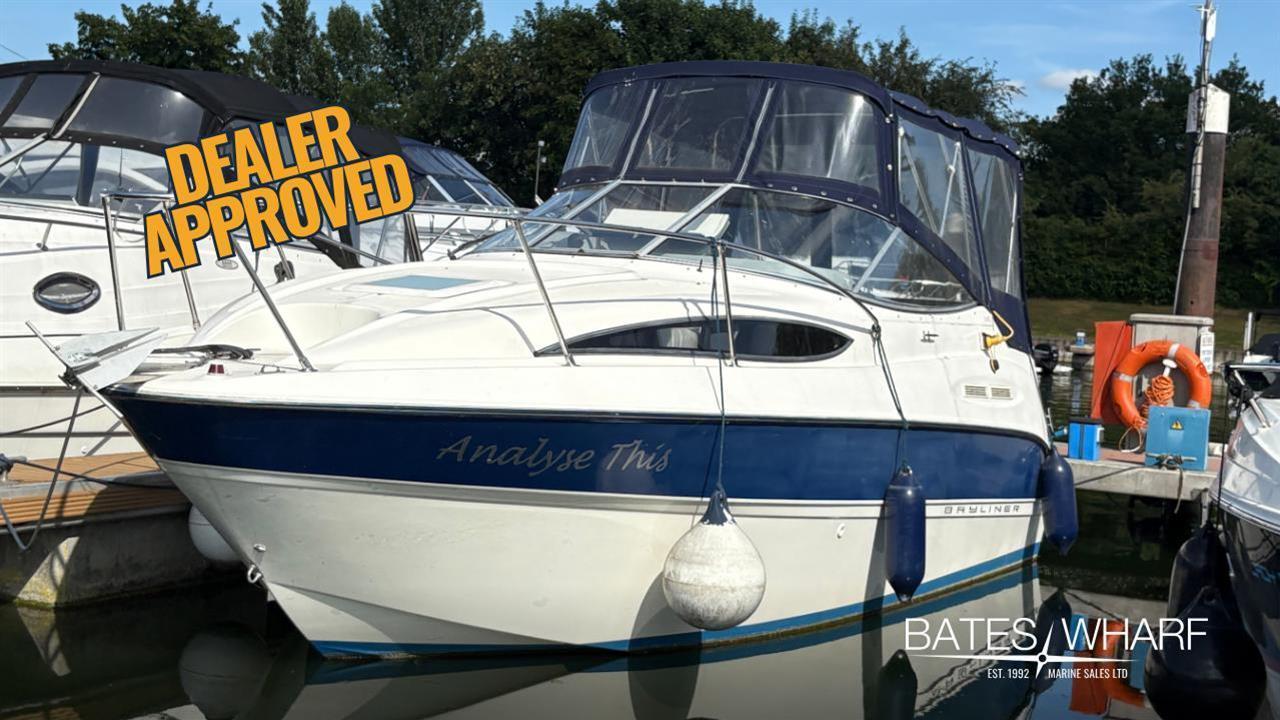 Bayliner 245 This 2004 model Bayliner 245 comes complete with Mercruiser 5.0L petrol engine. She has a Boat Safety certificate valid until February 2026. Engine and drive serviced June 2024 with full valet and re-antifoul. Lying Chertsey. Dealer approved. Features Cockpit L-shaped seating configuration converts to a sun lounger, facing forward or aft Cabin with full galley Aft berth Forward dinette that converts to a double Separate head Usage History Her current owner has used her in fresh water on the River Thames for the last 15 years and has travelled through every lock on the Thames between Lechlade and the Thames barrier! Disclaimer The Company offers the details of this vessel in good faith but cannot guarantee or warrant the accuracy of this information nor warrant the condition of the vessel. A buyer should instruct his agents, or his surveyors, to investigate such details as the buyer desires validated. This vessel is offered subject to prior sale, price change, or withdrawal without notice.