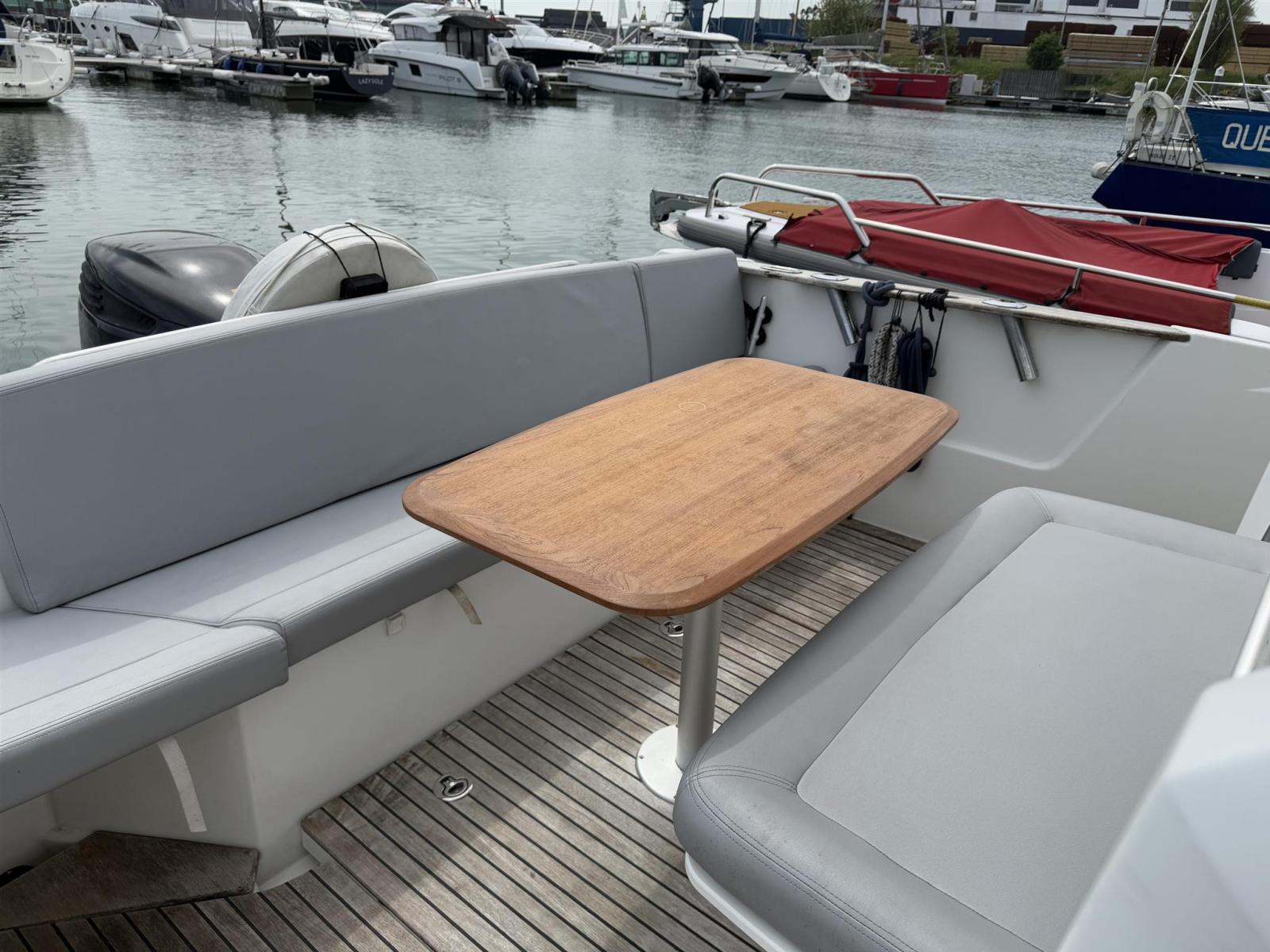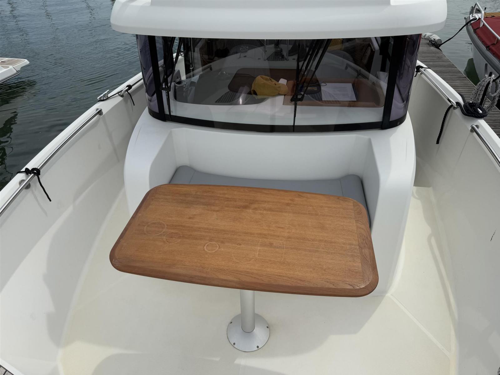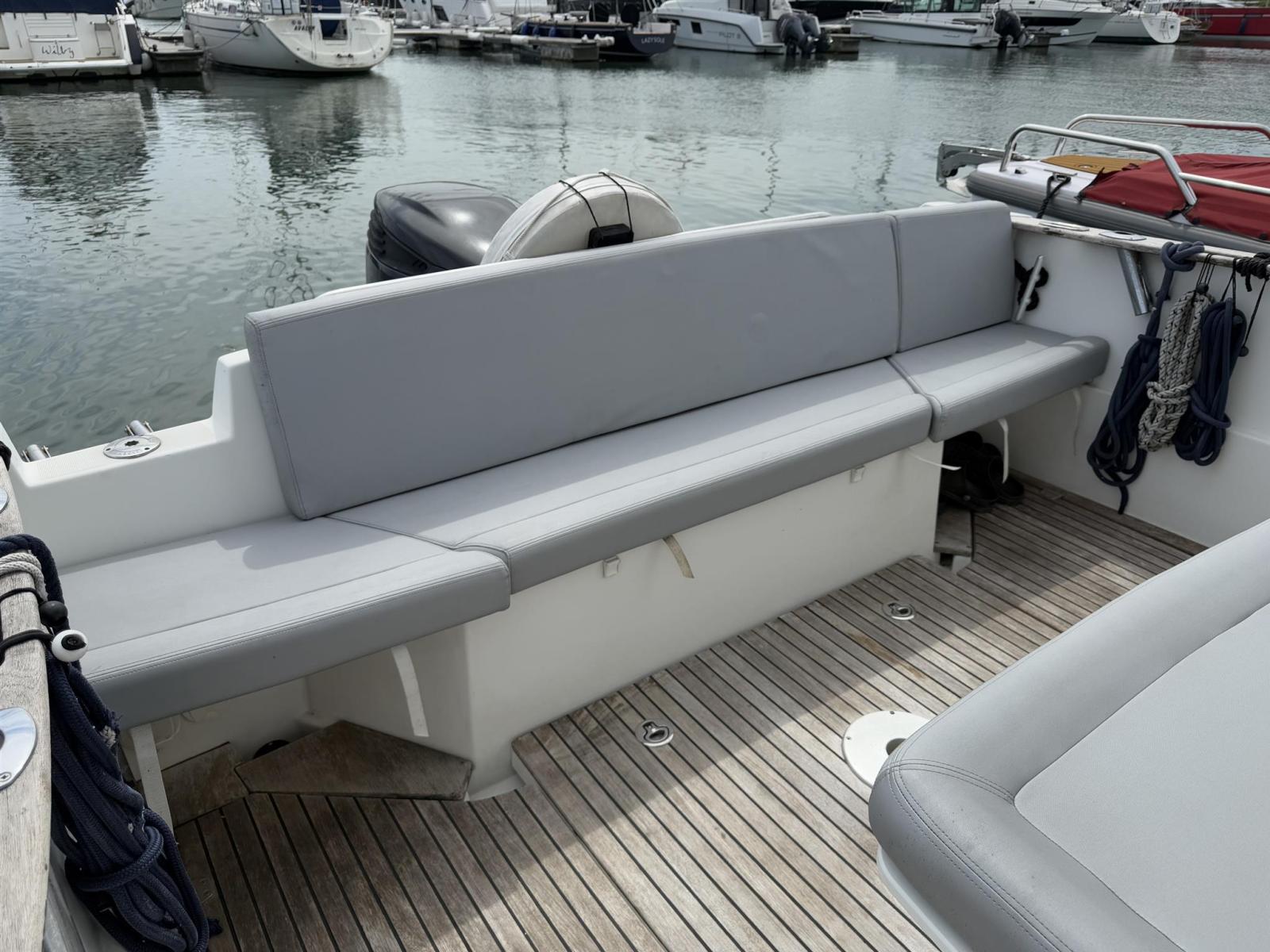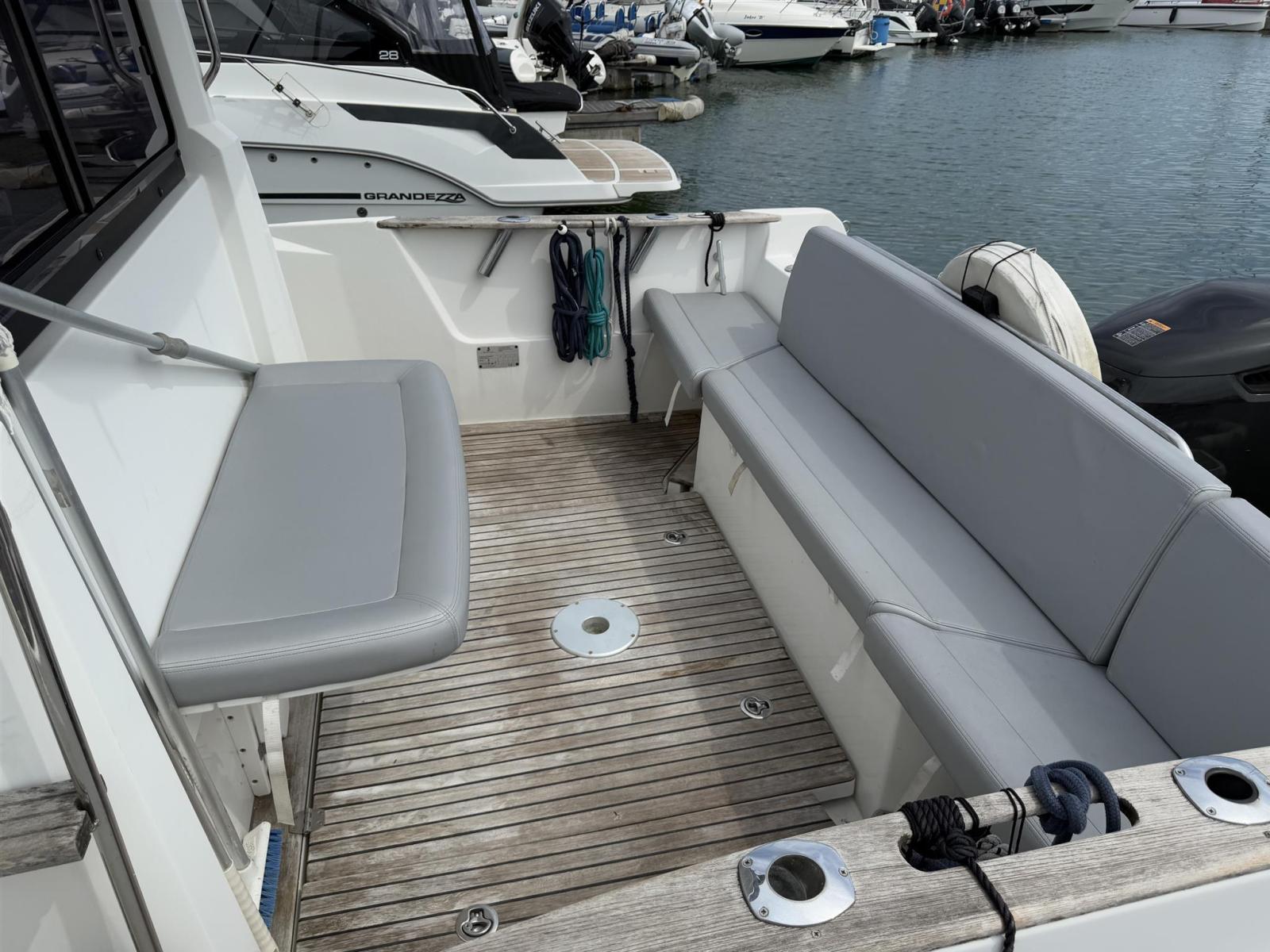 Summary Ideal for easy movement on board, access to the wheelhouse is by two side sliding doors. Inside, the Barracuda 9 reveals a really comfortable atmosphere. With a dashboard ready to receive full electronic equipment, a large forward cabin, and a shower and toilet space, it is ready to set off on any trip. Every hollow space is used as a storage locker and for stowing equipment. The two pilot and co-pilot bolster seats rotate to face the rear seat. This creates a meal area inside. Ideal for easy movement on board, access to the wheelhouse is by two side sliding doors. Inside, the Barracuda 9 reveals a really comfortable atmosphere. With a dashboard ready to receive full electronic equipment, a large forward cabin, and a shower and toilet space, it is ready to set off on any trip. Every hollow space is used as a storage locker and for stowing equipment. The two pilot and co-pilot bolster seats rotate to face the rear seat. This creates a meal area inside. EXTERIOR DESIGN The Barracuda 9's hull is aggressive yet safe and she is perfectly balanced. Equipped with Air Step(c) technology, she is very comfortable to drive and her chined hull gives her great grip. Topped with a stylish straight wind-shielded wheelhouse, her deck has a walkaround layout. This boat is designed for fishing and has spacious functional 'work areas' outside (cockpit and foredeck). The Barracuda 9 boasts a version with a second driving station on the flybridge. INTERIOR DESIGN Ideal for easy movement on board, access to the wheelhouse is by two side sliding doors. Inside, the Barracuda 9 reveals a really comfortable atmosphere. With a dashboard ready to receive full electronic equipment, a large forward cabin, and a shower and toilet space, it is ready to set off on any trip. Every hollow space is used as a storage locker and for stowing equipment. The two pilot and co-pilot bolster seats rotate to face the rear seat. This creates a meal area inside. FISHER AND CRUISER IN ONE With deck and cabin fittings adapted to all climates, the Barracuda 9 has a wide range of uses. Most definitely a fishing boat brim-full of character, she is also pleasant for short trips or coastal cruising. You feel safe on board in all circumstances thanks to an extremely seaworthy hull. EQUIPMENT ON BOARD Chart plotter/GPS Compass Depth sounder VHF radio Bow thruster Trim tabs Swim ladder Cockpit shower Head Refrigerator Battery charger Shore power inlet Cockpit cover Windlass Disclaimer The Company offers the details of this vessel in good faith but cannot guarantee or warrant the accuracy of this information nor warrant the condition of the vessel. A buyer should instruct his agents, or his surveyors, to investigate such details as the buyer desires validated. This vessel is offered subject to prior sale, price change, or withdrawal without notice.