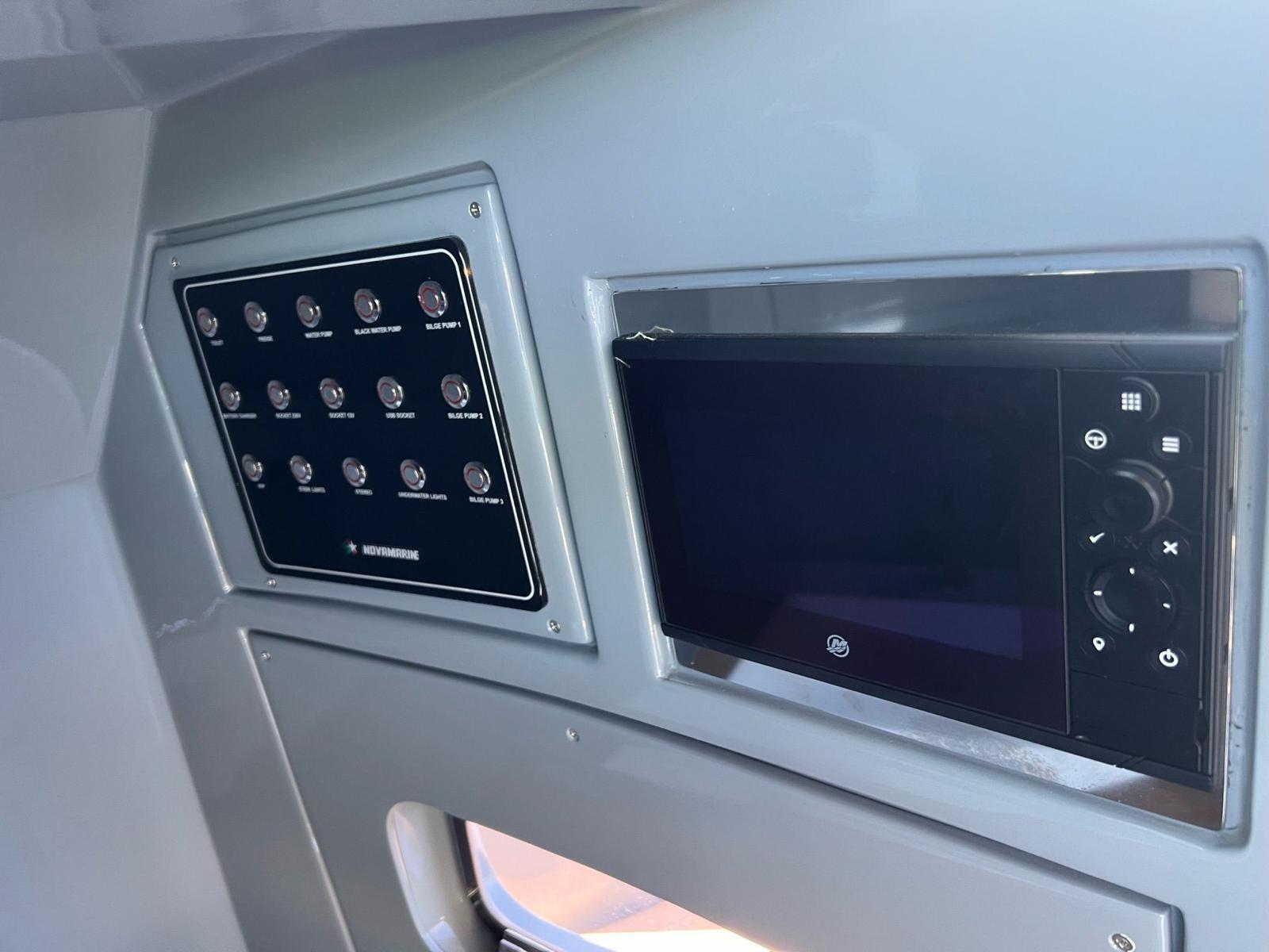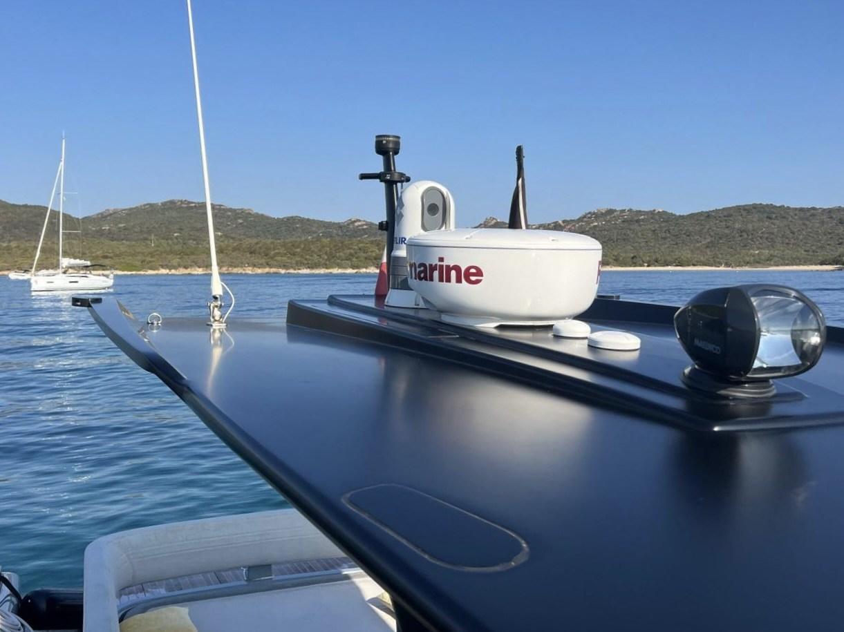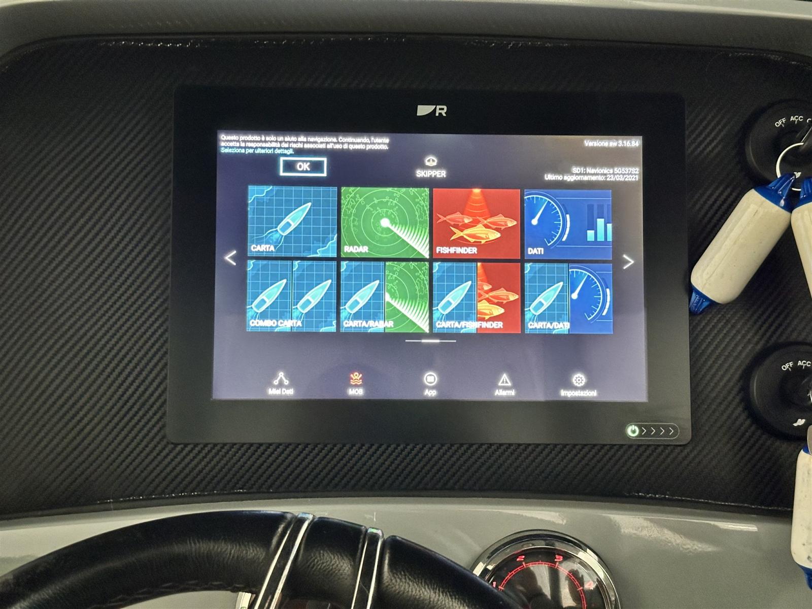 AIS (Classe B), Rudder angle indicator, Radar Antenna (Raymarine), Chain counter, Depth Sounder (Raymarine), GPS (Raymarine), Joystick (Mercury Funzione Skyhook), Chartplotter (! Raymarine 1 Mercury), VHF Radio (Raymarine Ray 91), Co-pilot seat, Dynamic positioning system.