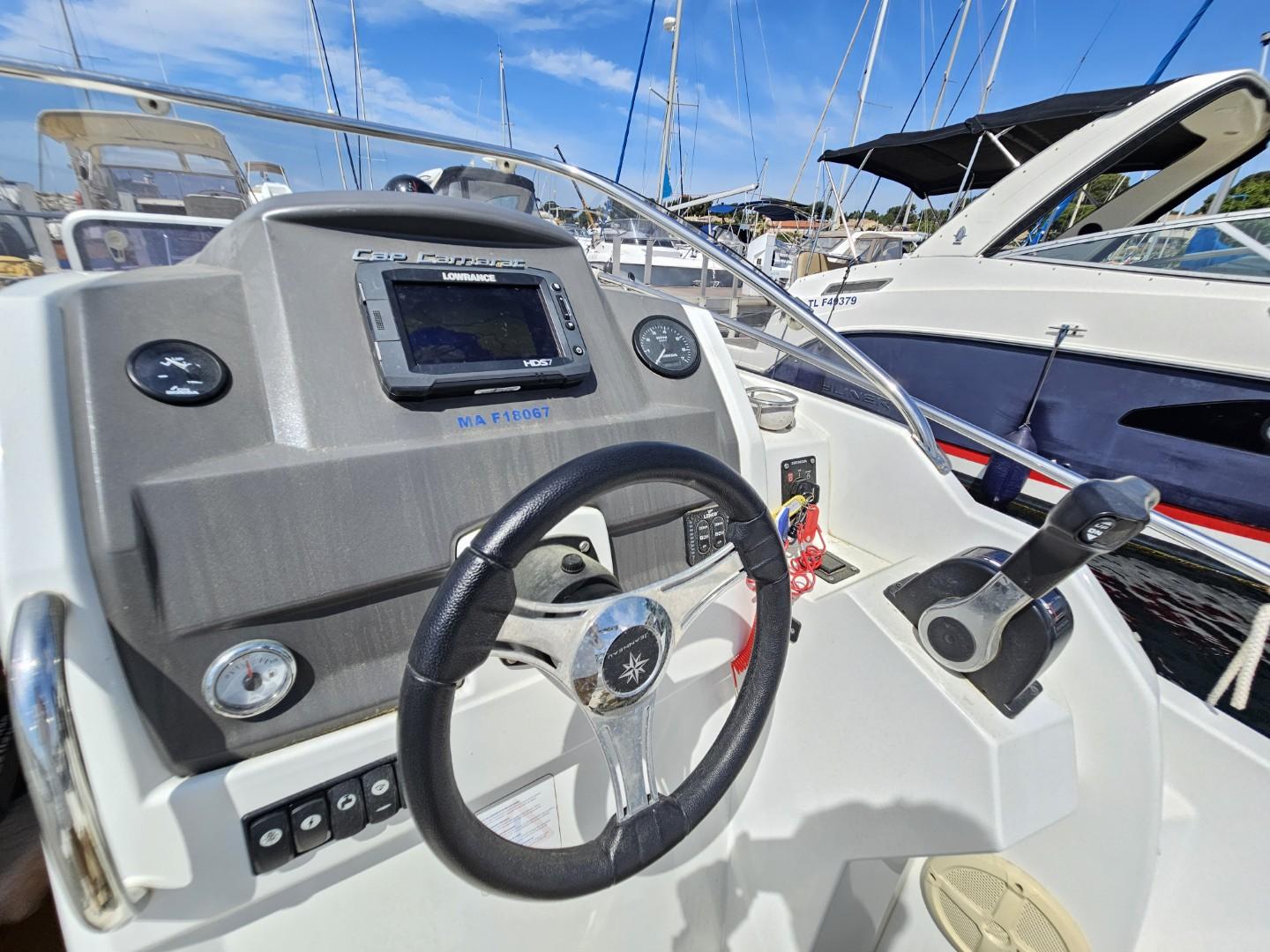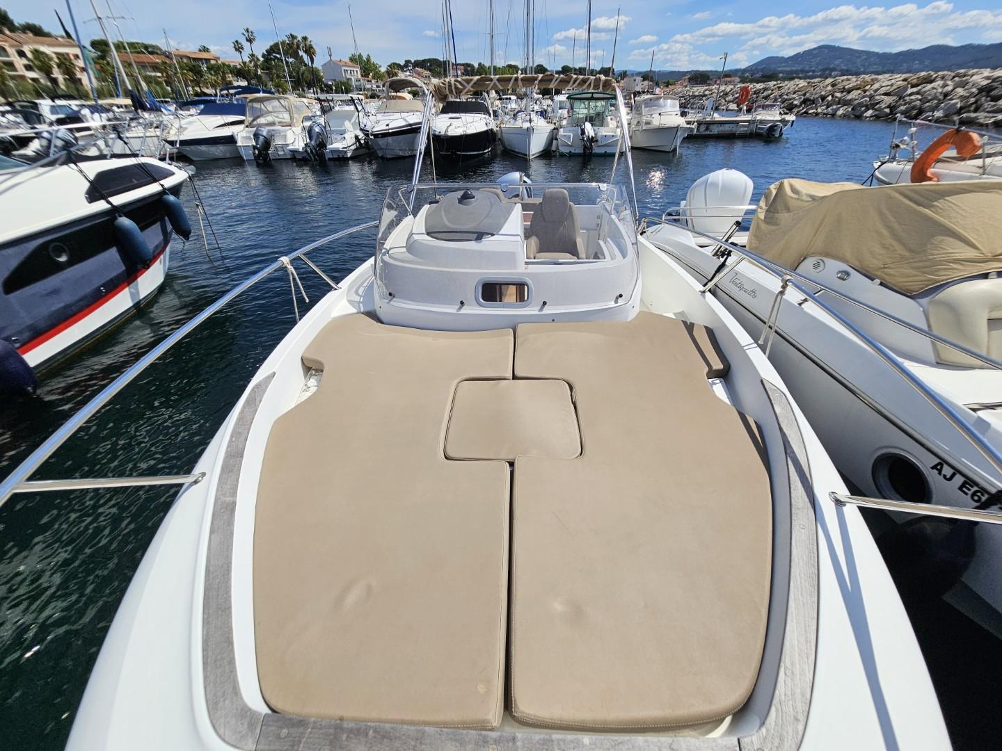 Discover this superb Jeanneau Cap Camarat 7.5 WA from 2014, equipped with a powerful Yamaha 250 HP engine with only 189 hours of navigation. This pleasure boat combines performance, comfort, and elegance.