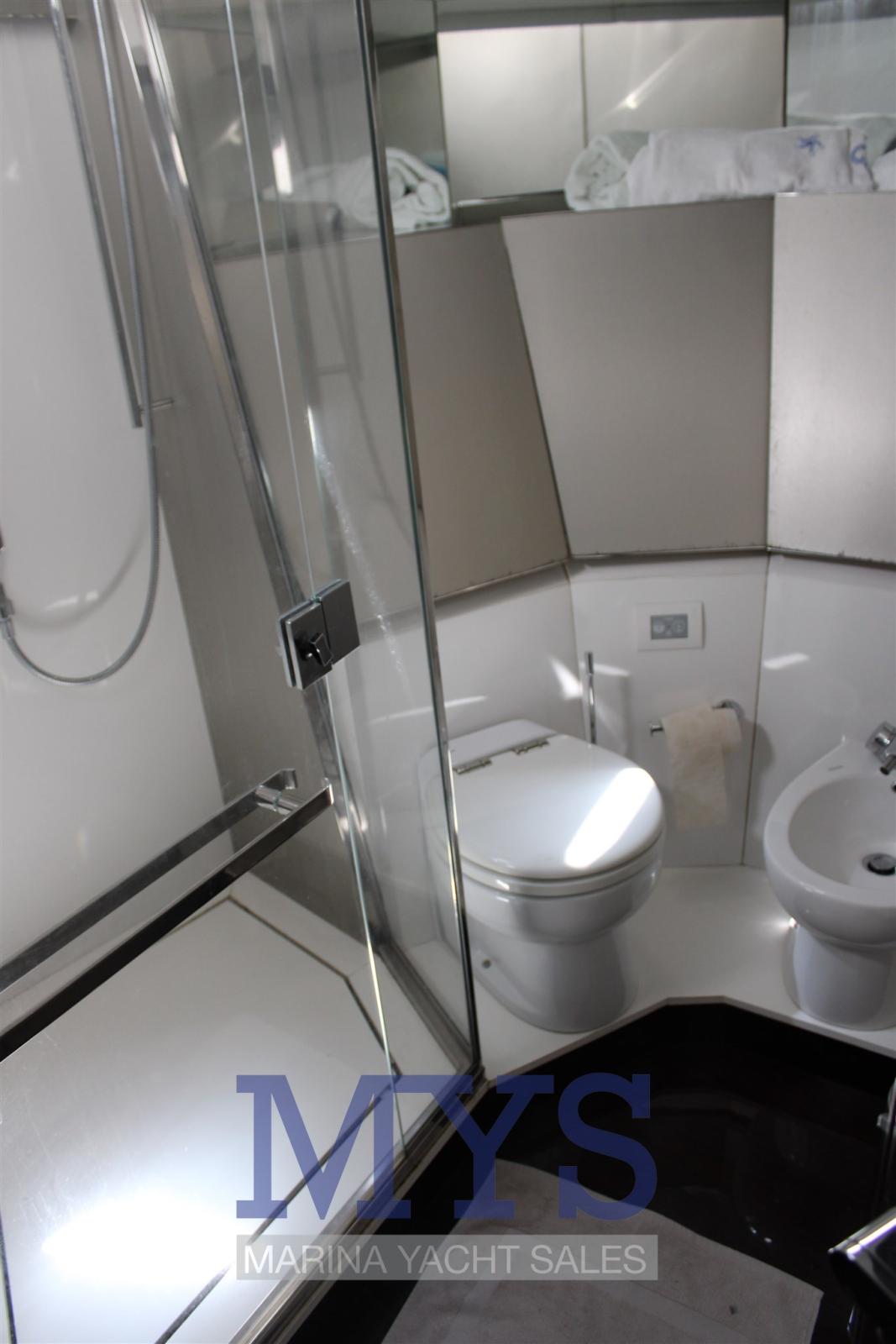 1 Forward master double cabin with relevant bathroom equipped with sink, shower and electric marine toilet